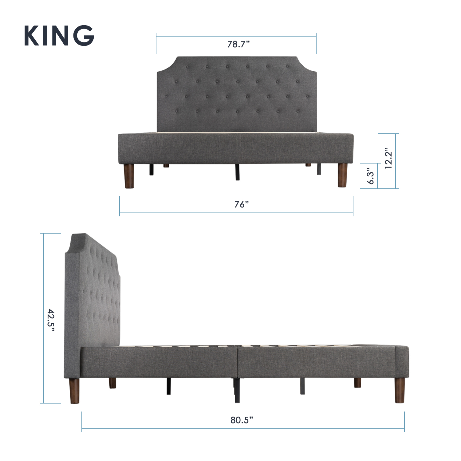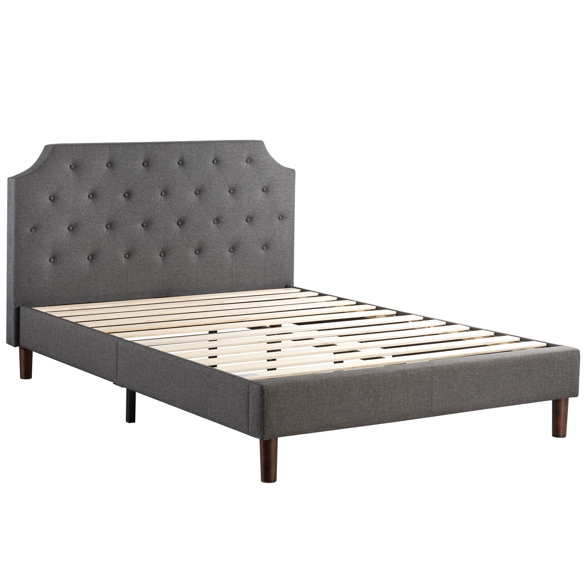 Mellow MAVN Upholstered Platform Bed, Modern Tufted Headboard, Real Wooden Slats and Legs, Dark Grey, King