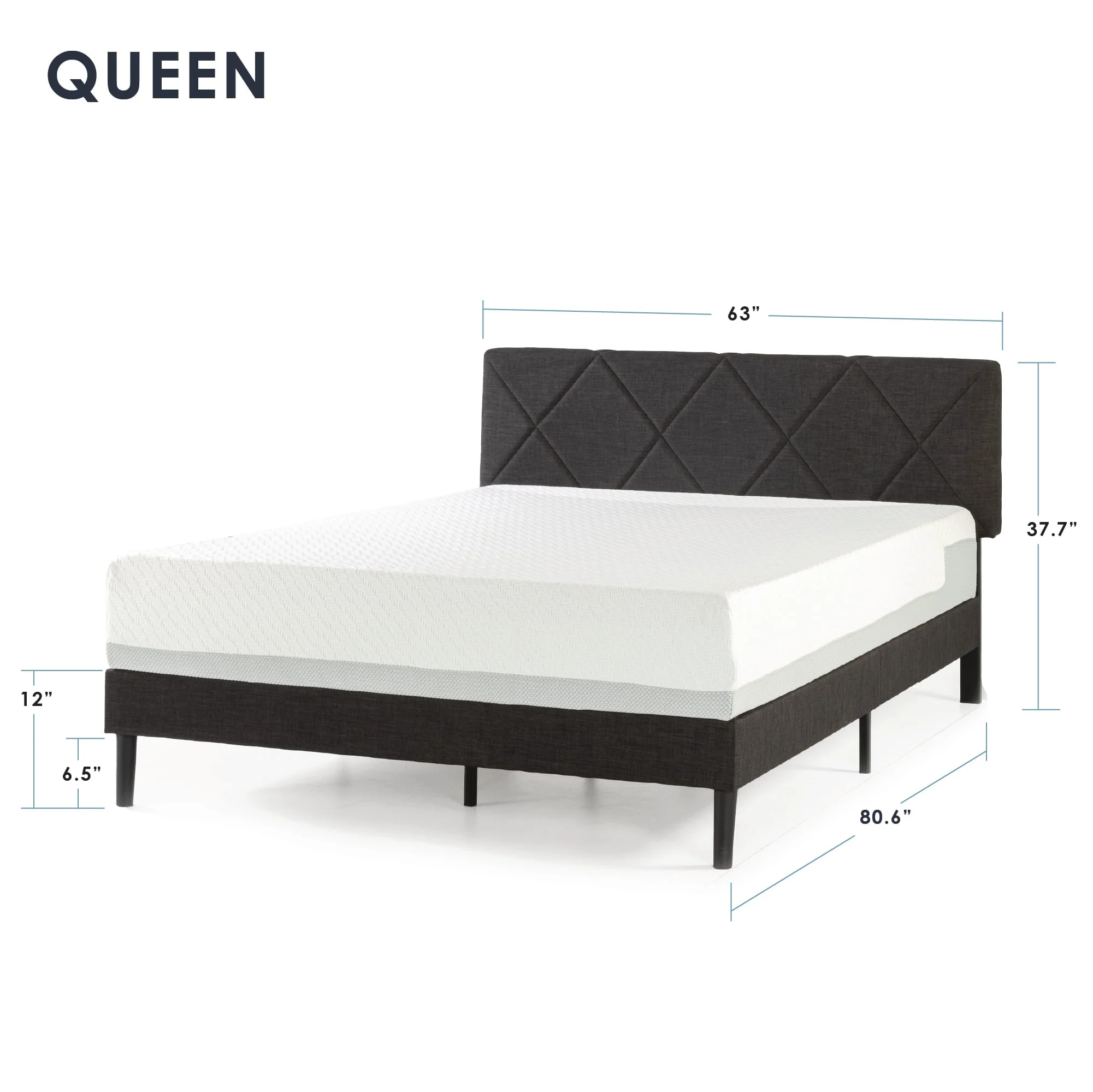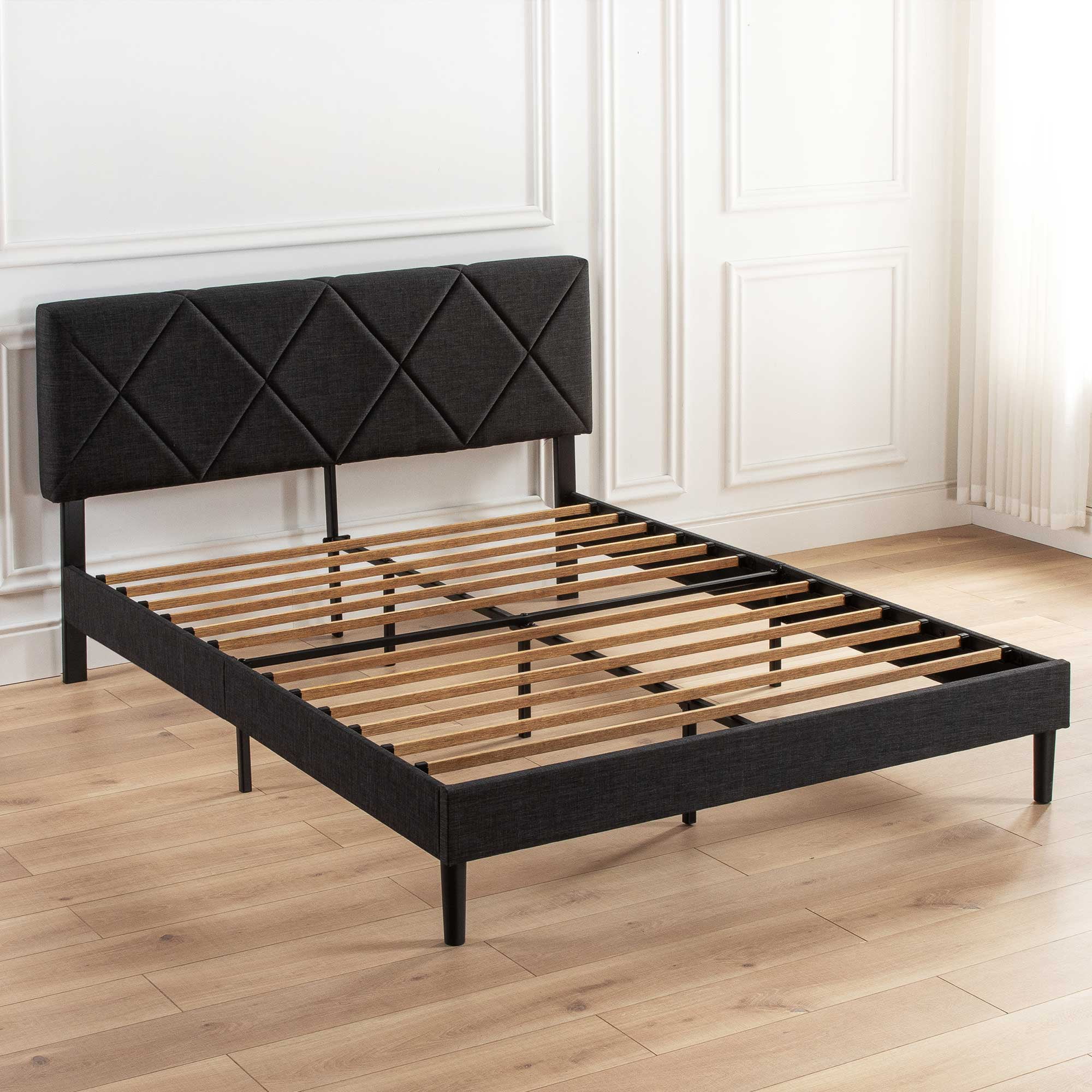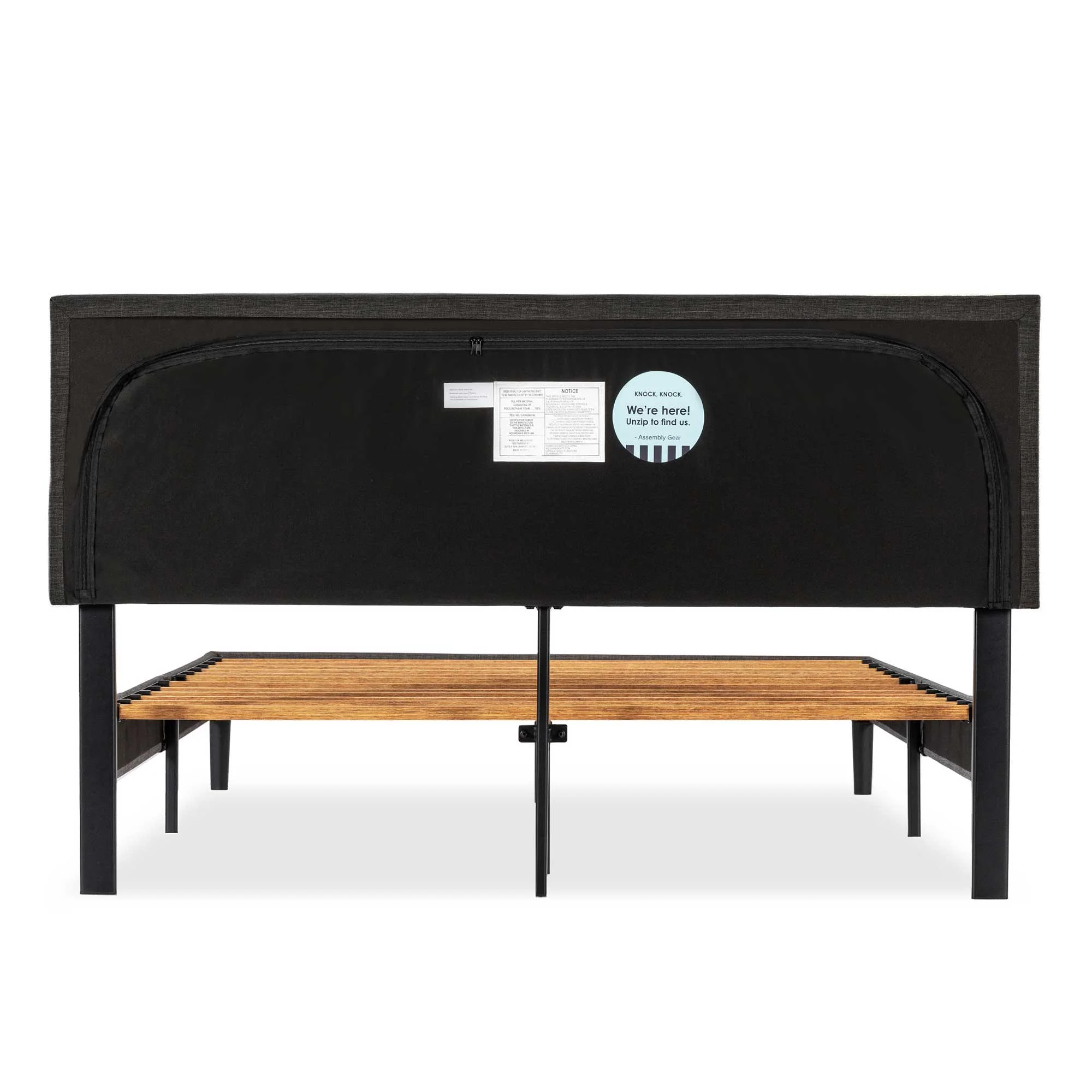 Mellow Olena Upholstered Platform Bed Frame with Headboard, Black, Queen