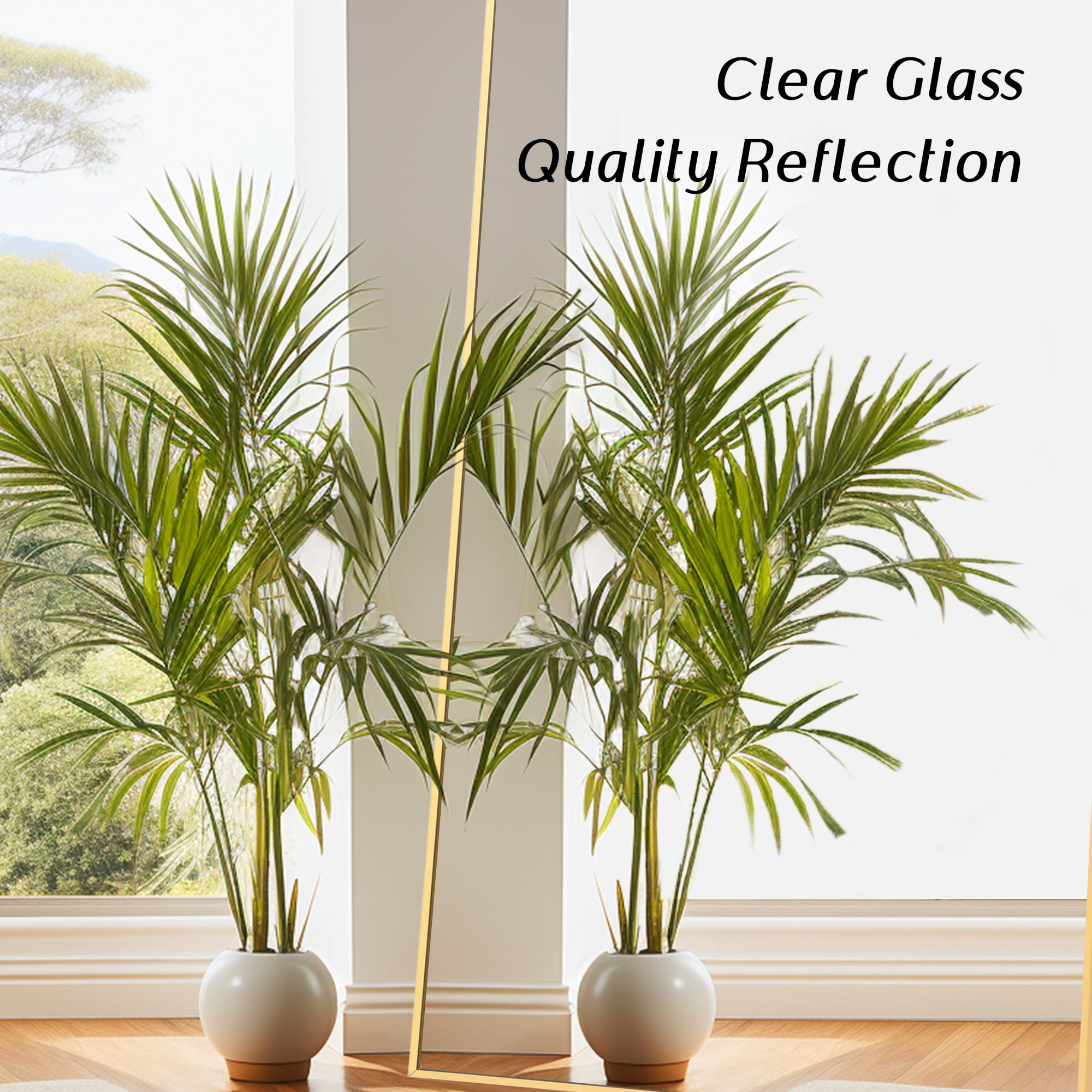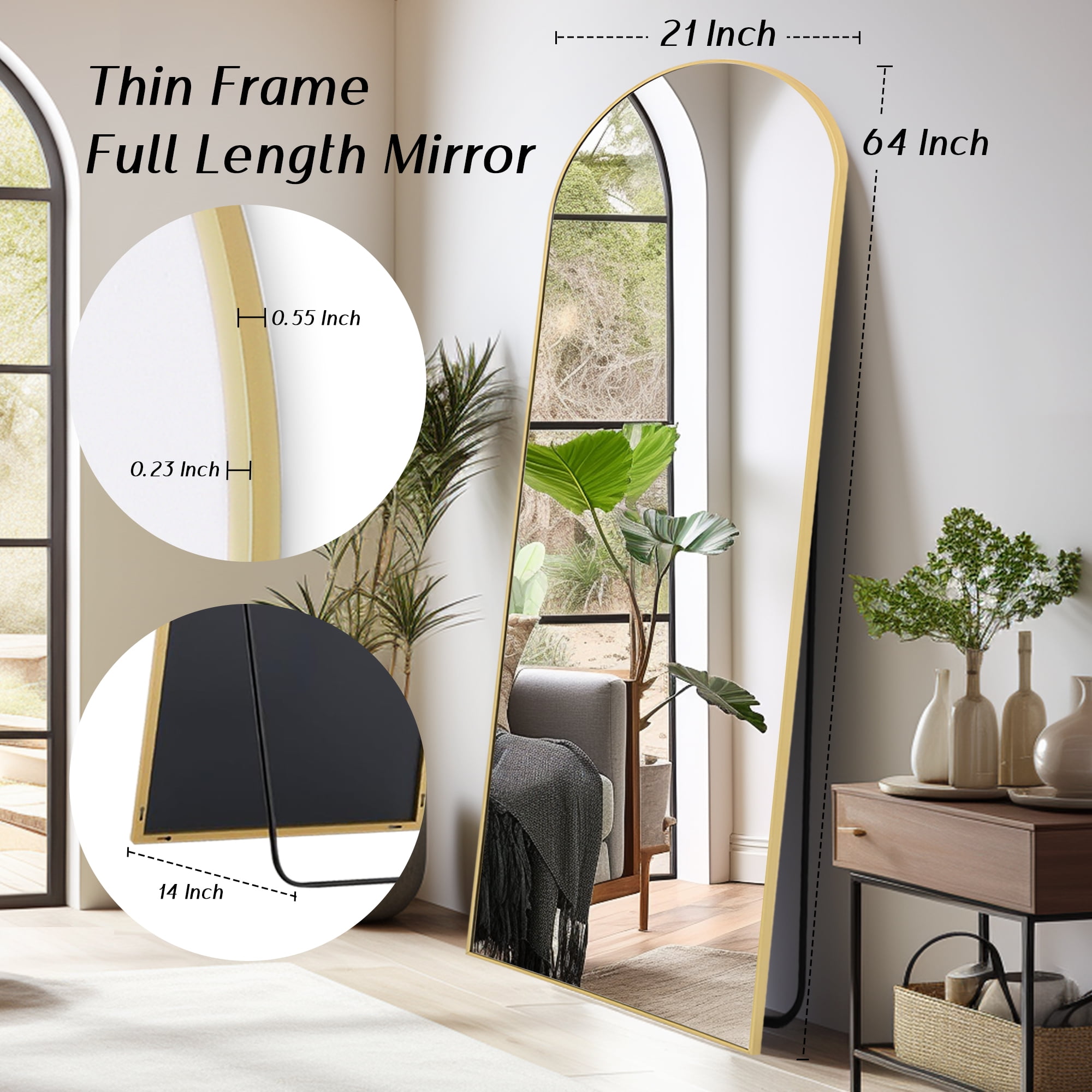 Full-Size Elegance: Standing tall at 64″ in length and 21″ in width, this mirror offers a panoramic view of your entire figure in one glance. It’s not just a body mirror; it’s a piece of art that adds daily delight to your home. Aluminum Alloy Frame: Encircled by an anti-rust and colorfast aluminum alloy frame, this full-length floor mirror is a blend of durability and aesthetics. The remarkably slim front frame, only 0.23″ wide, exudes a glossy, stylish, and textured charm, enhanced by a sophisticated wire drawing treatment. Upgraded Nano Glass: The full body mirror features robust 3 mm high-definition nano glass, upgraded with an explosion-proof nano glass layer imbued with pure silver. This enhancement delivers unparalleled clarity and resists shattering, even when subjected to external forces. In the rare event of breakage, the mirror fragments remain contained, eliminating the risk of scattered shards. Versatile All-Match Design: No assembly required. The floor mirror effortlessly stands anywhere using the one-piece holder. Lean it against a wall for a casual touch or wall-mount it to save space. It’s a perfect fit for bedrooms, living rooms, cloakrooms, home gyms, hallways, entrances, clothing shops, and more. The lightweight design makes it easy to move and adapt to your changing home decorative needs. Satisfaction Guaranteed: Our mirror packaging exceeds international drop test standards. Should you receive a damaged product, please don’t hesitate to reach out. We offer a full refund or a free replacement for any mirrors damaged upon arrival, no return required.