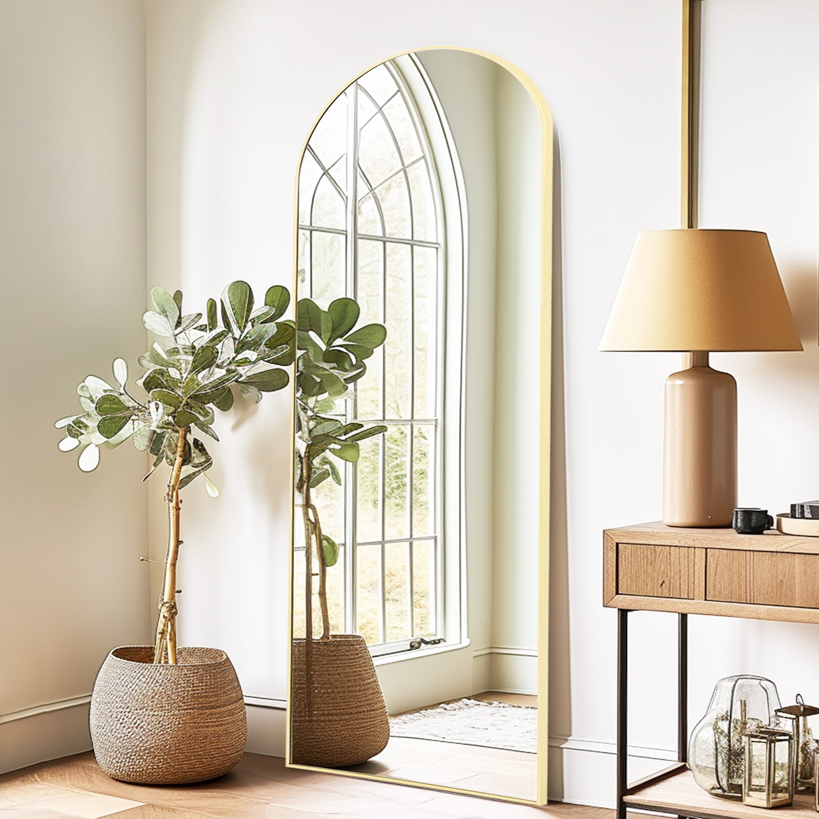 Melodieux Arched Floor Mirror Full Length 64″ x 21″ Full Body Standing Mirror Gold Hanging Wall Mirror