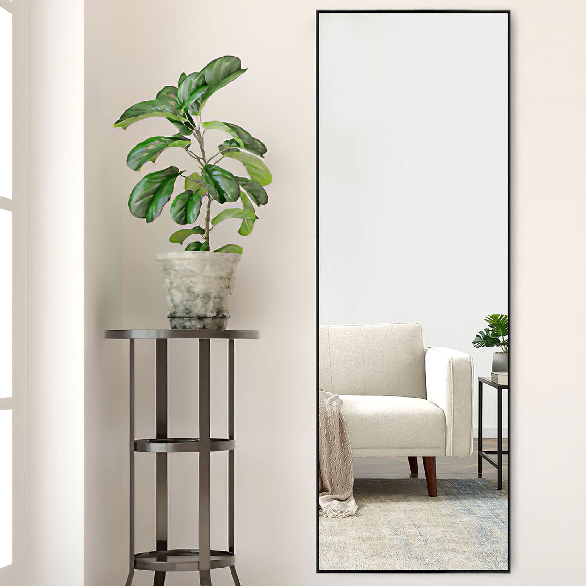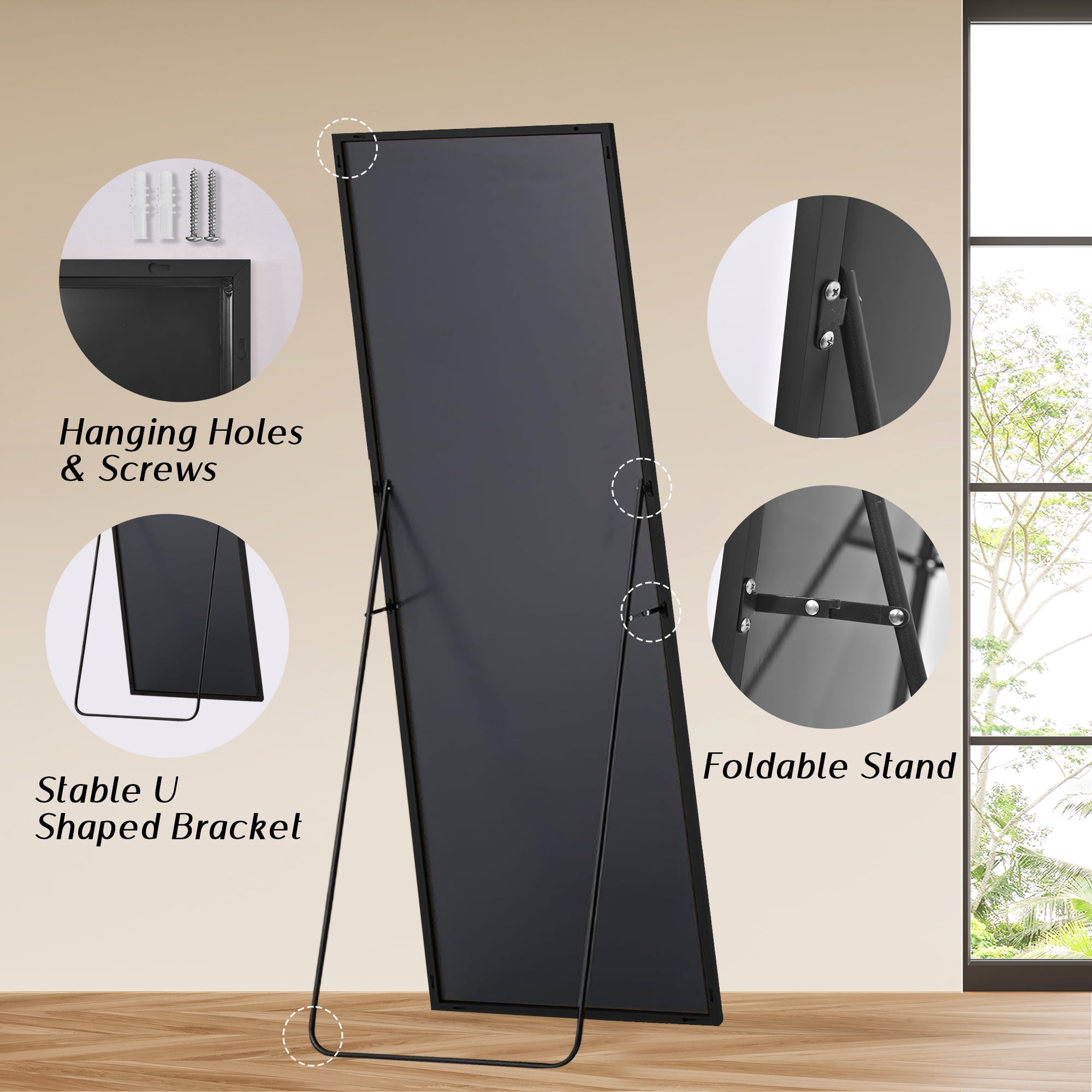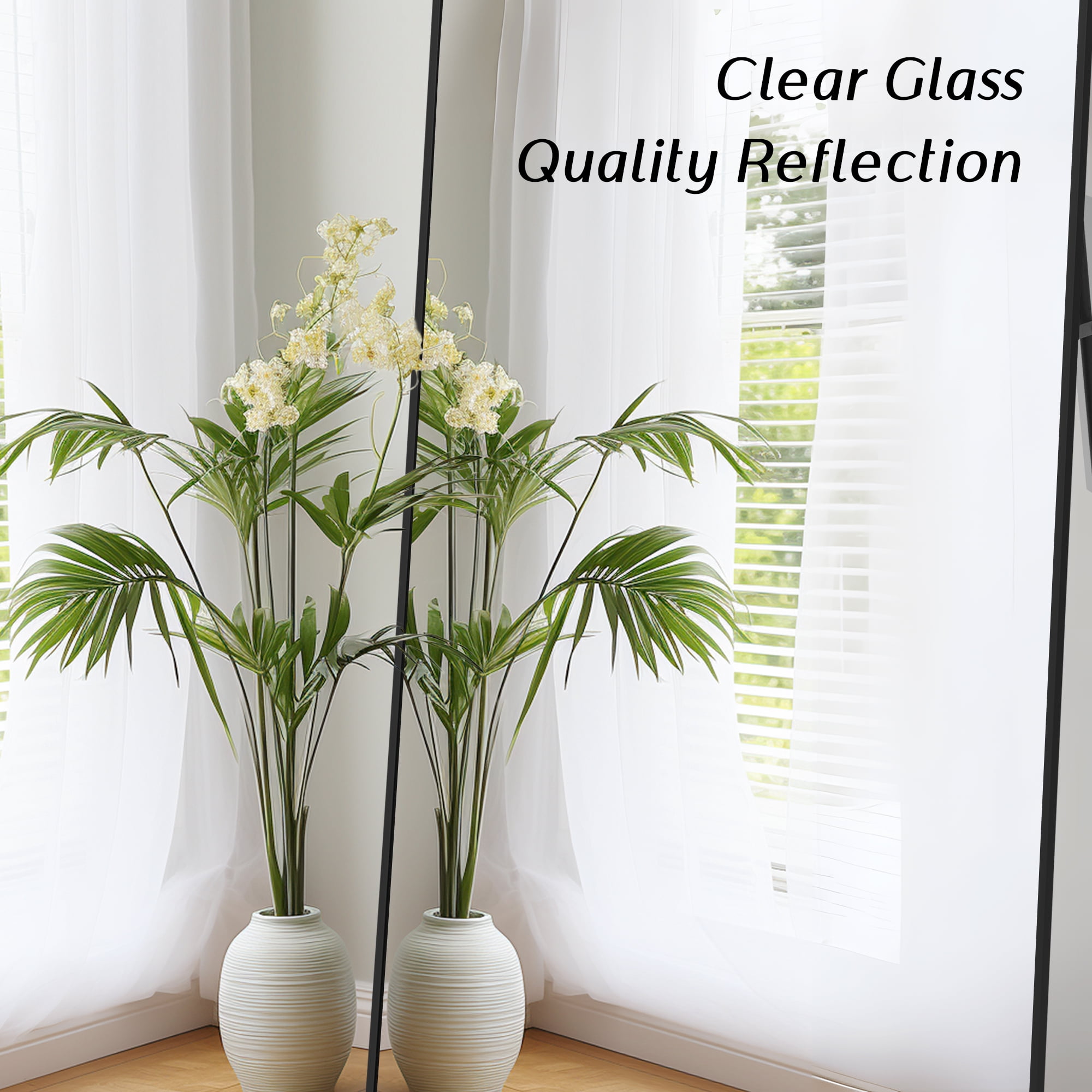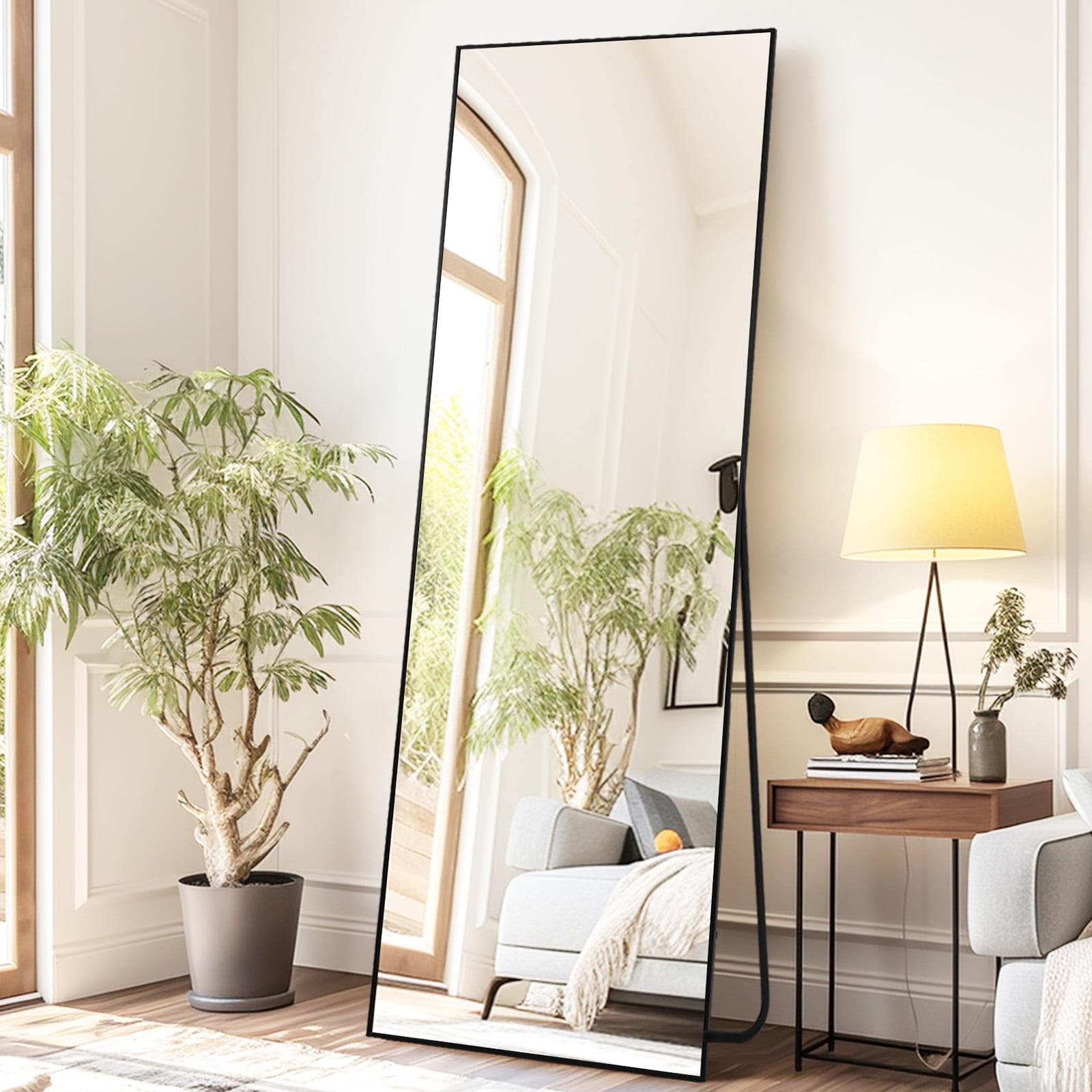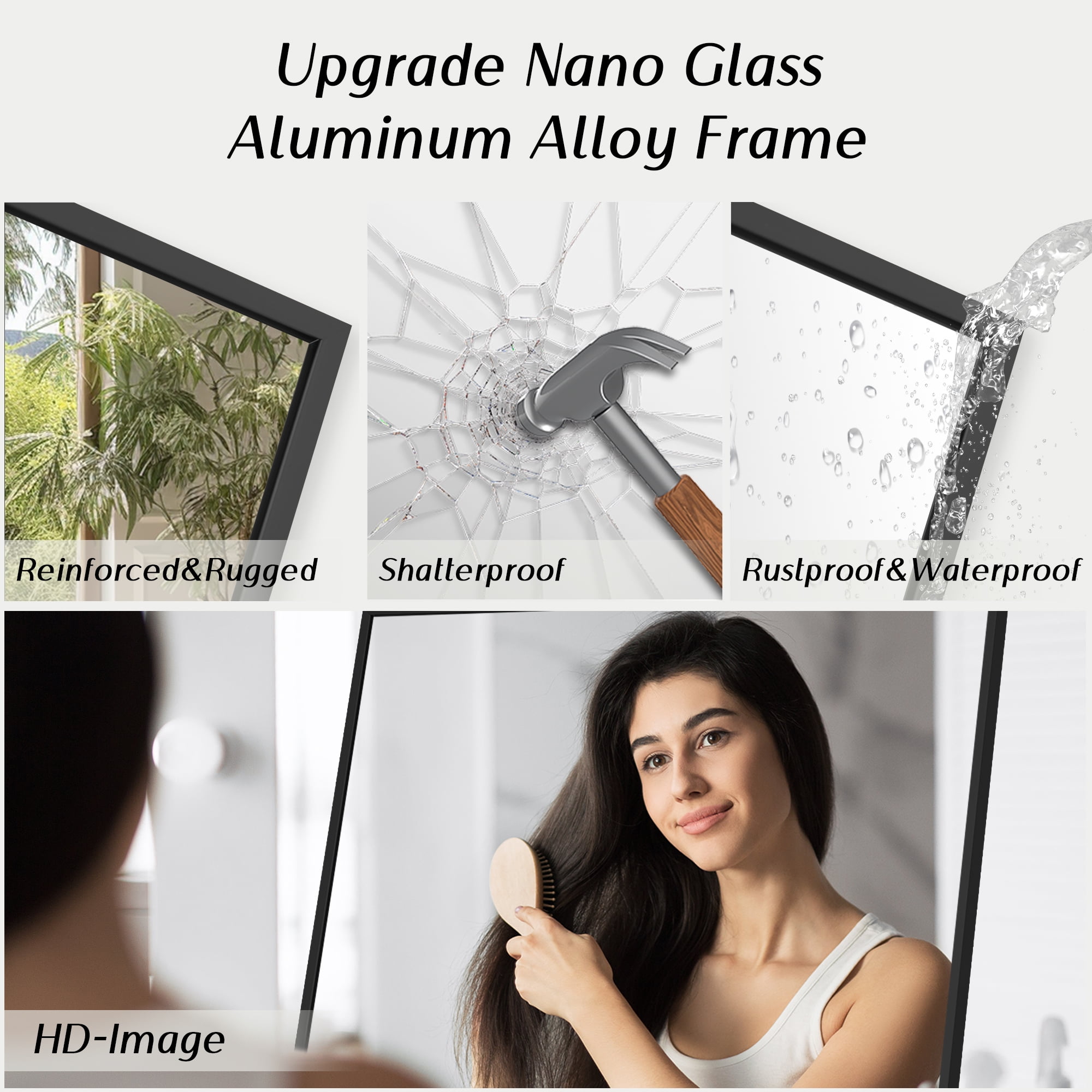 Full-Size Elegance: Standing tall at 64″ in length and 21″ in width, this mirror offers a panoramic view of your entire figure in one glance. It’s not just a body mirror; it’s a piece of art that adds daily delight to your home. Aluminum Alloy Frame: Encircled by an anti-rust and colorfast aluminum alloy frame, this full-length floor mirror is a blend of durability and aesthetics. The remarkably slim front frame, only 0.23″ wide, exudes a glossy, stylish, and textured charm, enhanced by a sophisticated wire drawing treatment. Upgraded Nano Glass: The full body mirror features robust 3 mm high-definition nano glass, upgraded with an explosion-proof nano glass layer imbued with pure silver. This enhancement delivers unparalleled clarity and resists shattering, even when subjected to external forces. In the rare event of breakage, the mirror fragments remain contained, eliminating the risk of scattered shards. Versatile All-Match Design: No assembly required. The floor mirror effortlessly stands anywhere using the one-piece holder. Lean it against a wall for a casual touch or wall-mount it horizontally or vertically to save space. It’s a perfect fit for bedrooms, living rooms, cloakrooms, home gyms, hallways, entrances, clothing shops, and more. The lightweight design makes it easy to move and adapt to your changing home decorative needs. Satisfaction Guaranteed: Our mirror packaging exceeds international drop test standards. Should you receive a damaged product, please don’t hesitate to reach out. We offer a full refund or a free replacement for any mirrors damaged upon arrival, no return required.