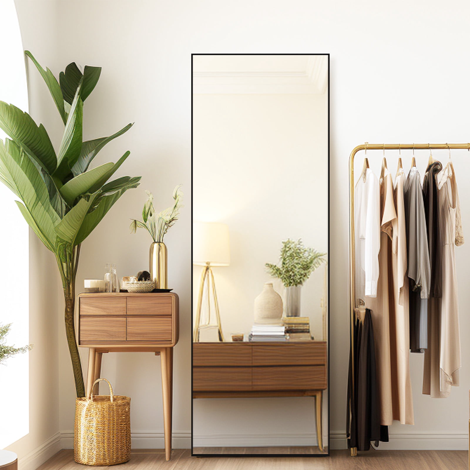 Melodieux Full Length Mirror 64″x21″ Standing Floor Mirror Rectangle Full Body Wall Mirror Black