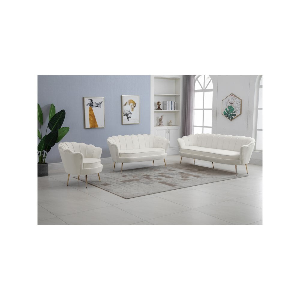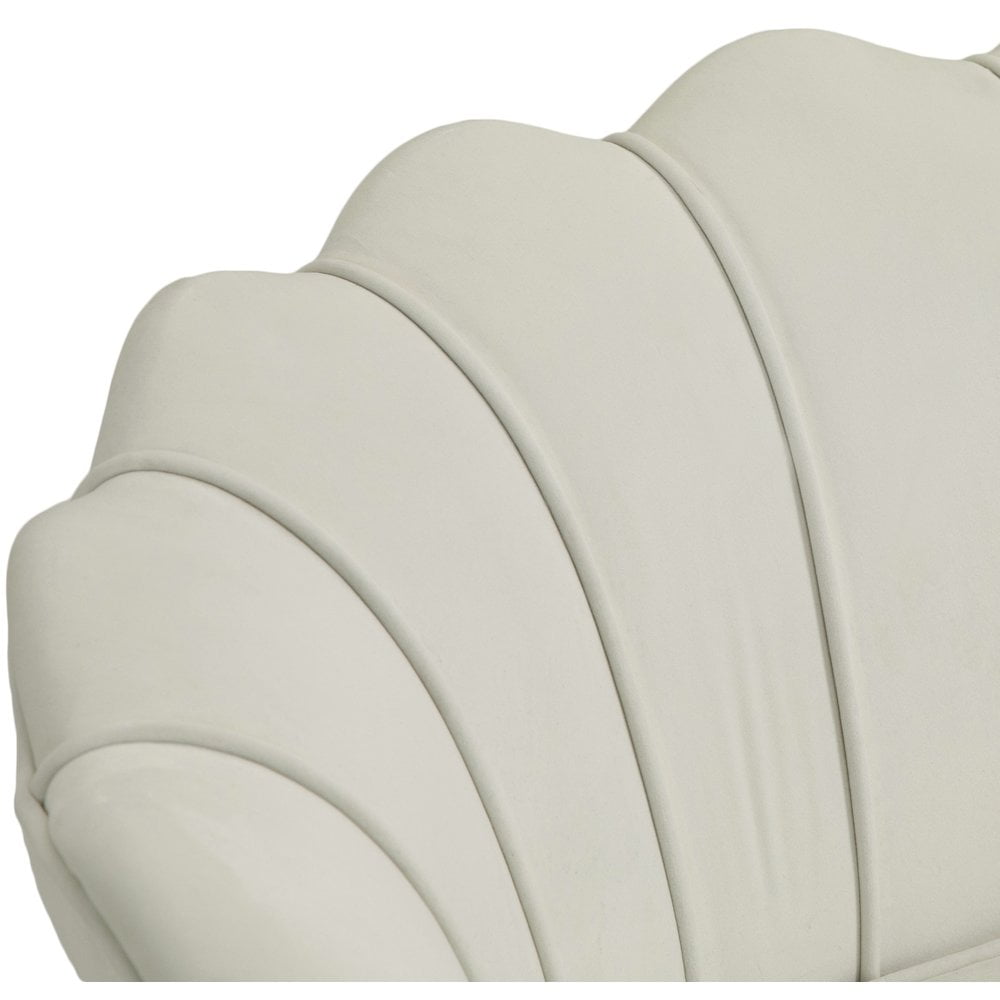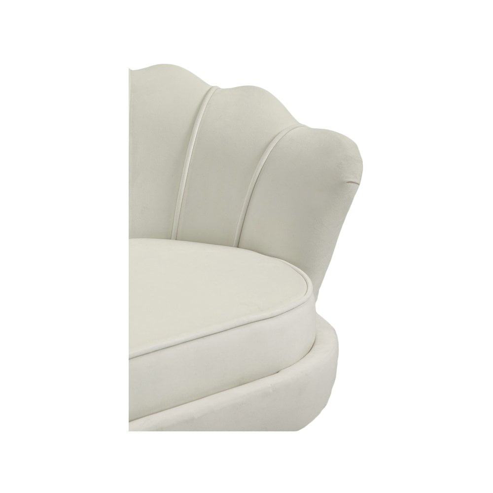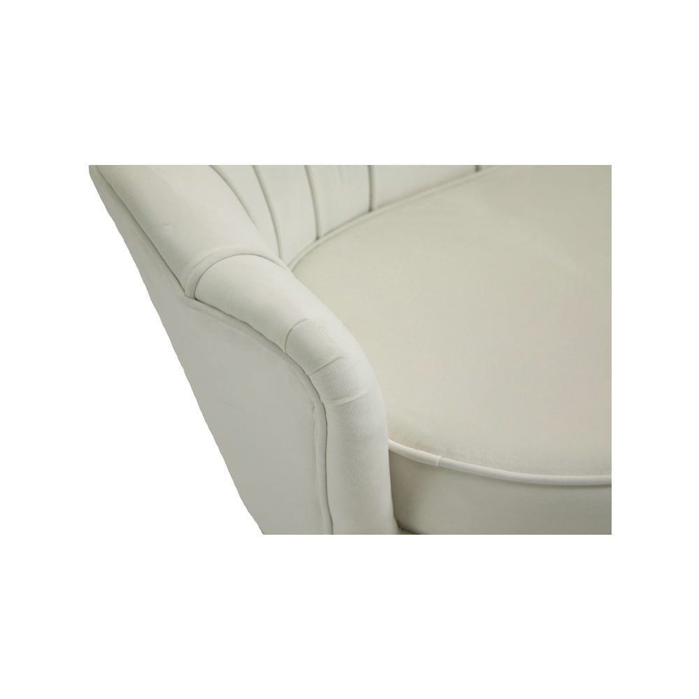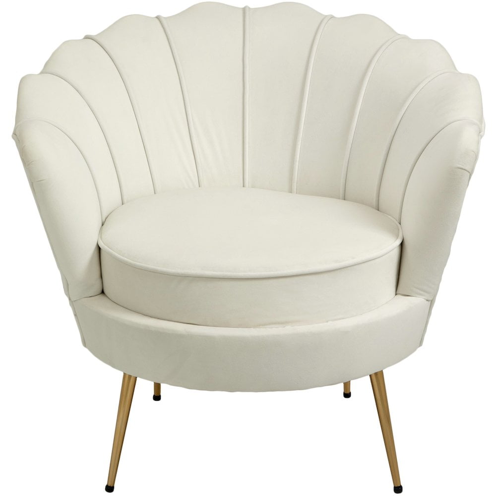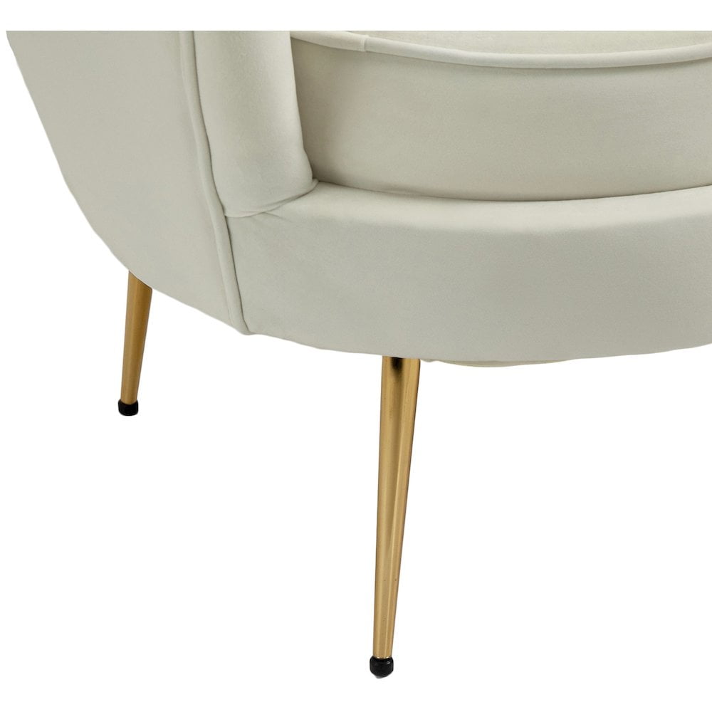 Turn heads in an instant when you add this Gardenia velvet chair to your room. This attention-demanding chair features a shell-shaped back with deep channel tufting for added textural appeal. The round seat cushion is deep and generously sized, so you have wiggle room to get comfortable. Soft cream velvet upholstery covers the entire chair except for its legs, which are made from chrome for durability and finished in gold for a touch of glam. Features: Soft Cream Velvet Gold and Chrome Legs Included Deep Channel Tufting Contemporary Design Specifications: Product Dimensions: 32″ W x 31″ D x 31″ H Assembly Required: Yes Seat Dimensions: Seat Width:20.87″ Seat Height:17.72″ Seat Depth:21.65″ Seat back height: 12.79″