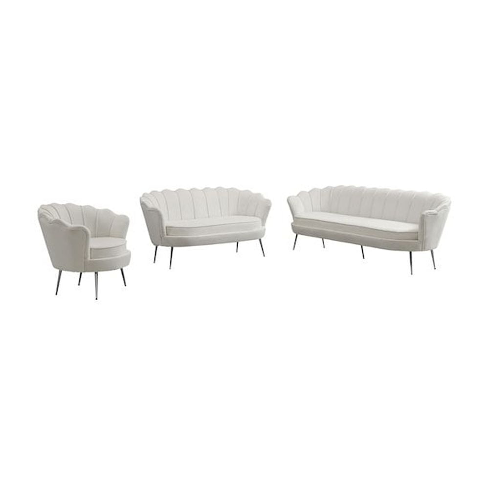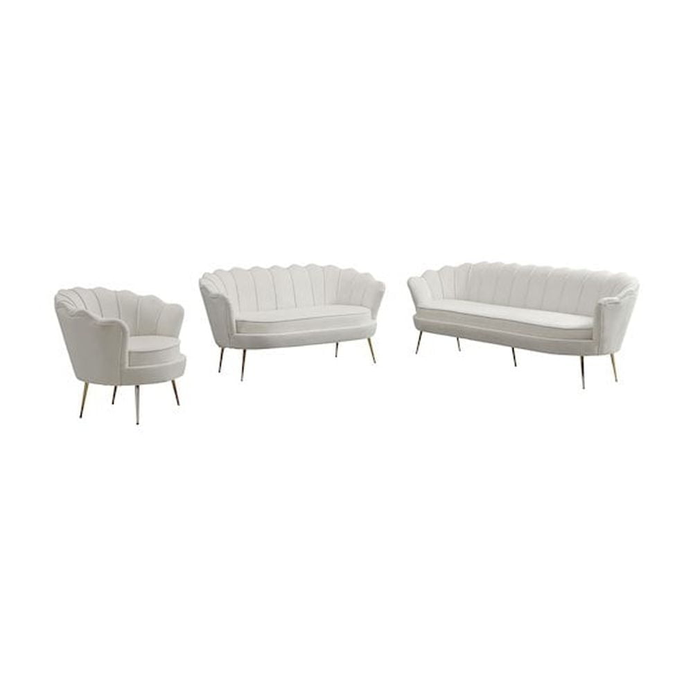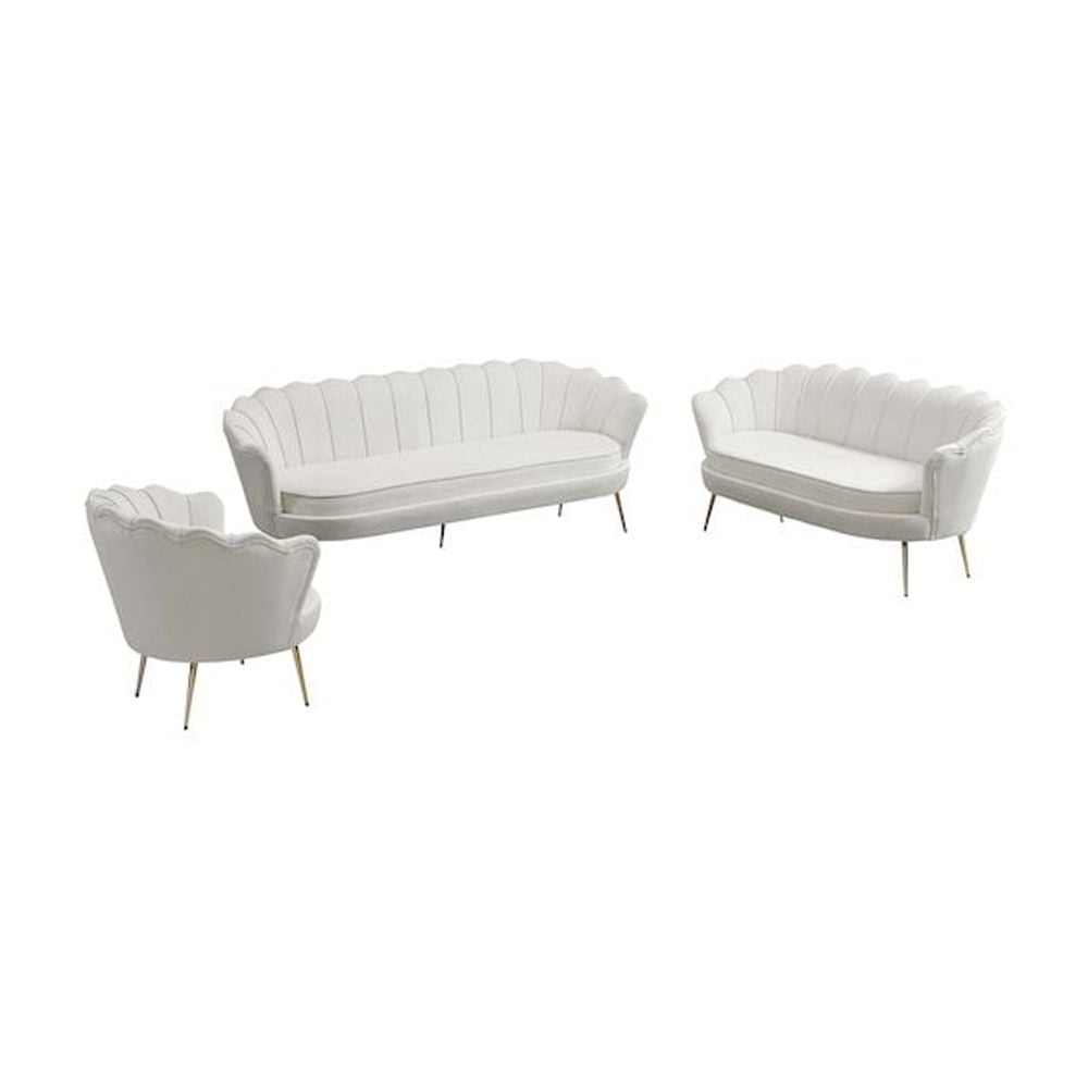 Soft Cream Velvet Gold and Chrome Legs Included Deep Channel Tufting Contemporary Design