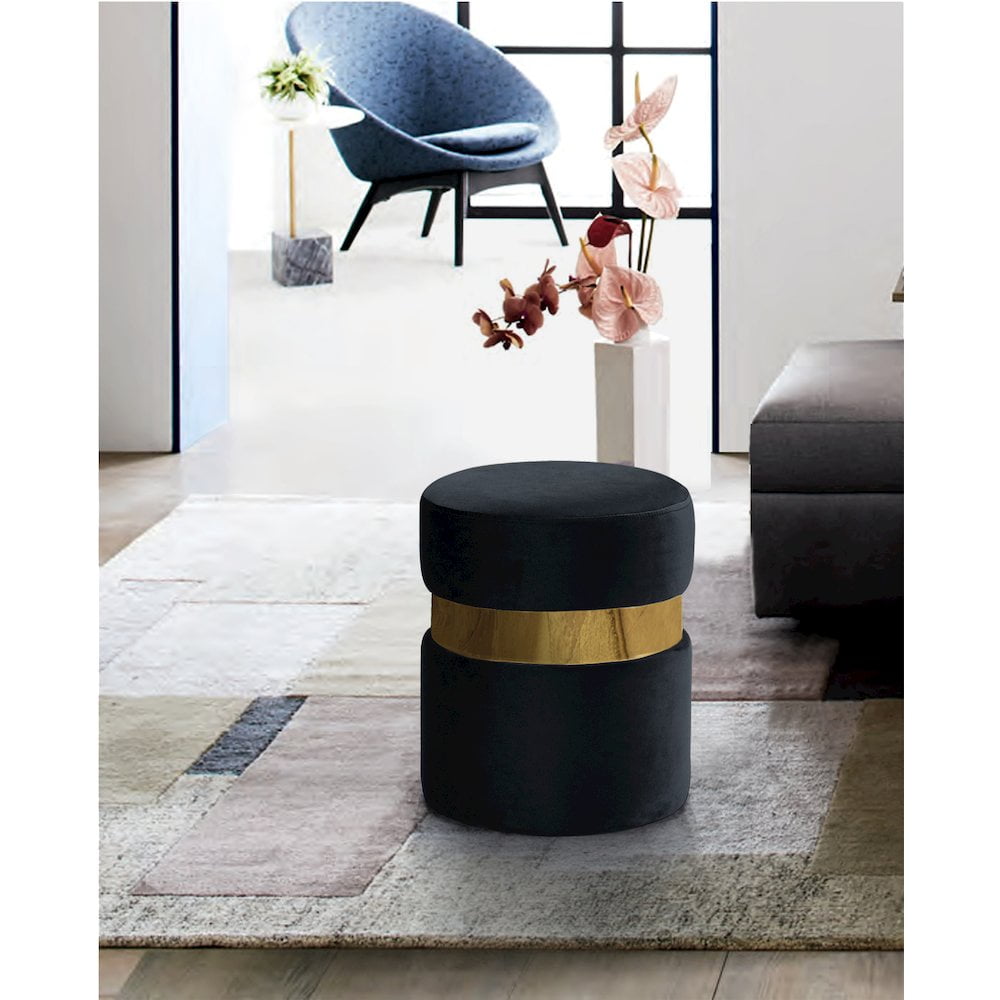 Upholstery Material: Black Velvet Gold Stainless Steel Band Ottoman / Stool Combination Solid Wood Frame Padded with High Density Foam for Maximum Comfort Contemporary Design