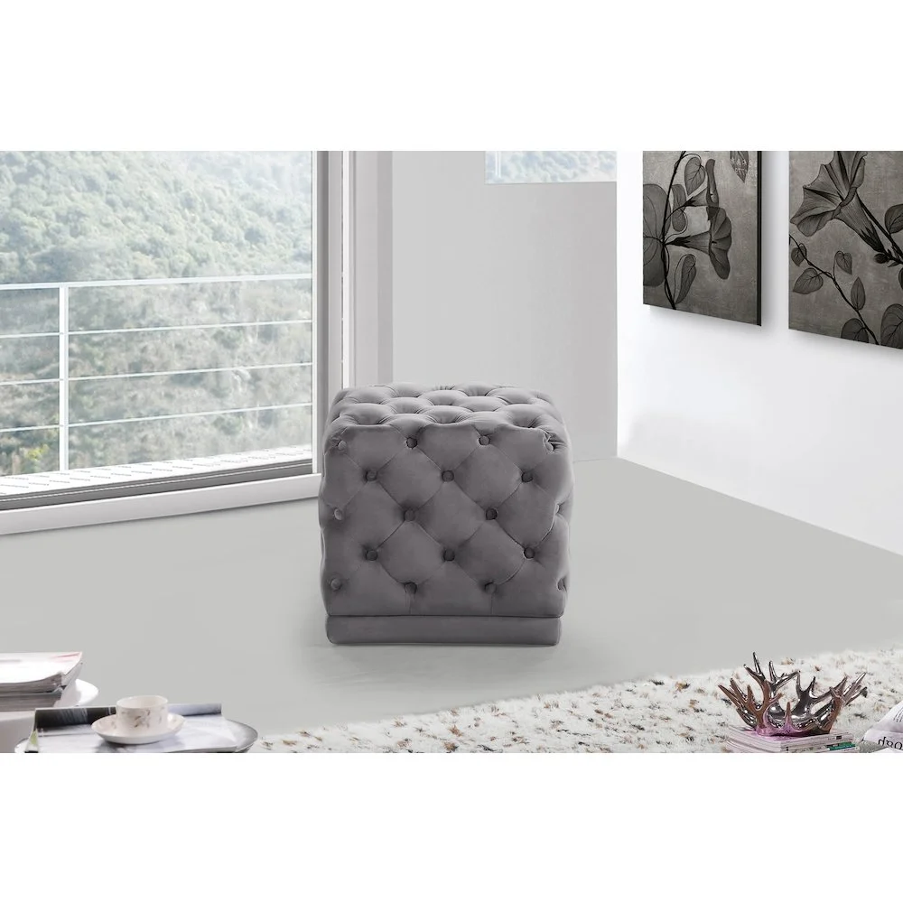 Meridian Furniture Stella Contemporary Velvet Ottoman/Stool in Gray