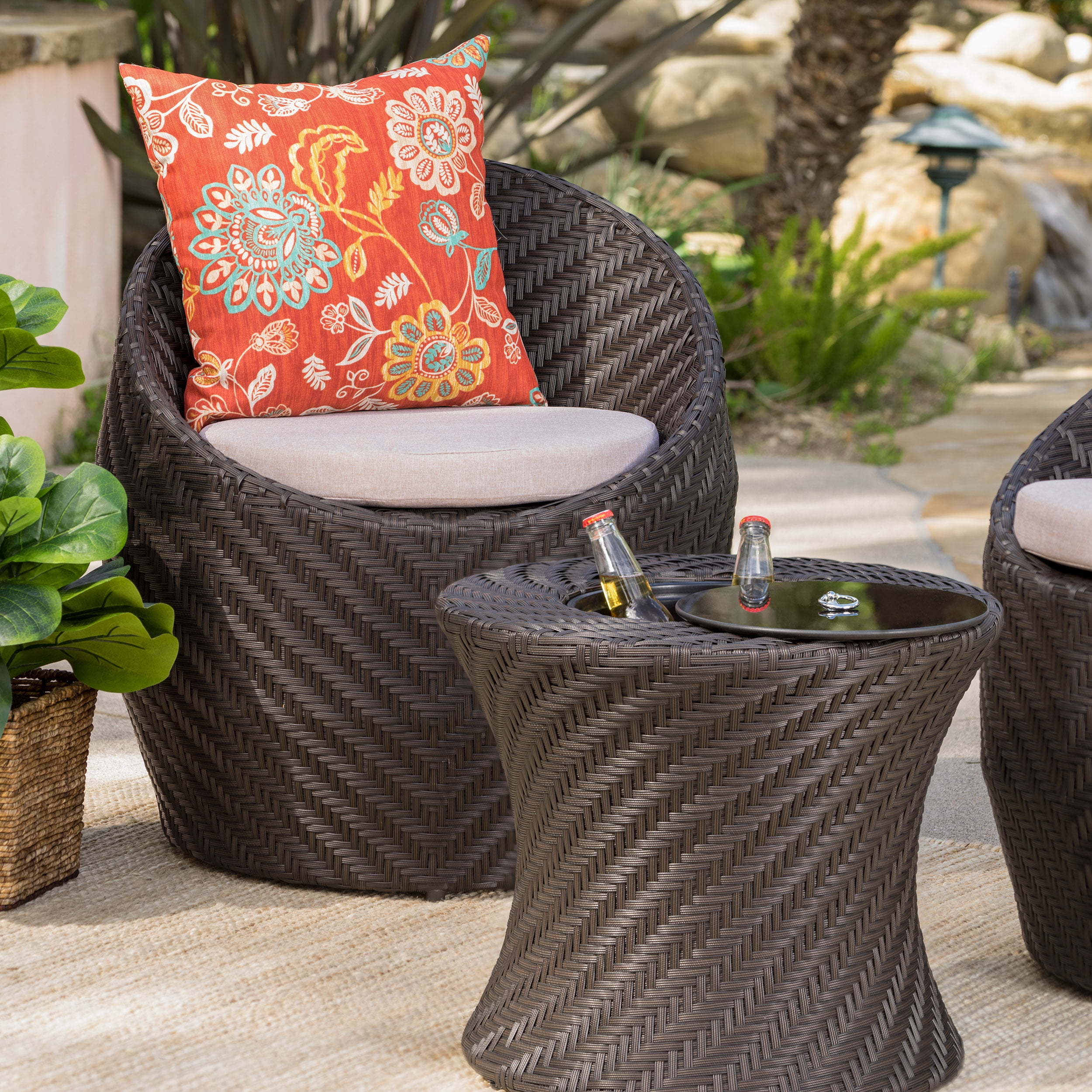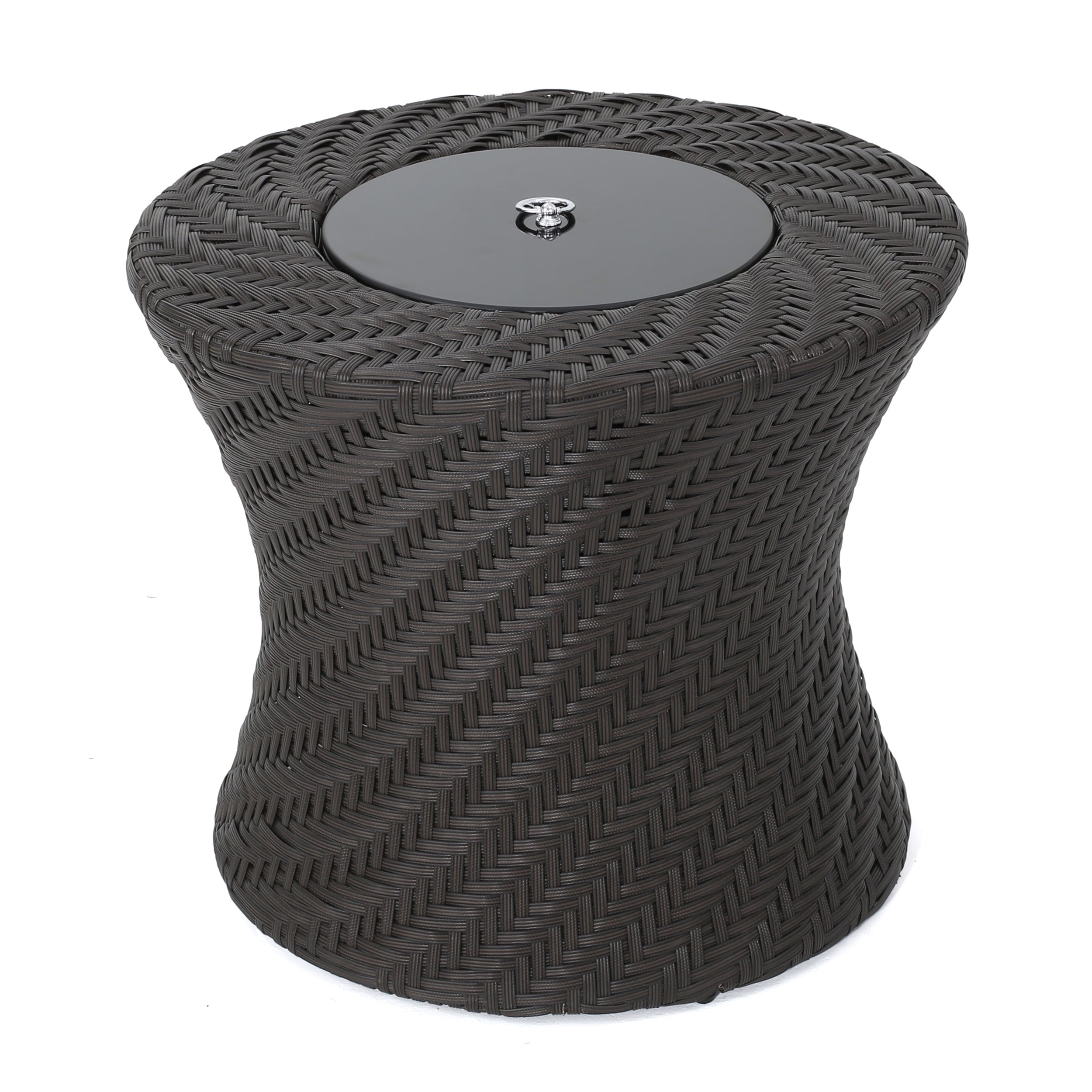 Meridian Outdoor Wicker Accent Table with Ice Bucket, Brown