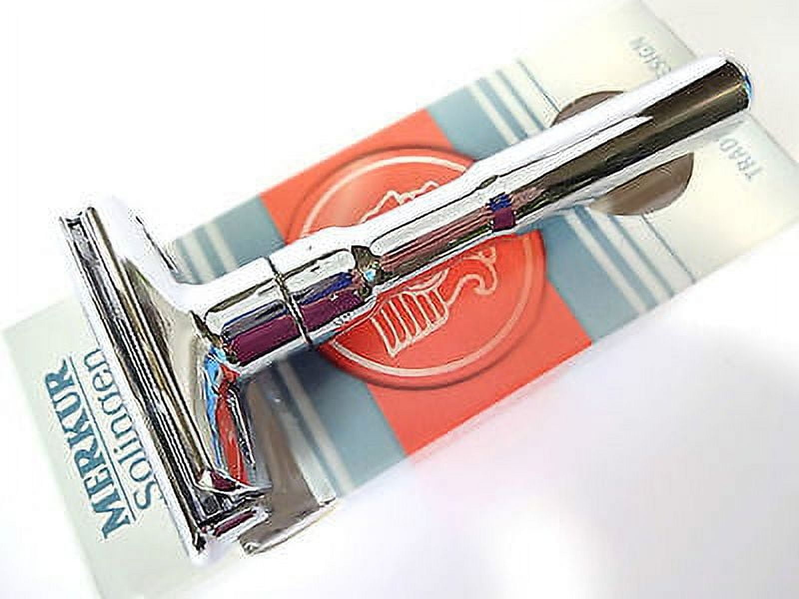 Over 100 years ago, Emil Hermes started a little cutlery company in Solingen, Germany called Merkur or Mercury (this Roman winged messenger of the gods is also known by his Greek name, Hermes). Surely Emil coudn’t have imagined a future in which his brand reached around the globe to bring loyal patrons exceptional products. But the future is here with Merkur Futur Safety Razor Polished Chrome. Merkur has been fashioning this adjustable safety razor since the 1980’s to give the wet shaver options in his razor. Once you’ve found your favorite blade, then you have even more choice with this grooming essential as it allows you to dial in the perfect shave. A twist to the handle changes the gap between the blade and the bar giving you a more or less aggressive shave as your need demands. This gem is chrome plated, with a polished finish: a simple, smooth, minimalist look. This high quality, heavyweight razor is 4 1/2″ in length. Made in Solingen, Germany