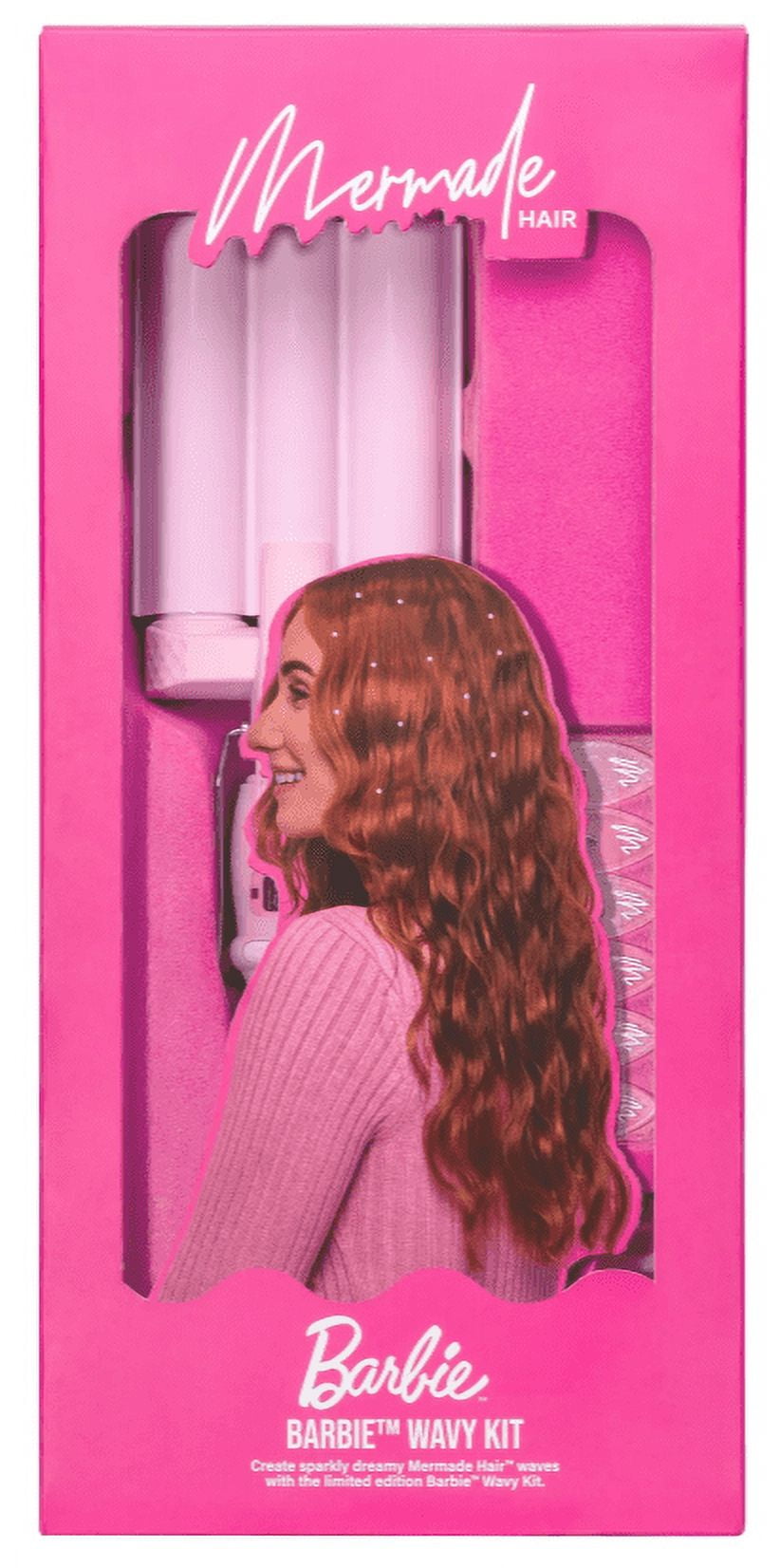 Mermade Hair, Barbie Wavy Kit, Mini Hair Crimping Iron 1″, 50 Hair Gems, 6 No Crease Clips, Barbie Head Scarf