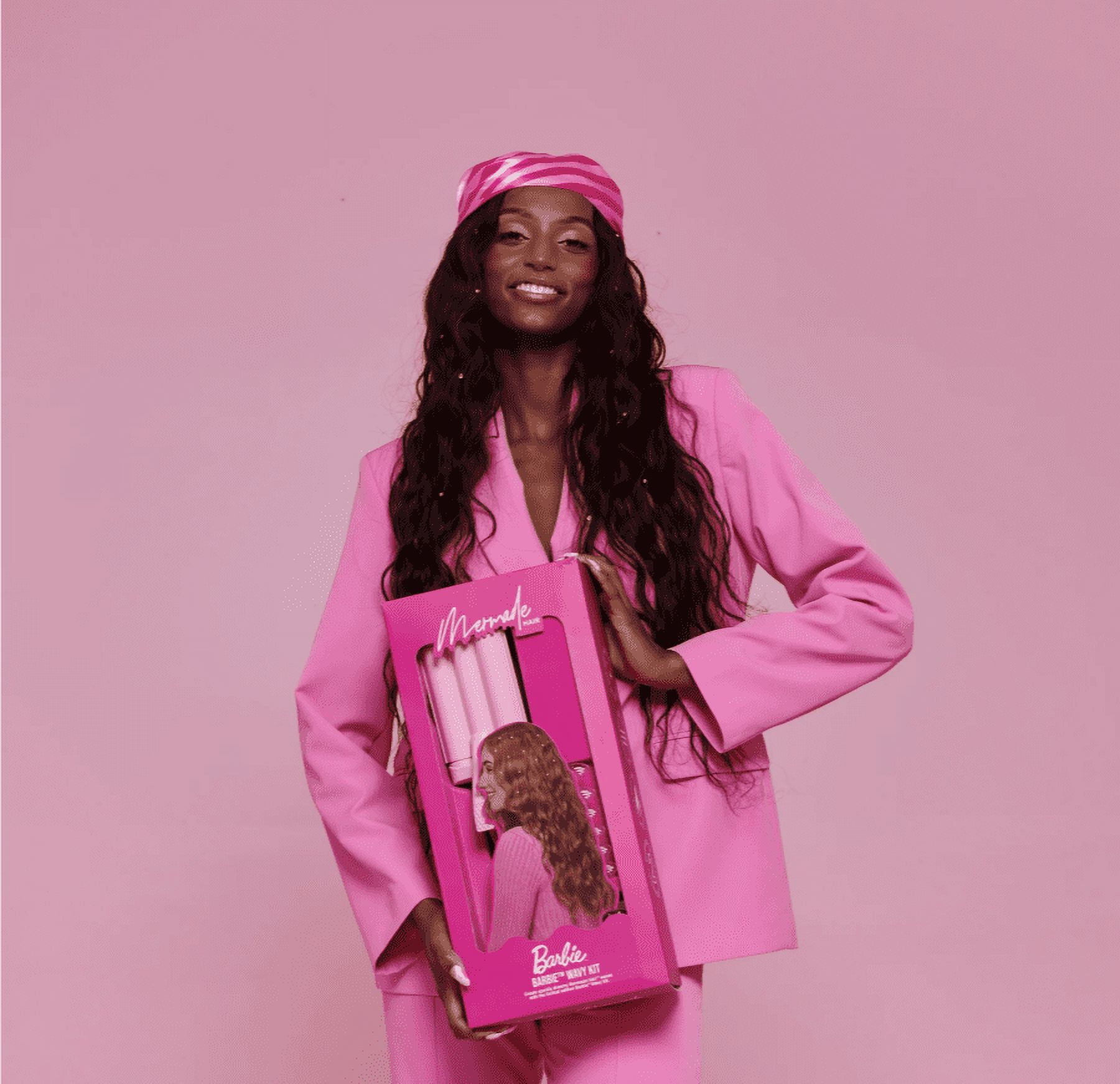 The special collaboration celebrates each generation’s love for Barbie™. It is about having fun with your hair to spark your inner confidence & bring big Mermade™ energy. It’s dreamy hair for everyone. The limited edition Barbie™ Wavy Kit by Mermade Hair™ has everything you need to create lush, bouncy waves. The kit features a custom Zebra print Mermade™ x Barbie™ Mini Waver, a zebra head scarf, a set of 50 x silver & pink hair gems & Barbie™ pink no-crease clips.