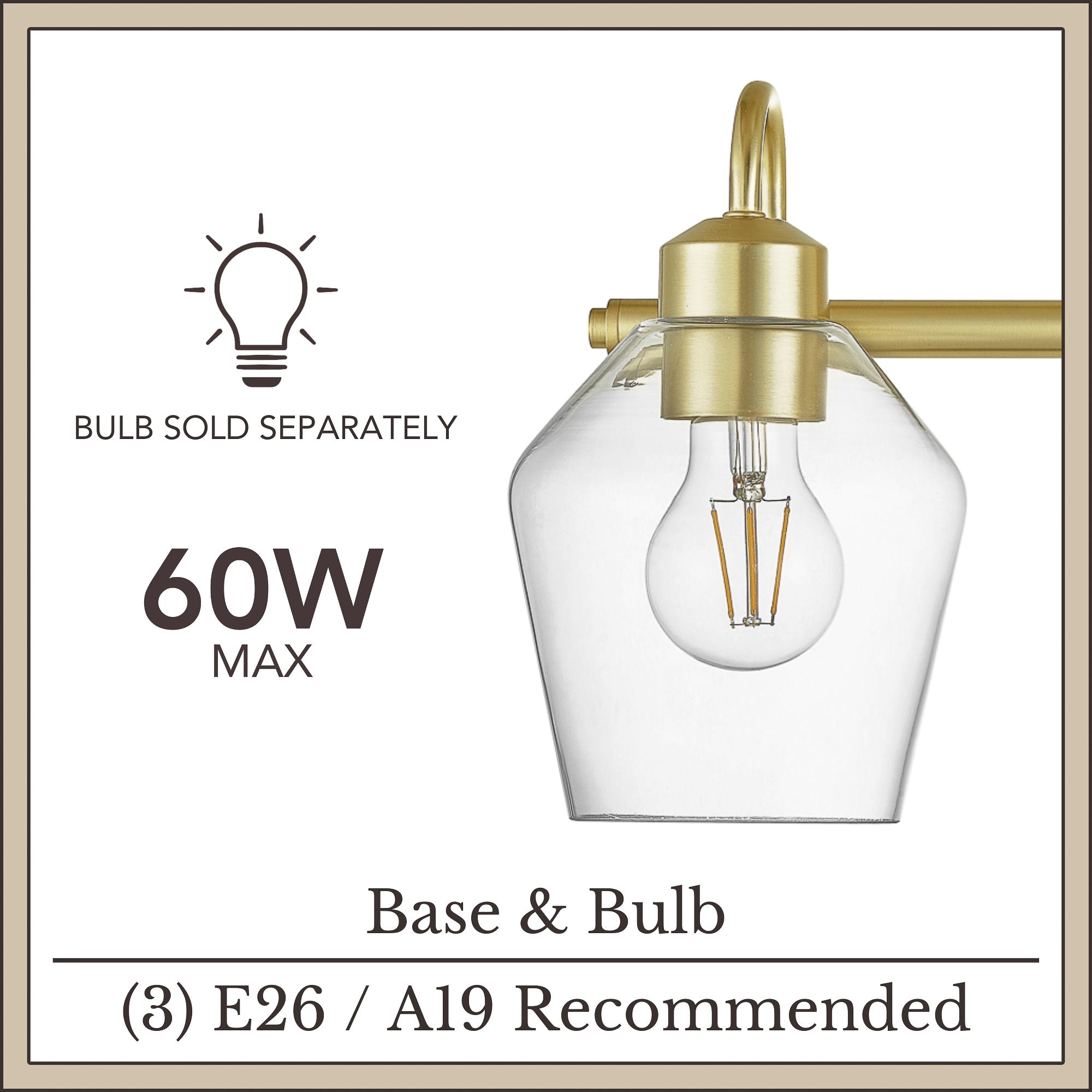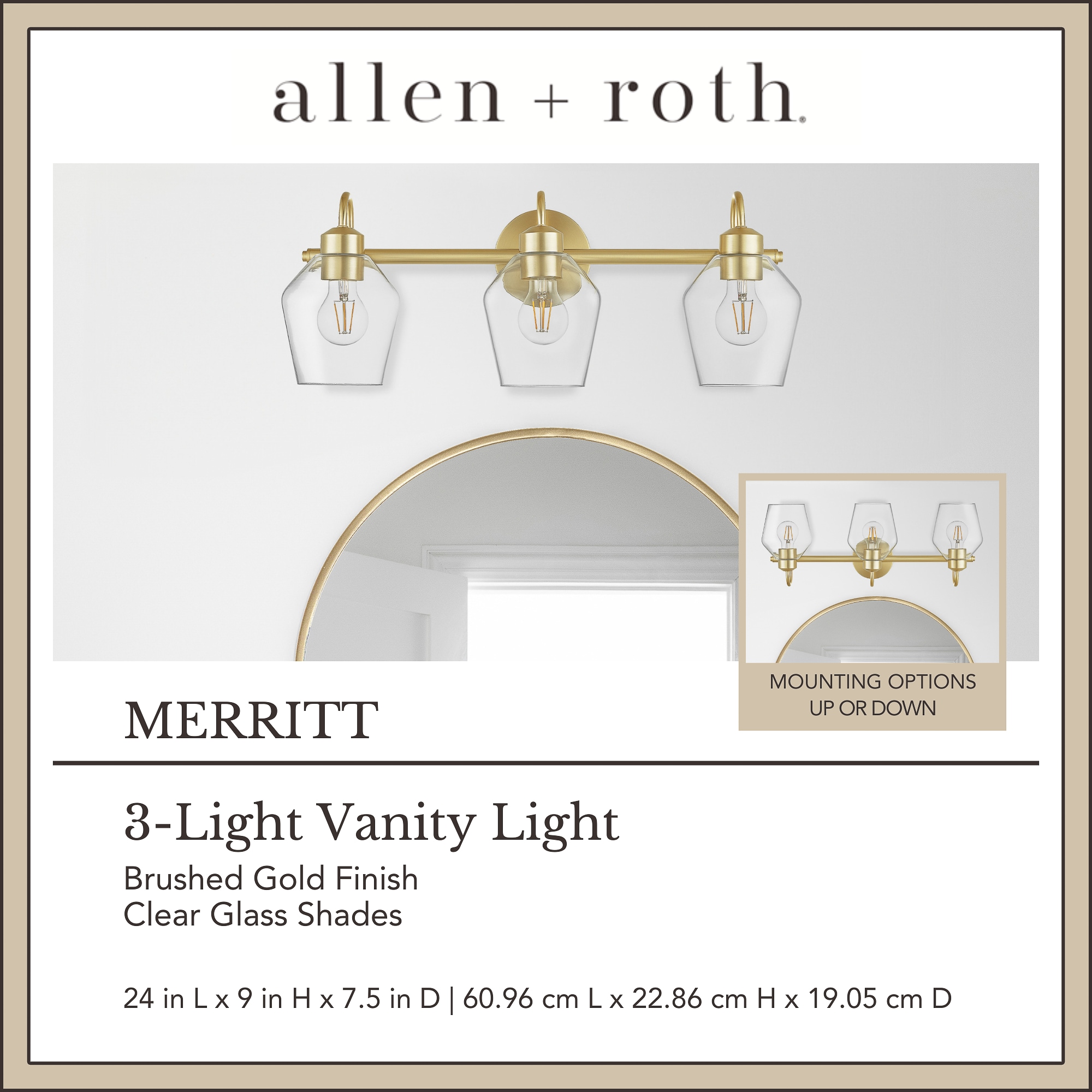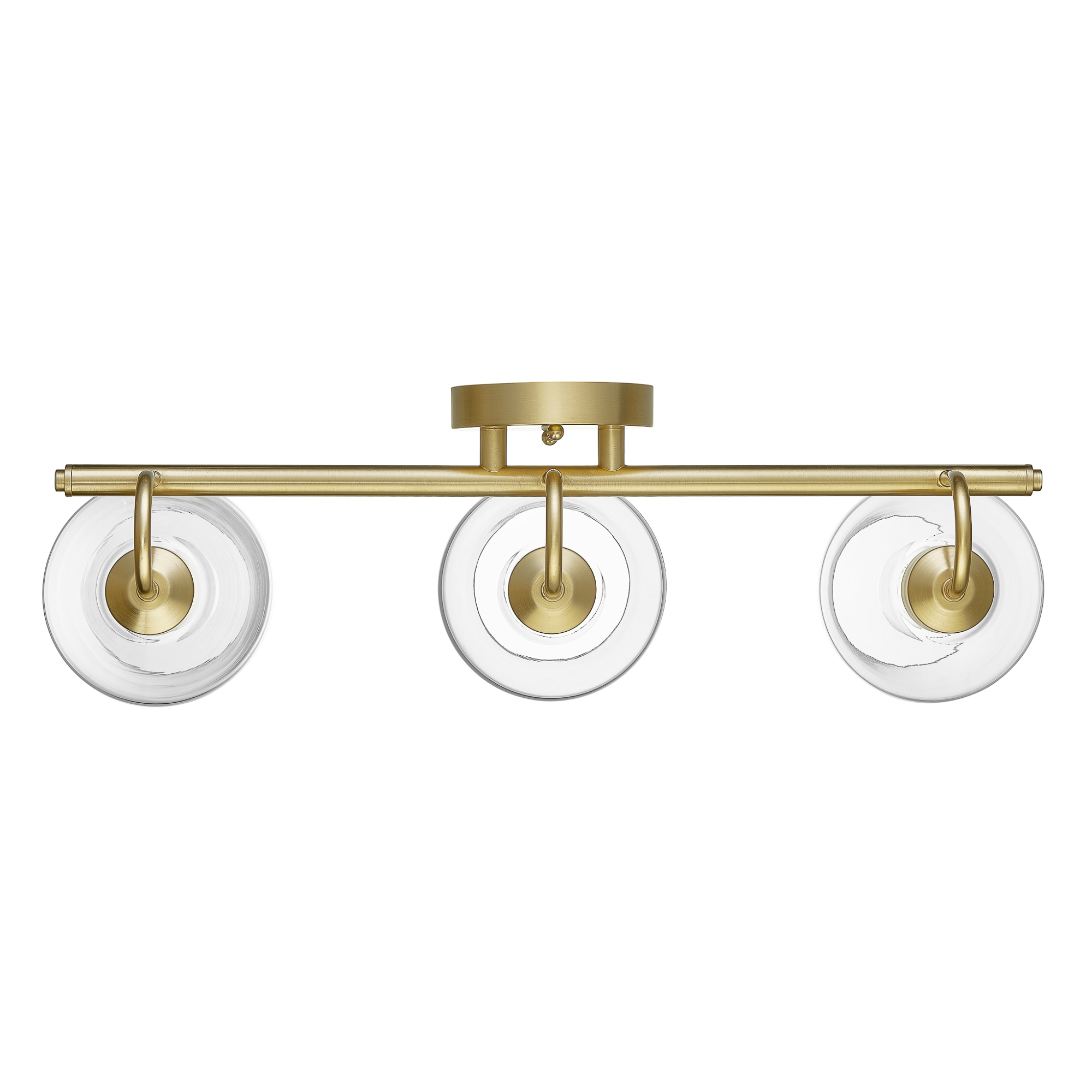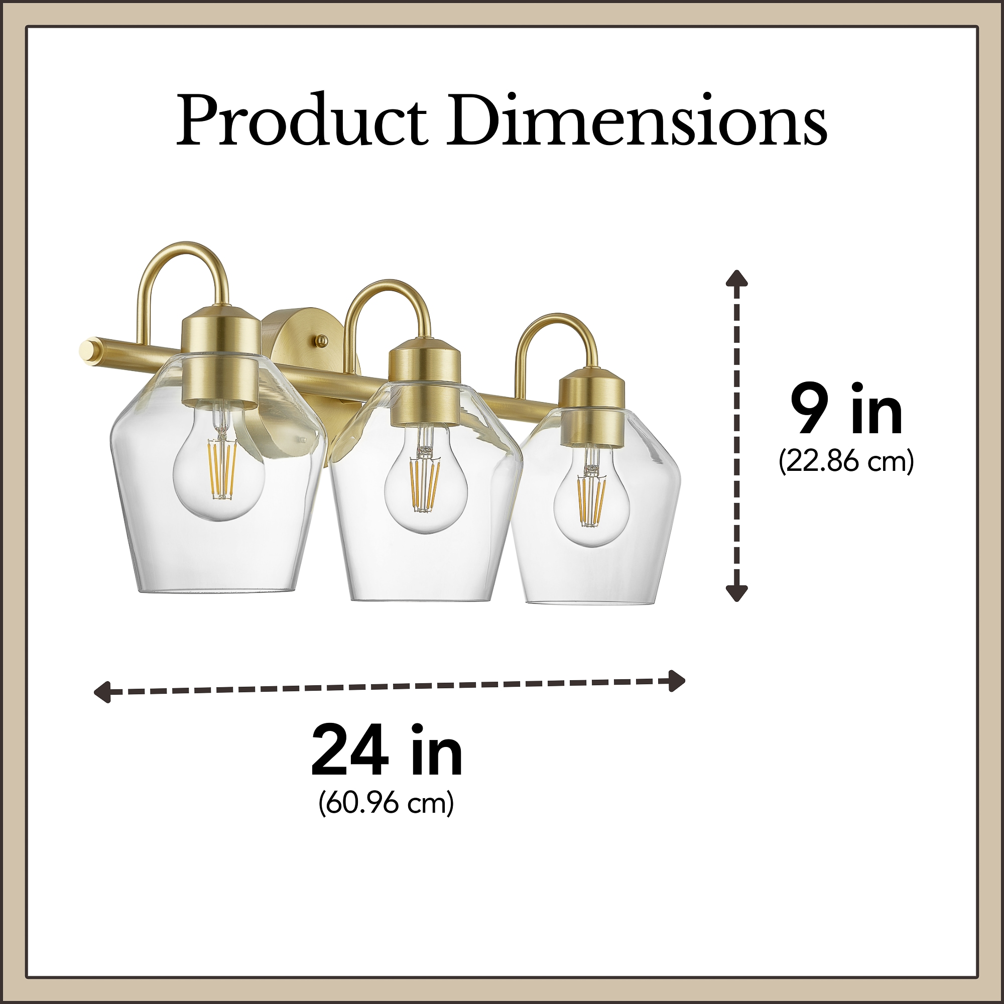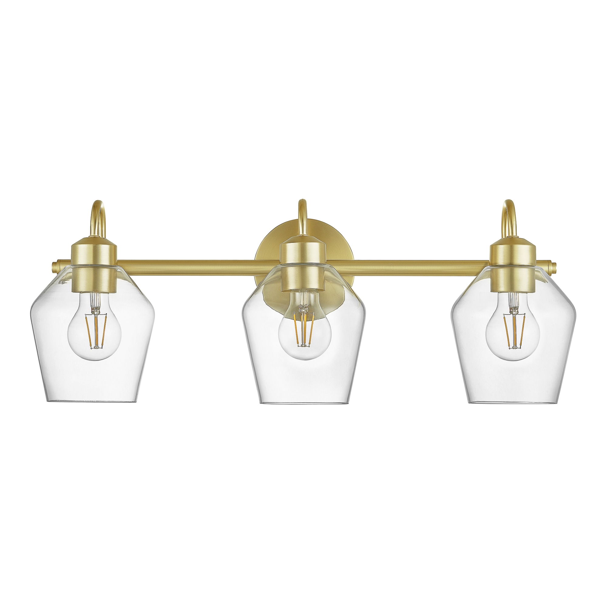 Gold is good, and so is this stylish vanity light. The clear glass shades feature a hip geometric shape that contrasts the straight and curved lines of the brushed gold base to give this vanity light it’s impressive appeal. A perfect fit for any transitional bathroom or powder room, this eye-catching light can be mounted with clear glass shades facing up or down to give you the exact look you are going for.