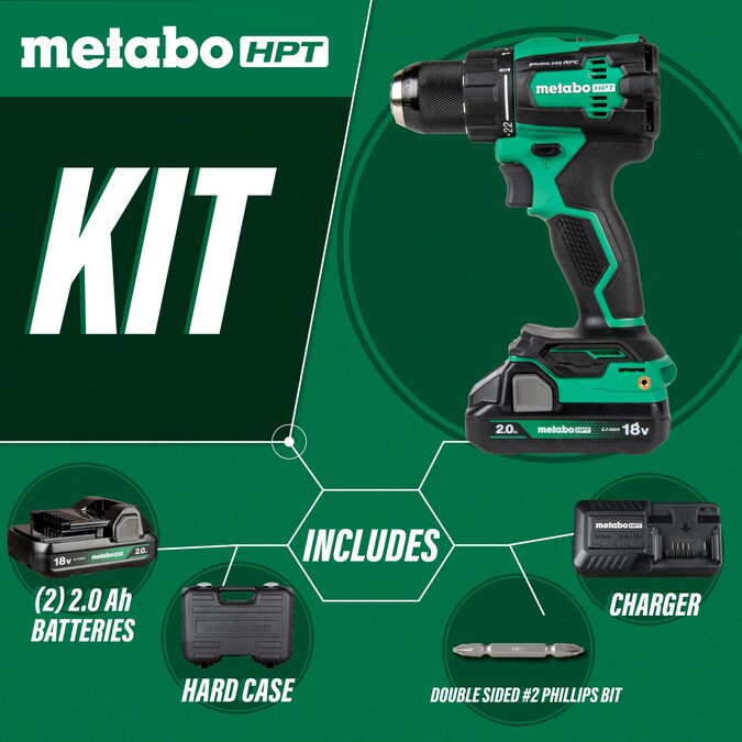 Metabo HPT 18-volt 1/2-in Keyless Brushless Cordless Drill (2-Batteries Included, Charger Included and Soft Bag included)
