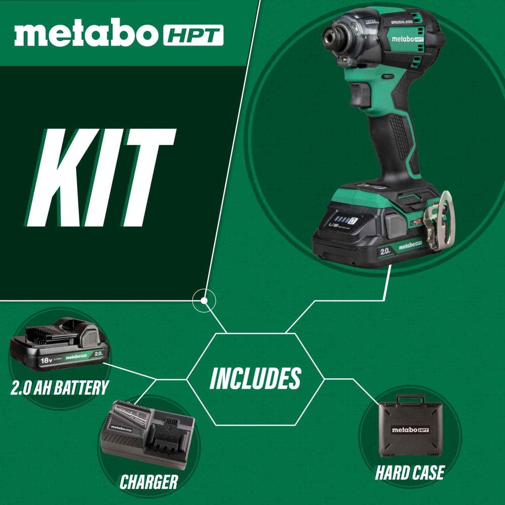 Metabo HPT 18V MultiVolt Cordless Triple Hammer BOLT Impact Driver Set, Power Impact Driver Kit with Case, 2 Lithium-Ion Batteries and Charger, 1/4-Inch Chuck, WH18DC