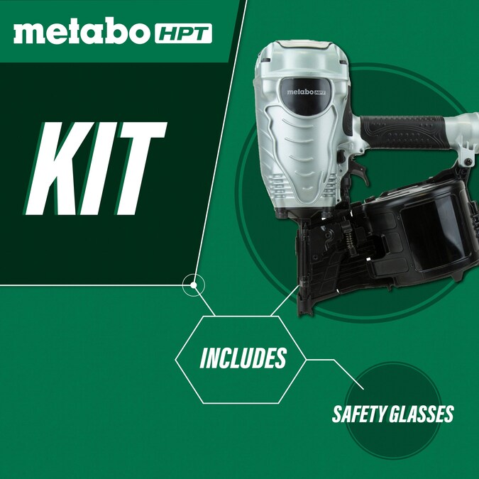 The NV90AGSM framing nailer drives wire collated nails from 1-3/4″ up to 3-1/2″ in length and features Metabo HPT’s next generation “industrial design.” Weighing only 7.7 lbs, it is easy to use all day, while still providing the power of a bulkier, heavier nailer. The convenient side-load, tilt bottom magazine allows for quick and easy fastener replenishment. It can be used for floor and framing, truss build-up, window build-up, sub flooring, roof decking, wall sheathing and housing construction.