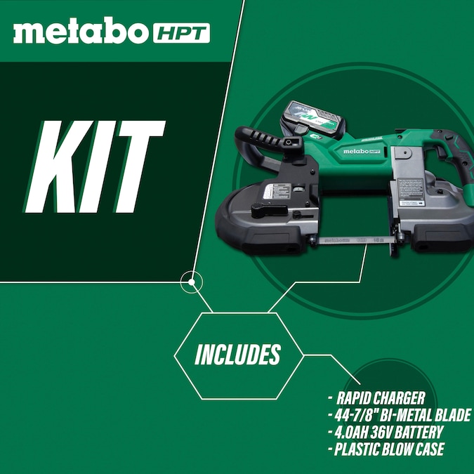 The CB3612DA 36V MultiVolt™ Deep Cut Band Saw is all about performance. The brushless motor produces a best-in-class cutting speed that is 16% faster than the closest competition at 640 surface feet per minute. Combined with the included 18 tooth per inch bi-metal band saw blade, the CB3612DA cuts through stainless steel pipe much faster than the competition and cuts at least twice the number of stainless steel pipes per blade vs. the competition. Even at minimum blade speed the CB3612DA offers the fastest time per cut compared to the competition’s lowest cutting speeds and offers 30% more cuts per blade at minimum cutting speed. The easy-to-clean CB3612DA also features an integrated hook for easy storage, as well as an LED light for clear visibility of the cutting area. All of these incredible features combine to provide a reliable, durable, and efficient band saw option from Metabo HPT!