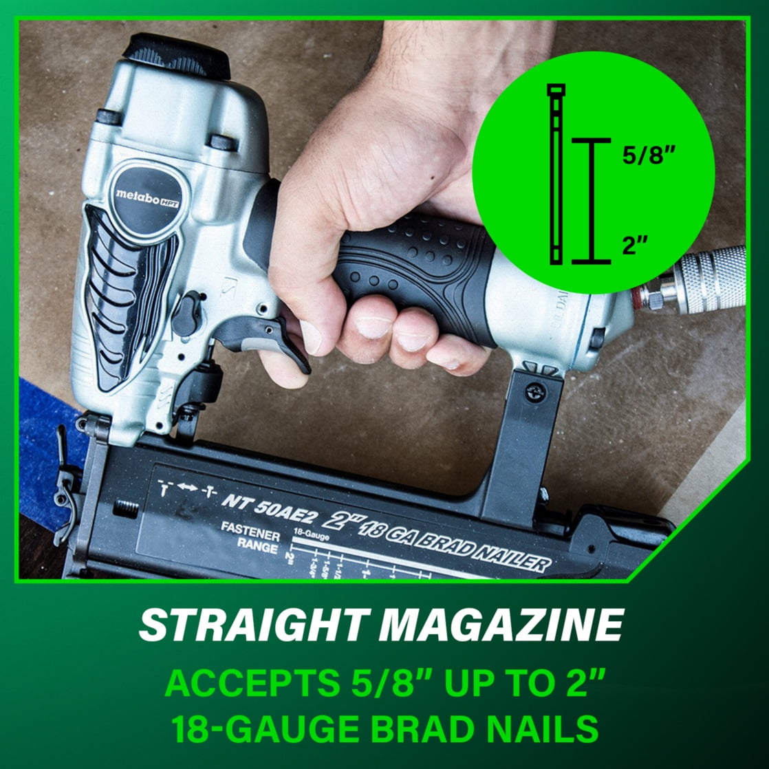 Metabo HPT Brad Nailer, Pro-Preferred Lightweight Pneumatic Power Nailer for Precision Trim Work and Furniture Building, Adjustable Depth, 18 Gauge, 5/8″ up to 2″ Brad Nails, NT50AE2