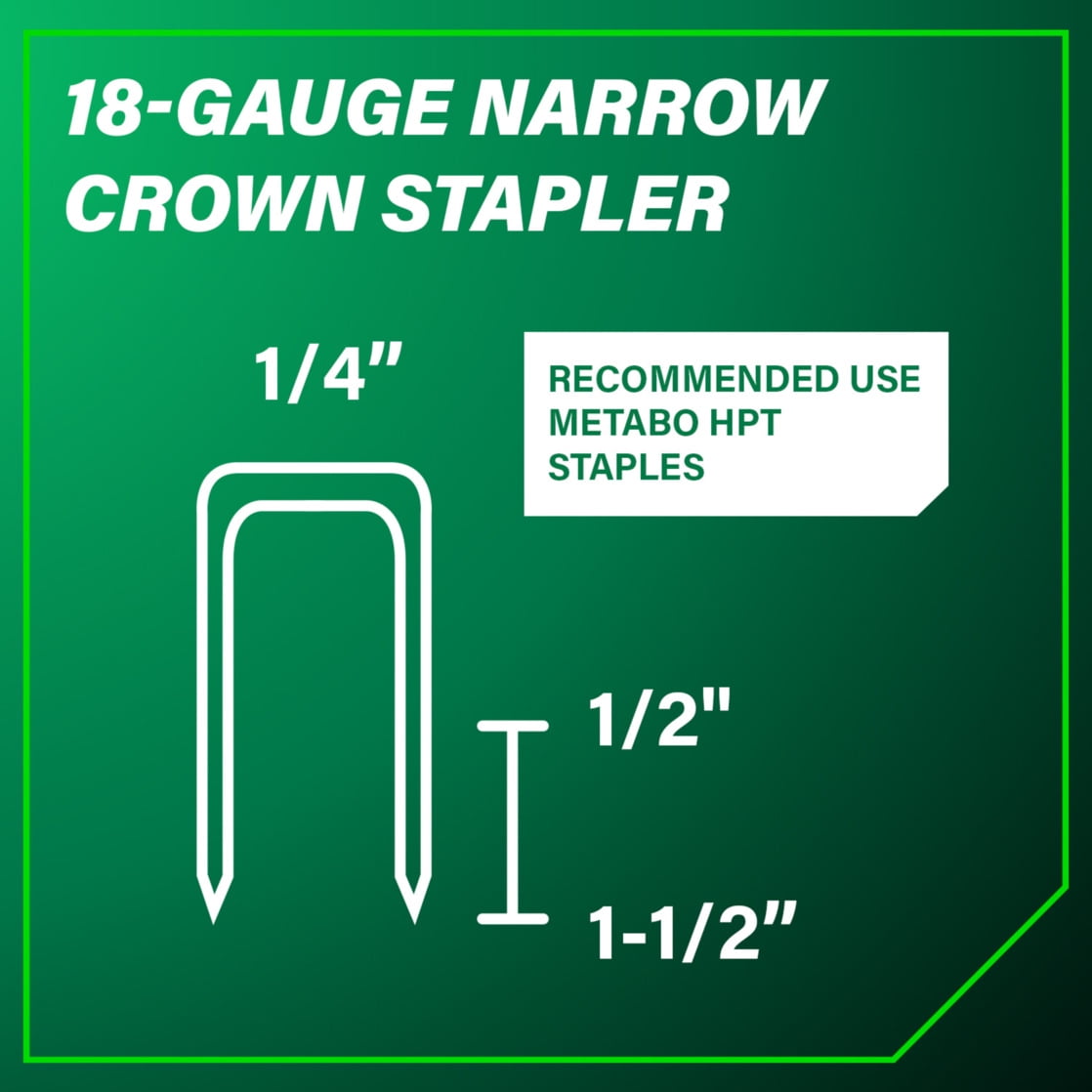 Metabo HPT Narrow Crown Stapler, Pro-Preferred Pneumatic Power Nailers, Finish Stapler for Furniture & Cabinetry, Lightweight Trim Tool, Ergonomic Design, 18 Gauge, 1/2″ to 1-1/2″ Staples, N3804AB3