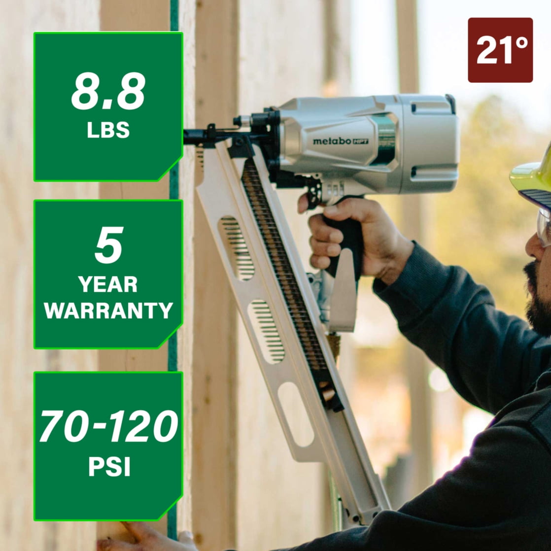 Metabo HPT Framing Nailer | High Grade Aluminum Magazine | Tool-less Depth Adjustment | Pneumatic | Framing Nails 2-Inch to 3-1/4-Inch | Rafter Hook | NR83A5(Y)