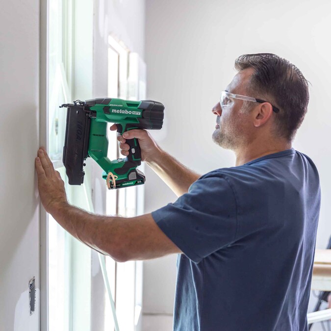 The Pro Preferred Brand of Pneumatic Nailers introduces the 18V Brushless Compact Cordless 18 Gauge Brad Nailer (model NT1850DFT) that is 30% more compact and 31% lighter than the previous model. Now, with a 2.0Ah battery with fuel gauge, it delivers a driving speed of up to 2 nails per second, saving valuable time and increasing productivity. It is ideal for molding installation, cabinet assembly, wainscoting, chair rail, window and door casings, and decorative trim. Forget the hassle of having to drag long hoses or compressors around, or having to deal with gas cartridges, and GO cordless. This 18 Gauge Brad Nailer delivers a similar feel to a pneumatic nailer thanks to Metabo HPT’s unique Air Spring Drive System. Combine the pneumatic-like feel with the convenience and power of the 18V or MultiVolt battery, and this cordless Brad Nailer works all day long, driving 5/8-to-2-inch nails. Get 1300 nails per charge with the included 2.0Ah compact battery. It features tool-less depth of drive, bright LED light, side lock safety switch, integrated belt hook, and selective actuation between sequential and bump fire nailing. Backed by Metabo HPT’s Lifetime Lithium-Ion tool body warranty, it’s a safe bet for the long haul. The 18V 18 Gauge Cordless Brad Nailer is a part of the expanding MultiVolt System of 18-Volt and 36-Volt power tools from Metabo HPT. GO lighter with 18V batteries or GO longer with the unique MultiVolt battery that works on both 18V and 36V tools to double your runtime for up to 8.0Ah of run time per charge for more power on the GO.