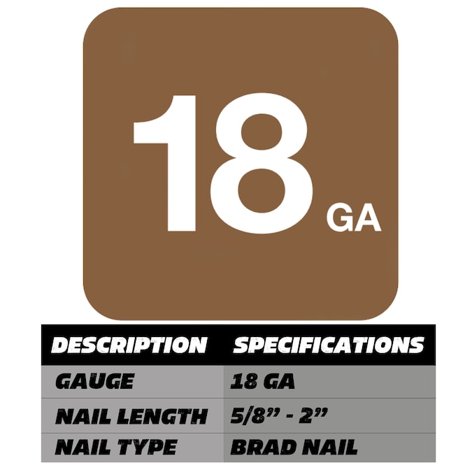 - FASTENERS: Accepts 5/8 inch up to 2 inch 18-gauge straight finish nails