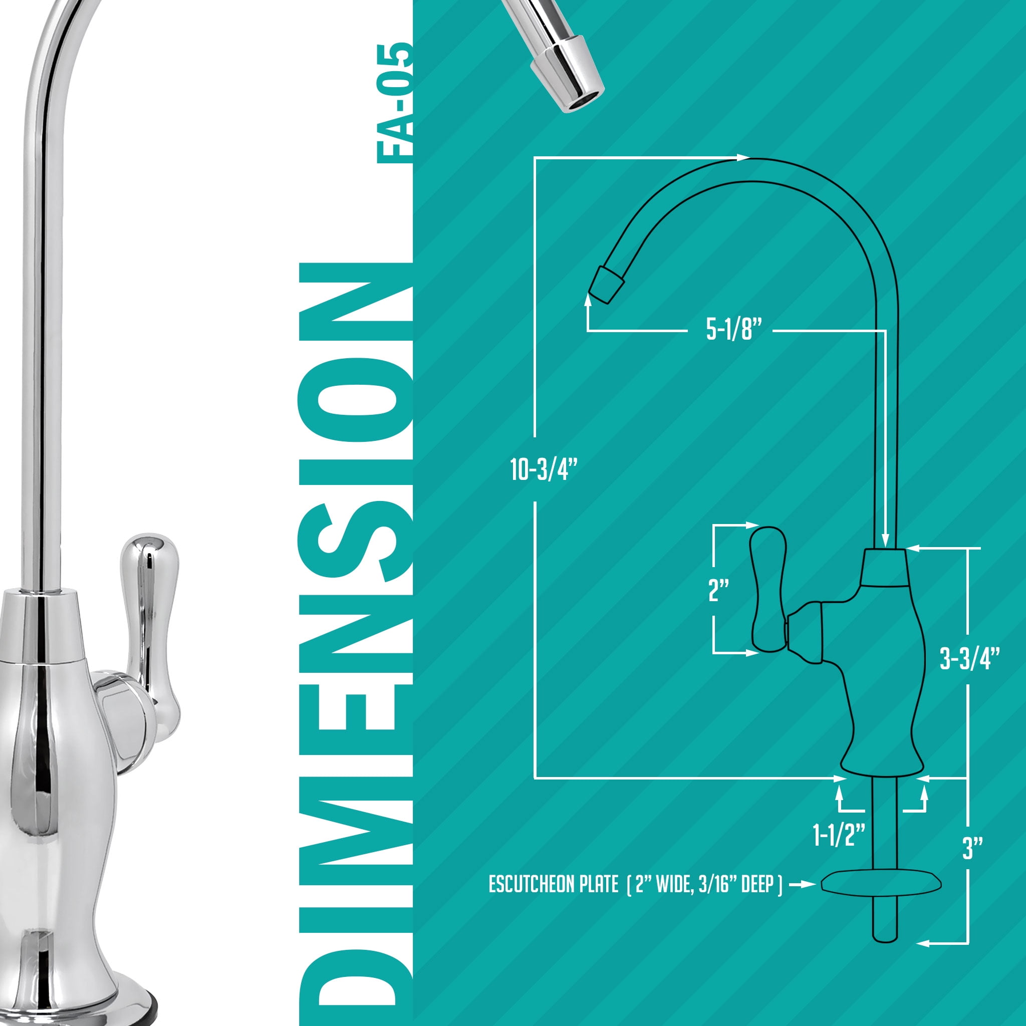 PREMIUM QUALITY: This vase style ceramic disc lever reverse osmosis (RO) water filtration faucet is crafted with zinc composite exterior for durability and lasting finish. The product passes lead-free material requirements and the solid weight and smoothness can be felt throughout. STANDARD FIT: Most popular filtration systems come in 1/4″ feed tube, so we included that for you on all our water filtration faucets. But don’t worry, if your system comes with a 3/8″ feed tube, you can just convert it by using an adapter (sold separately – FT-QCFA7163). CONVENIENT USAGE: The tall gooseneck of this water filtration faucet swivels 360 degrees for all dispensing angles and the built-in ceramic disc valve will provide a smooth operation on every dispense. COMPATIBILITY: This universal faucet works well with many types of water filtration filters and systems that accept a universal water filtration faucet, including reverse osmosis. FREE INSTALL TOOL: We know how difficult it is to get under your sink and install faucets so we made things super easy for you – the included FREE RO faucet wrench eases installation time by more than half and ensures a tight mount. EASY INSTALL: The single stem, non airgap design only requires 1/2″ hole for minimal countertop drilling and the 3″ long shank reaches far down to mount the required hardware for easy installation under sink. For installation video, go to The vase style non air gap faucet stem is approximately 7/16” wide, so you would need to drill a hole larger than that. The escutcheon plate, that goes on top of the counter, is approximately 2 inches wide, but the washer that goes underneath the counter is approximately 1 and 11/16″ wide.