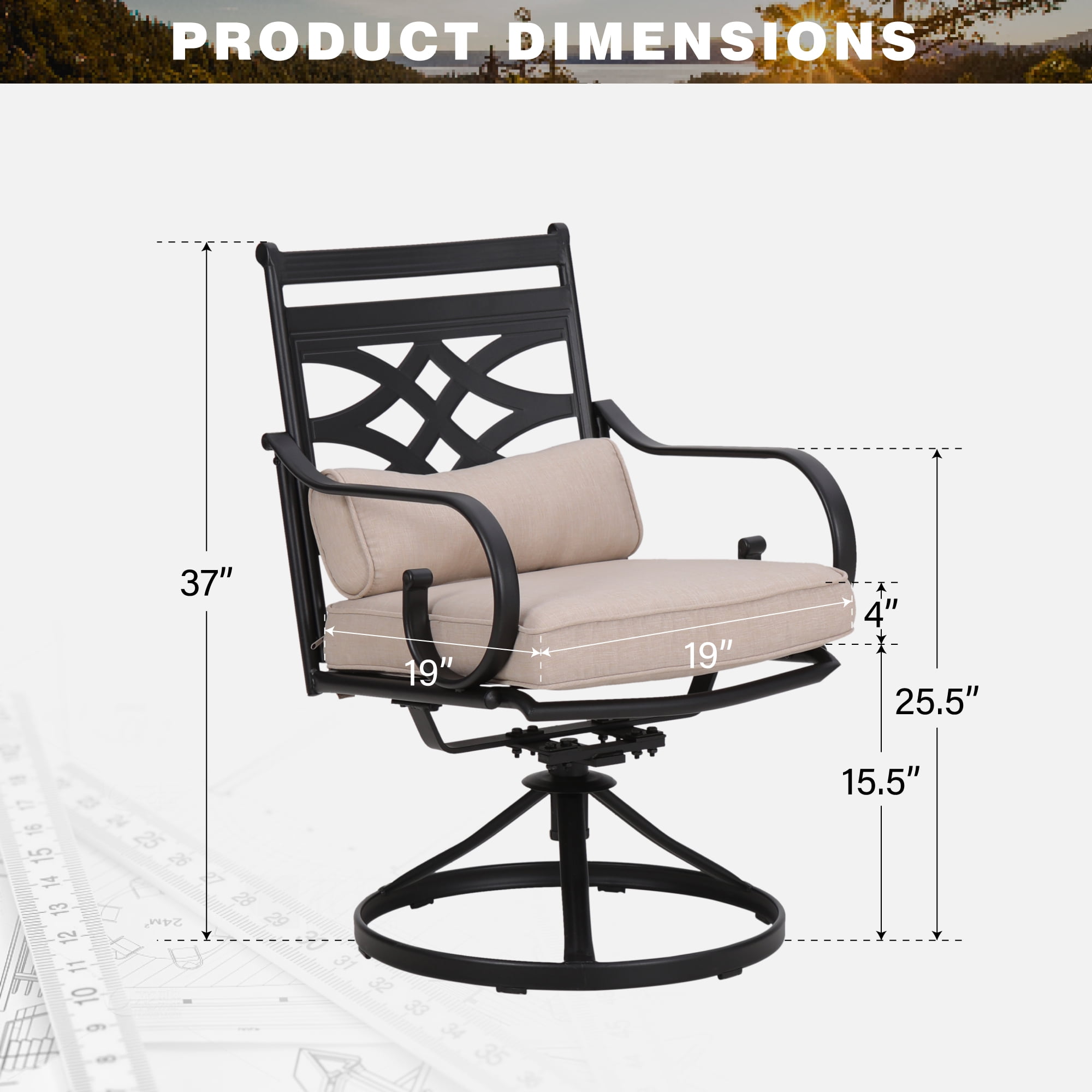 Durable Cast Aluminum Design: Crafted from strong cast aluminum, ensuring lasting durability for outdoor use Comfortable Seat & Back Cushions: Includes soft cushions for extra comfort, perfect for long dining sessions outside 360° Swivel Feature: Enjoy easy movement and conversation with our convenient 360-degree swivel chairs Elegant Beige Color: The stylish beige finish complements any outdoor decor beautifully for your patio Easy to Clean & Maintain: Simply wipe down with a damp cloth for hassle-free maintenance all season long