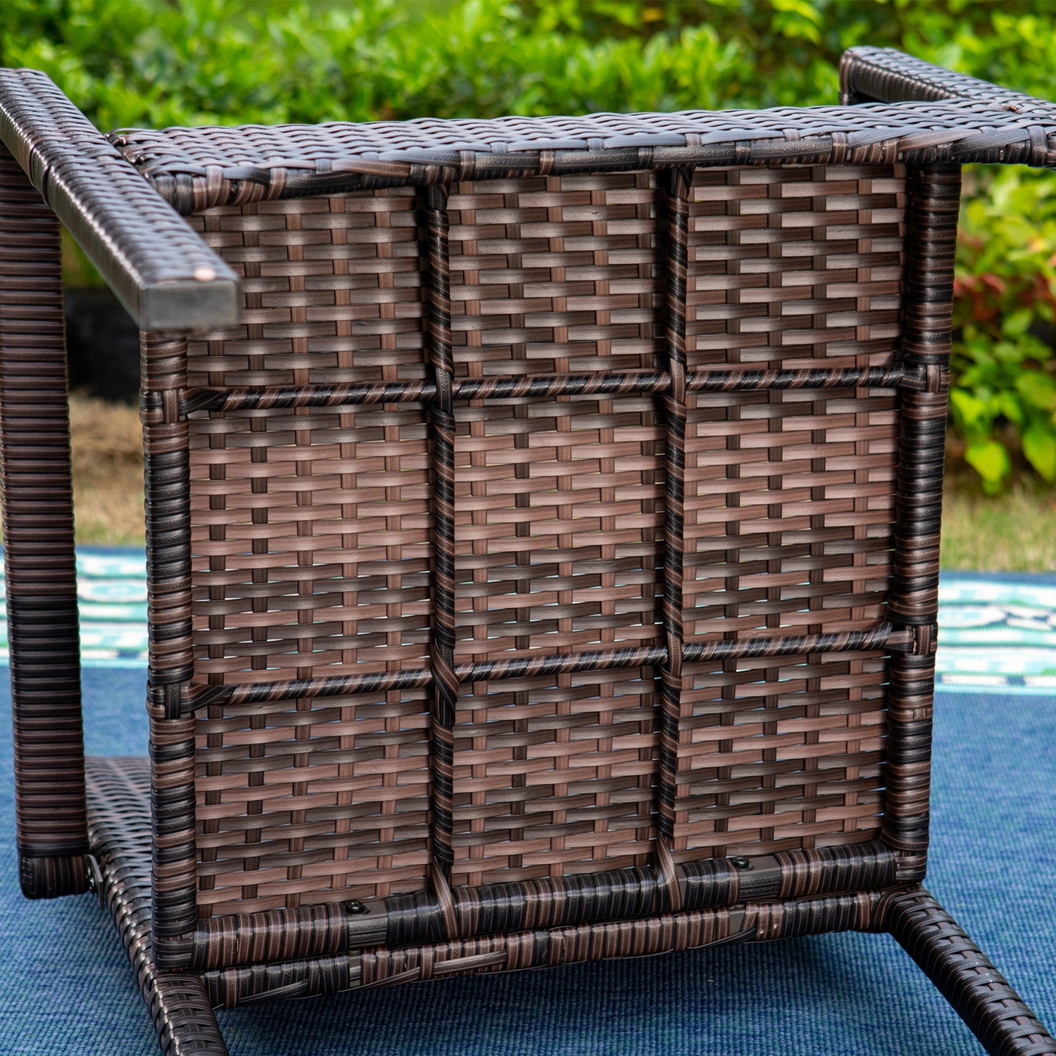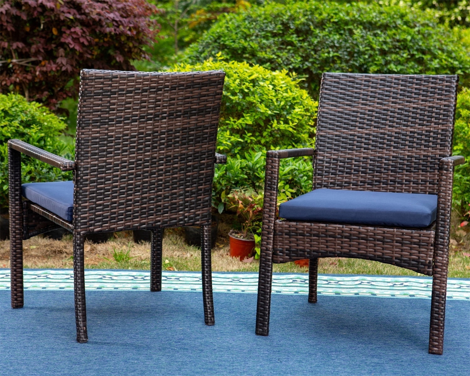 MF Studio 2-Piece Outdoor Patio Rattan Dining Chair with Navy Blue Cushions, Dark Brown