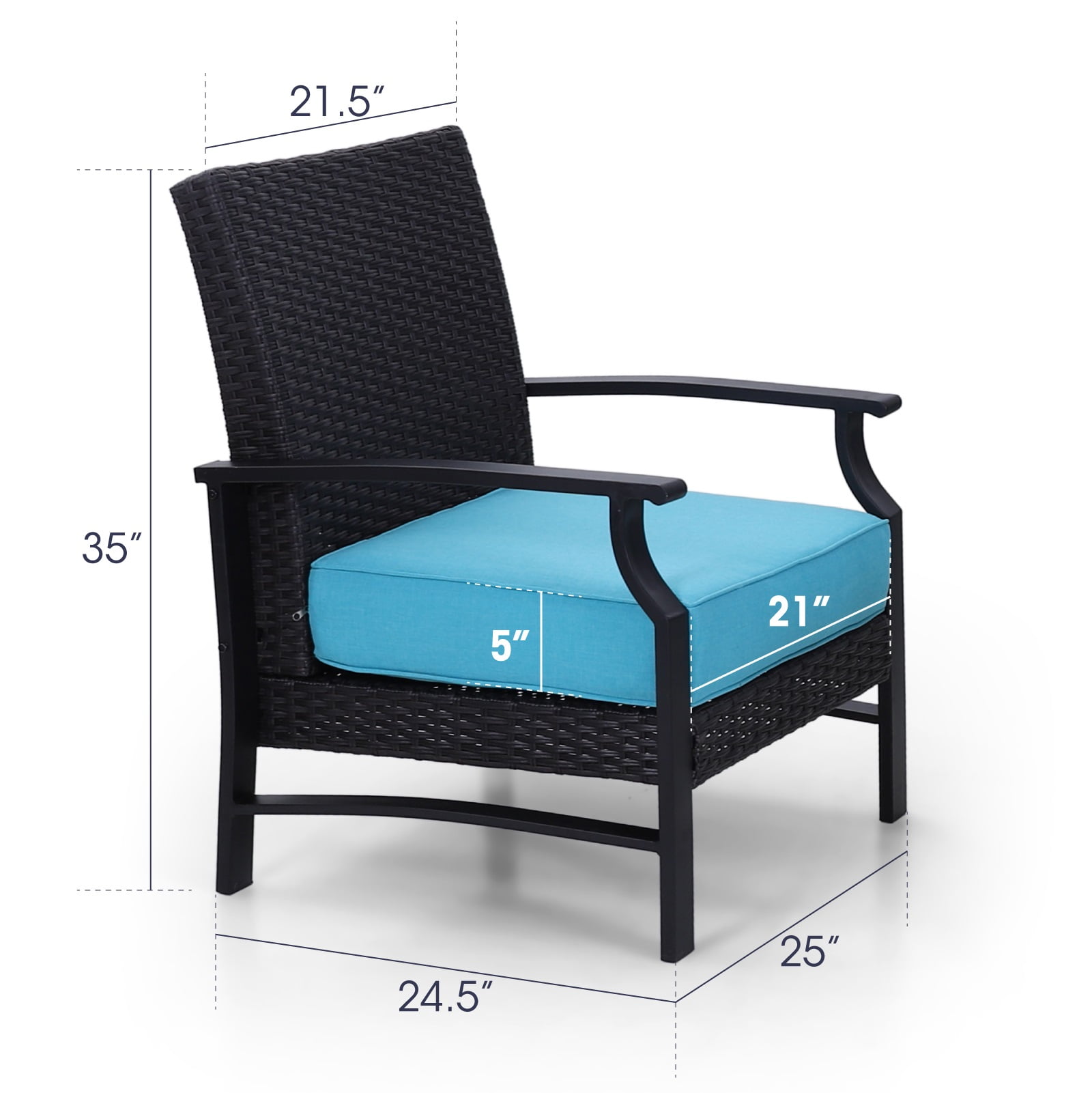 Rattan conversation set includes 2 chairs Steel frame wrapped with all weather PE wicker, stable and durable Wide armrest and backrest provide a relaxing zone High back design with 5″ thickness padded high density foam, providing a deep setting experience Heavy duty foot provide good support Removal covers with zipper for easy cleaning. Ideal for your patio, balcony, poolside, courtyard or any other outdoor spaces