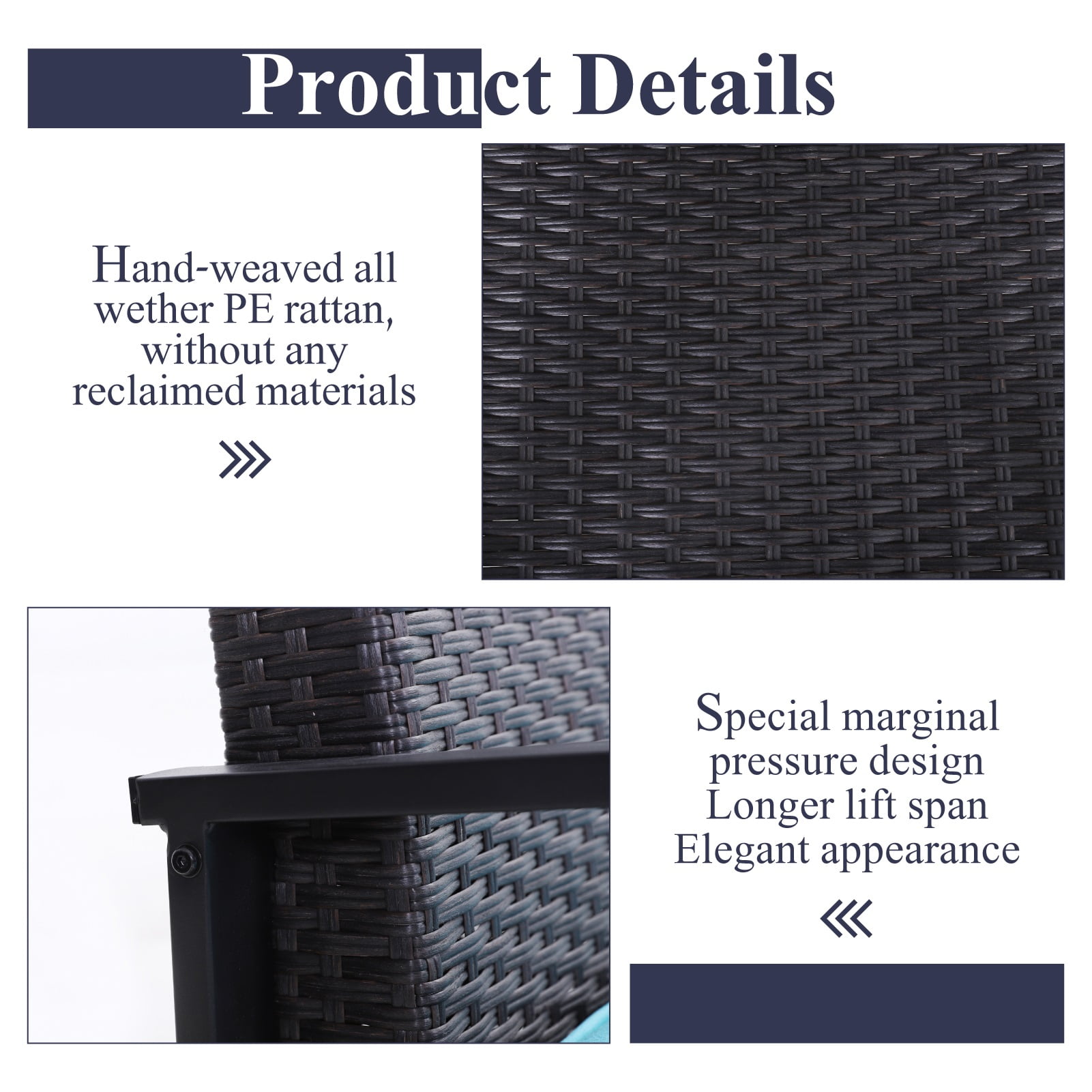 MF Studio Outdoor Patio Rattan Conversation Set Crated with reinforced power coated steel frame and all weather PE rattan, this patio sofa set is sturdy enough to support up to 350 lbs for each seat. High back design with 5″ thickness padded high density foam will provide you a deep setting experience. Ideal for your patio, balcony, poolside, courtyard or any other outdoor space. Just enjoy your leisure time with this elegant patio conversation sets. Deep Seating Experience: High back design with 5″ thickness padded high density foam will provide you a deep setting experience;The curved design of the chair back provides more support for your back; Extra-wide smooth steel armrest provide more comfort. All these economic designs help you sit for a long time without felling tired. Study and Durable: Sturdy reinforced steel frame with coating for rust-proof and weather-resistant. Using all weather reinforced PE rattan, it is more lightweight and solid compared with other rattan. This patio sofa set is study enough to support up to 350 pounds per seat. Metal coffee table with coating prevent rust. 5″Thick Sponge Cushion: The 5″ thickness padded cushions use a high-density rebound sponge to give you a comfortable sitting feel. Easy to Clean: Made with upgraded Olefin fabric that can be water-resistant, breathable and soft to touch. Removal covers with zipper for easy cleaning. 1 Year warranty: Free exchange or replacement for installation problems, damage parts and missing parts, we promise 1-Year warranty part. If you have any questions, please feel free to send email to our service team: [email protected]. We will help you sooner. SPECIFICATIONS: Steel Material: Power coated steel frame Fabric Material: High Grade Olefin fabric Dimension: 25”L x 24.5”W x 35”H Weight capacity: about 350lbs for each seat