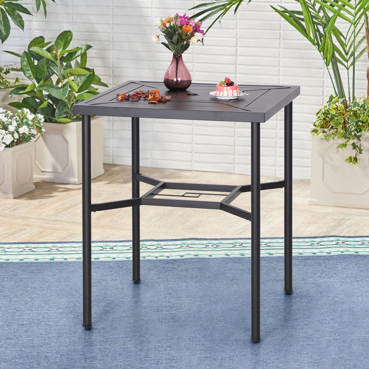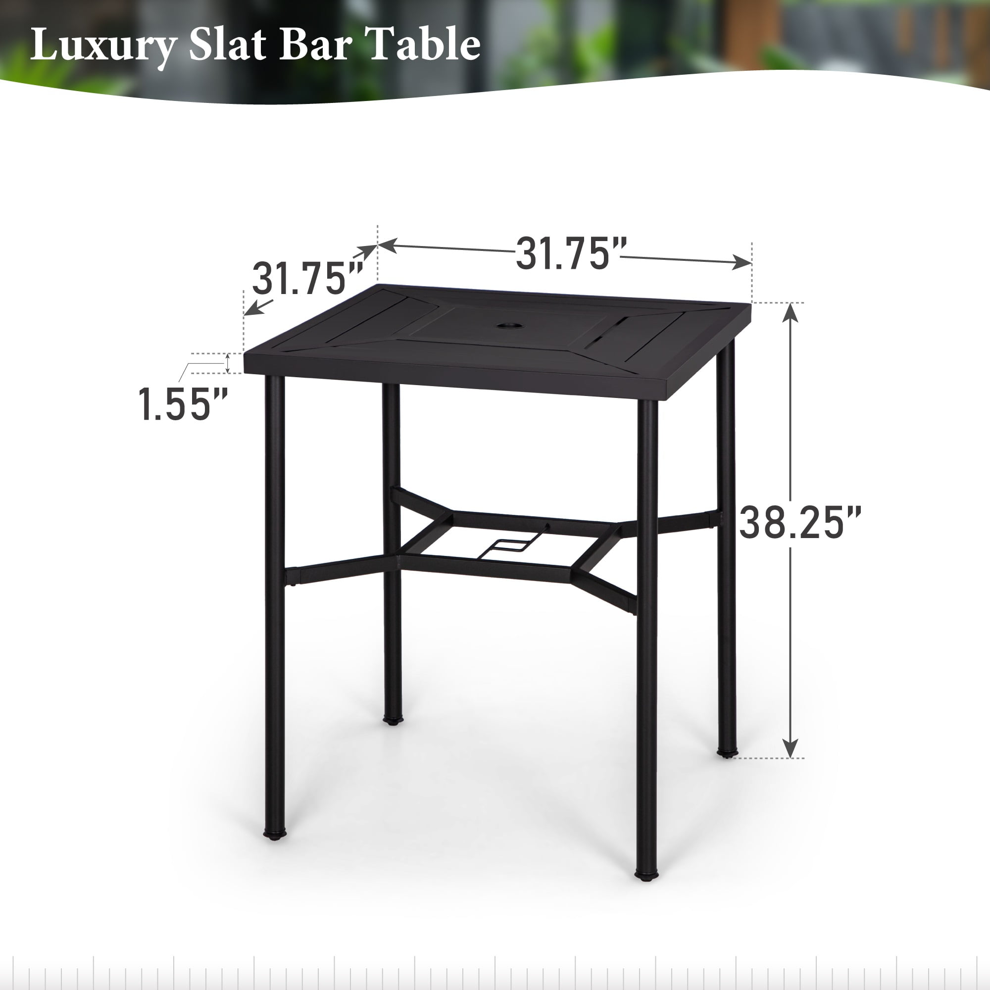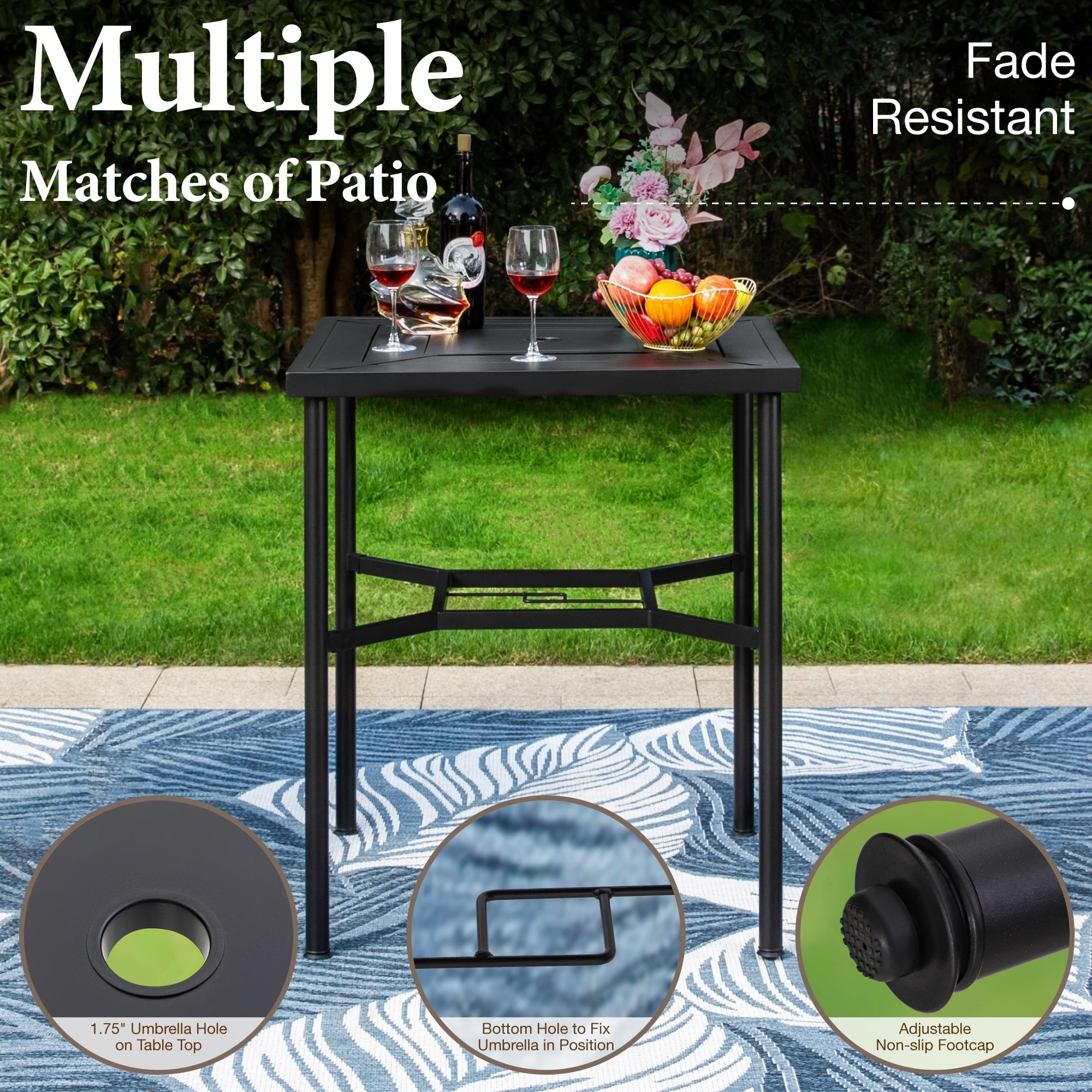 Bar Stool: Dimension: 22.8″ (W) x 23.2″ (D) x 46″ (H) Seat Height: 24.8″ Material: High-quality steel frame & PE rattan Cushion Thickness: 4″ Color: Gray-brown Rattan & Beige Cushion Bar Table: Dimension: L 32″ x W 32″ x H 37.8″ Material: High-quality steel frame Diameter 1.9″ umbrella hole, suitable for most patio umbrellas All-weather & rust resistant Color: Black Features: Custom hand weaved all-weather, high density, PE (polyethylene) wicker Strong rust-resistant powder-coated steel frame for maximum durability Diameter 1.9″ hole on the tabletop for most patio umbrellas Removable upholstered cushion for extra comfort Fabric resisting accidental stains and UV harm Anti-slip bar stool feet for good stability & safety Perfect for patio, bistro, garden, porch, yard, and balcony Please kindly note this 3-piece patio set comes with 2 boxes ( 1 box for 2 chairs & 1 box for table) and might be delivered separately. Please wait patiently for all packages. If any questions, please contact with our service team, service@alphamarts. com. Thank you. Cleaning & Maintenance Check stability regularly. Screws may loosen and need to be tightened. Keep the furniture clean and dry. Shake out the fabrics and wipe away excess water after a rain. We recommend you to store and cover your patio furniture in a coll dry place when not in use.
