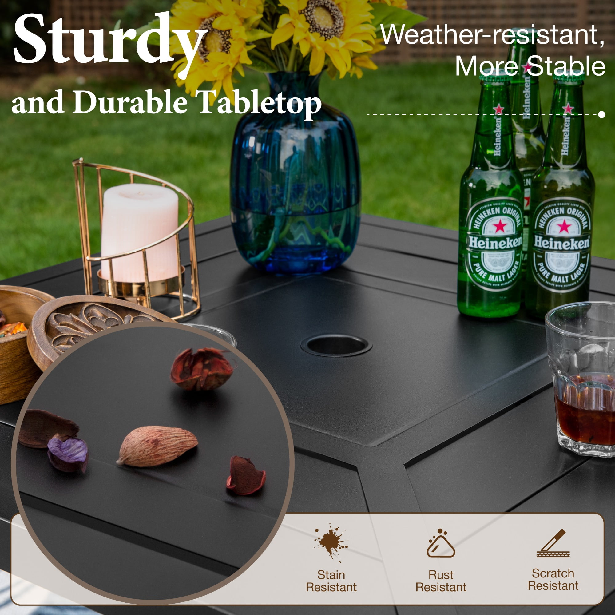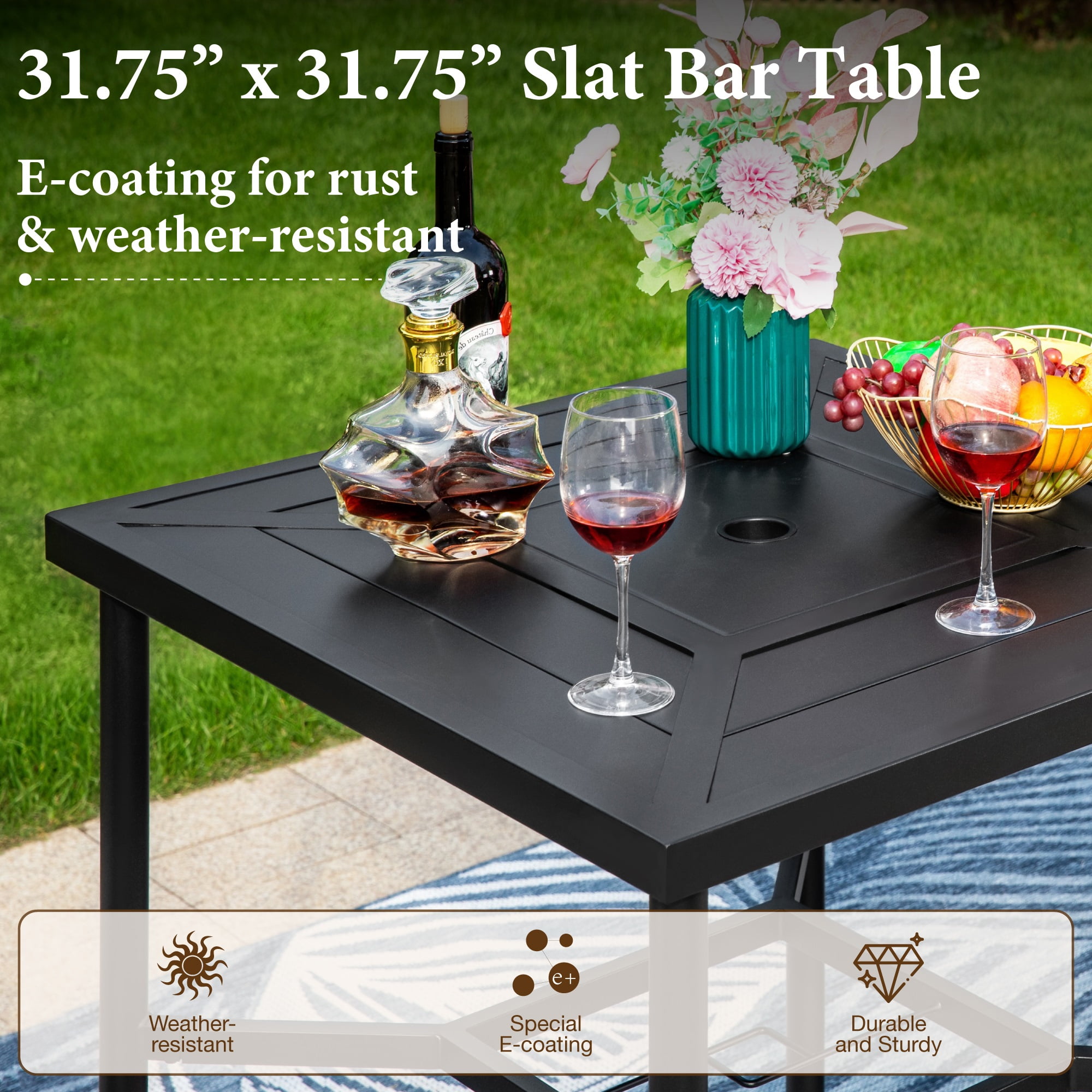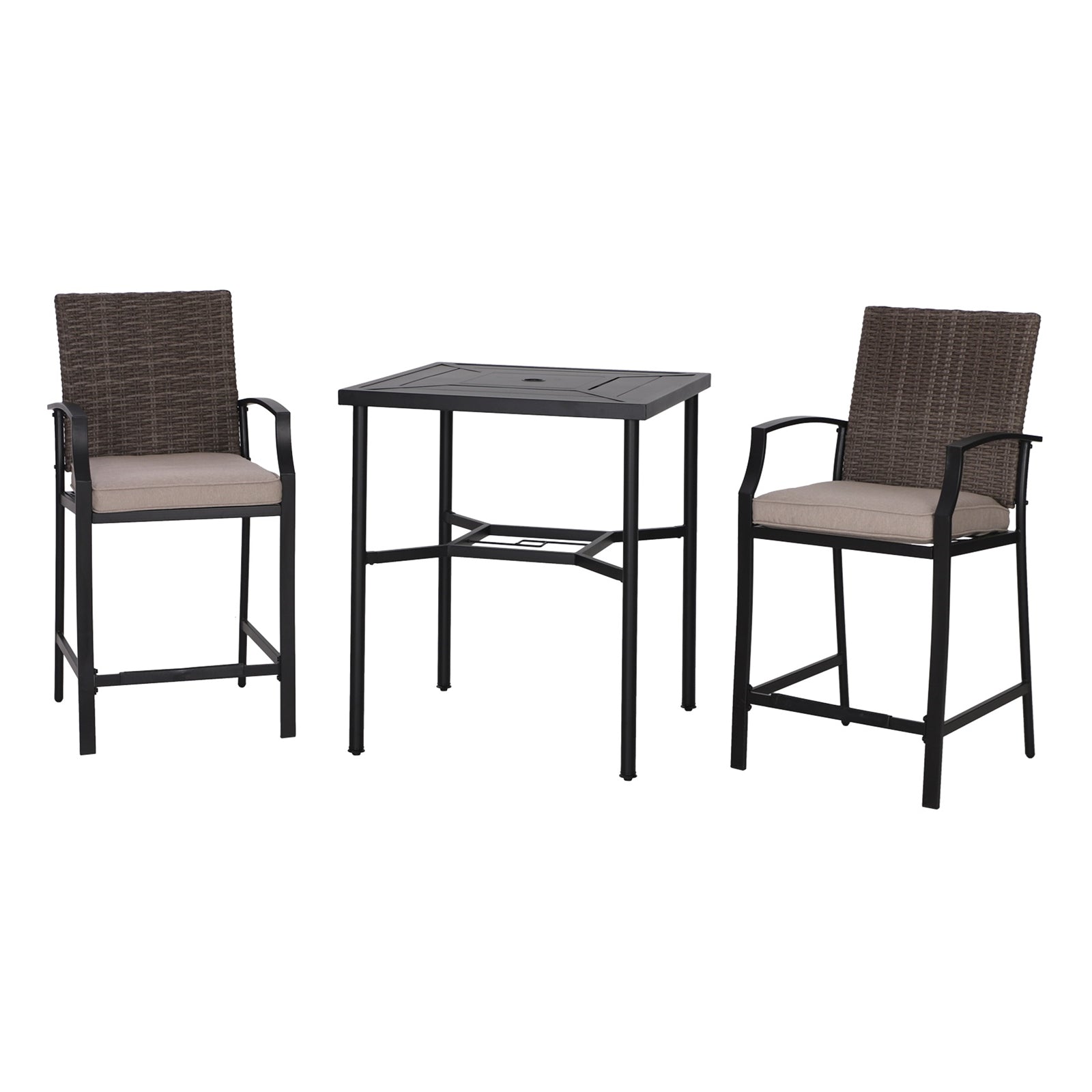 MF Studio 3-Piece Outdoor Patio Bar Stools Set with Rattan Cushioned Bar Stools & Square Bar Height Table, Brown & Beige