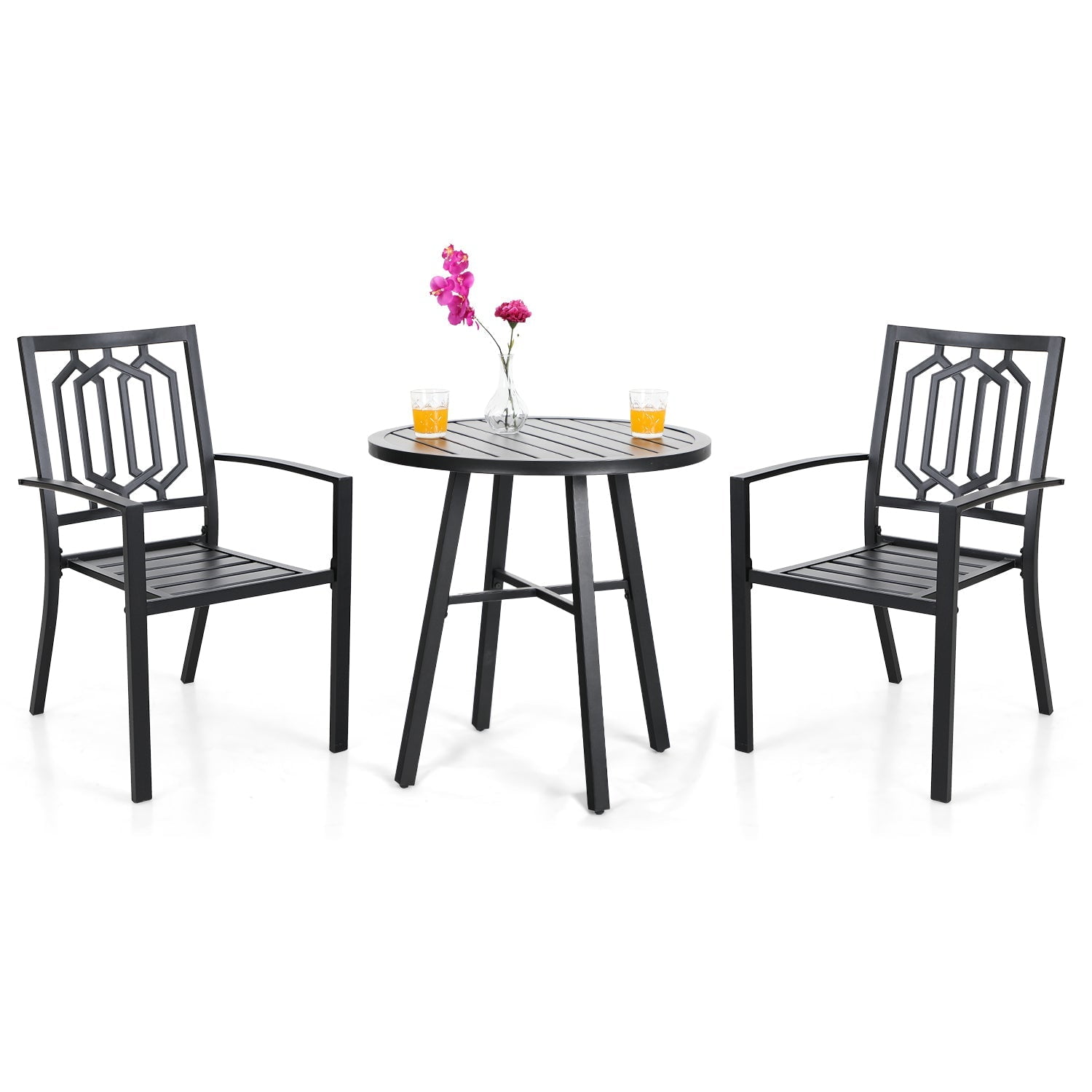 MF Studio 3-Piece Outdoor Patio Garden Bistro Set with 2 PCS Armchairs&1 PC Round Table, Black