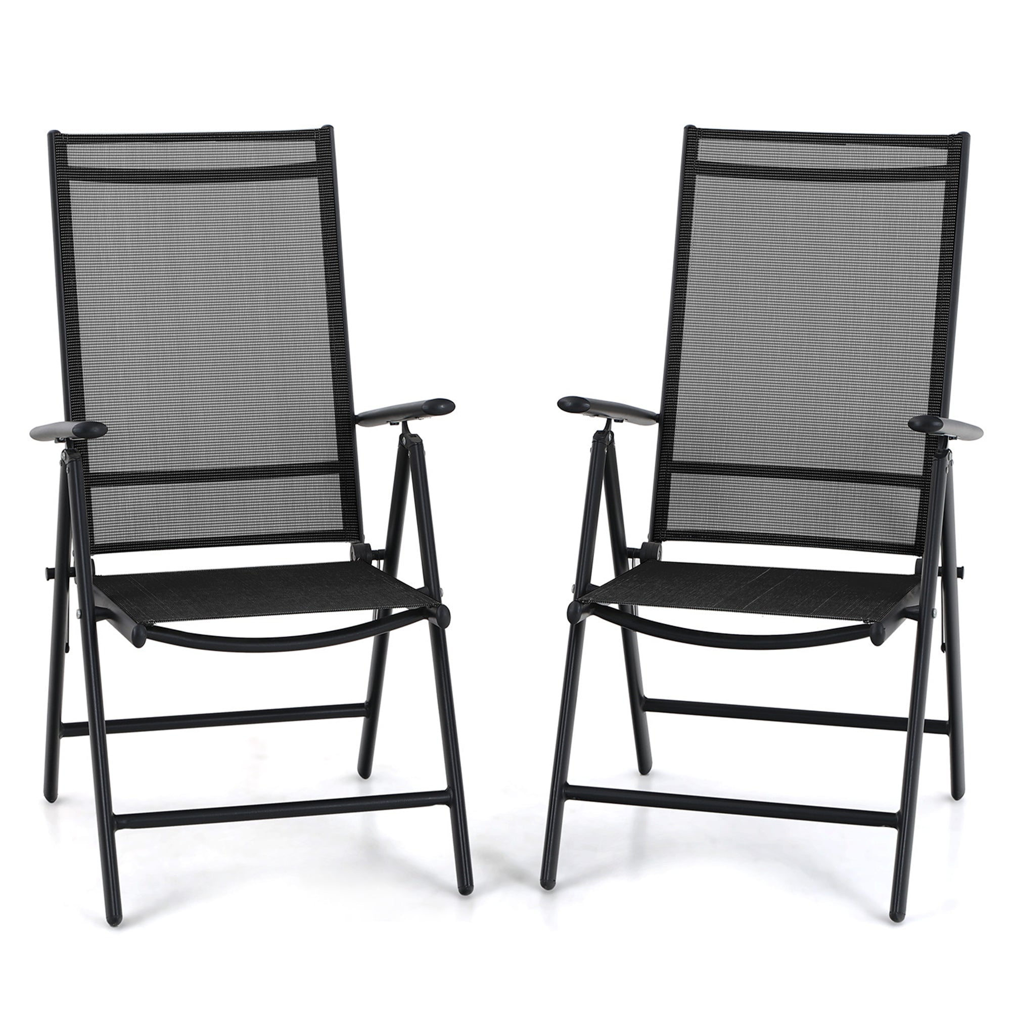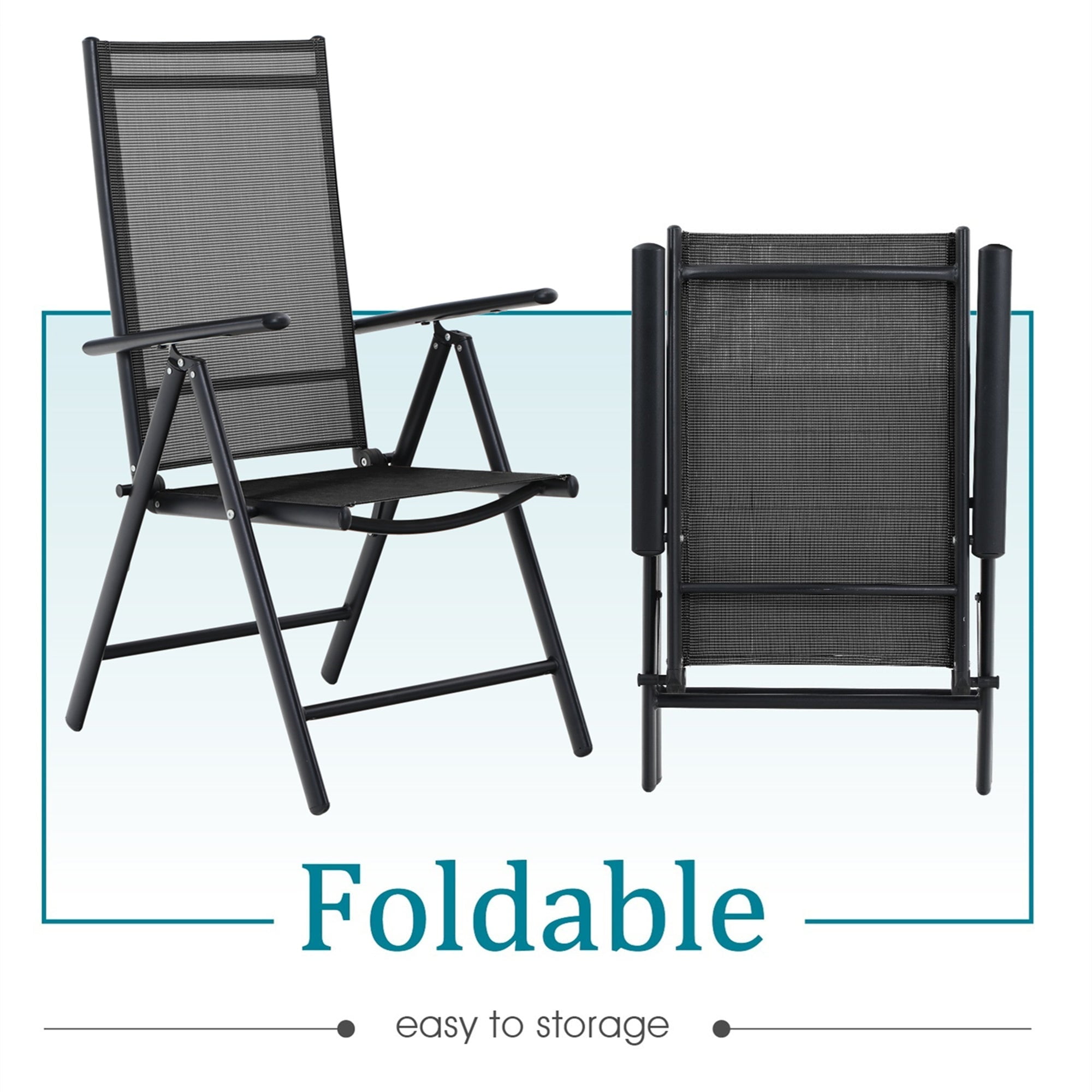 MF Studio 5-Piece Outdoor Patio Aluminum Folding Dining Set Modern Furniture with 7-Level Adjustable Textilene Chairs&Square Table, Black
