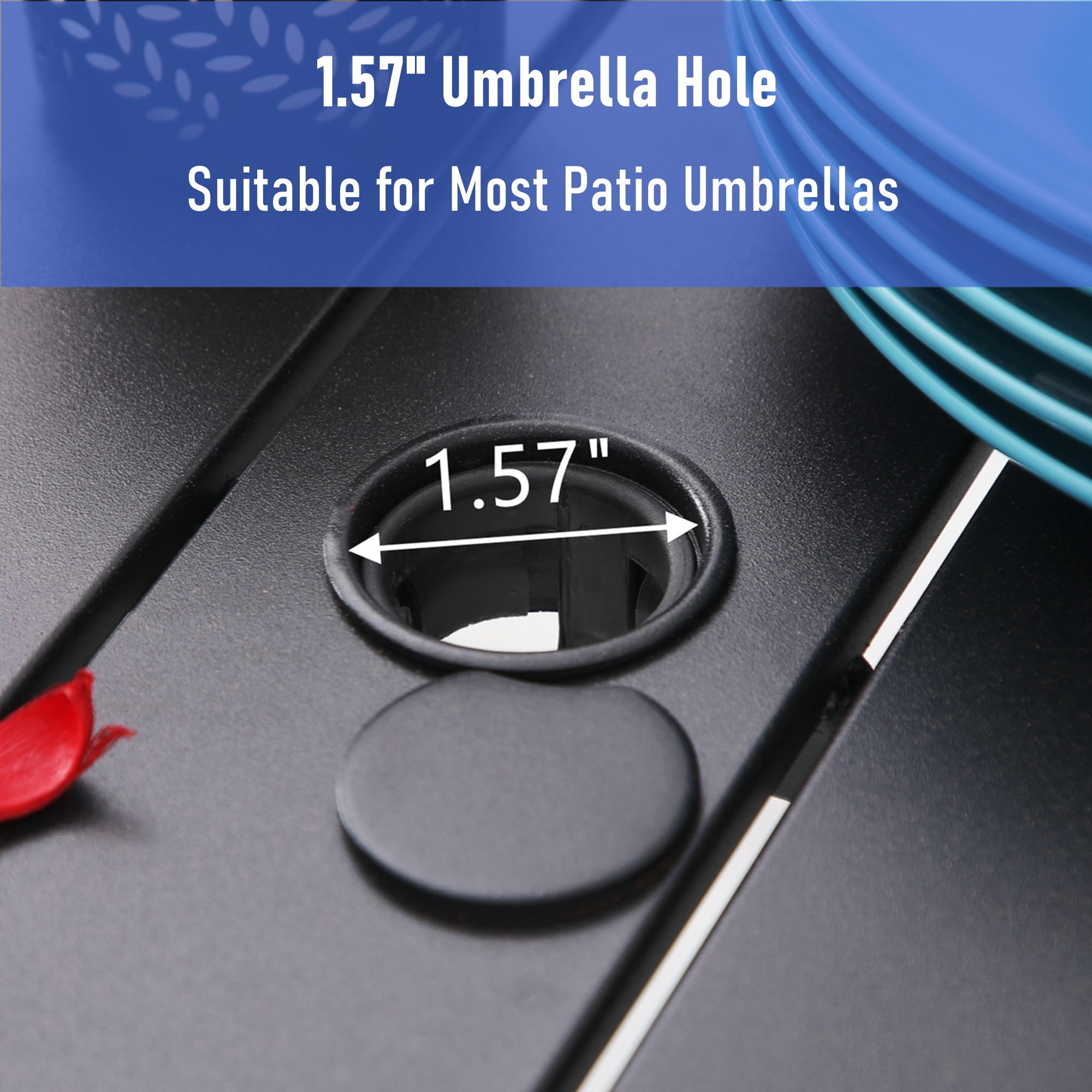 5-Piece Patio Dining Set with 4 Stacking Chairs & 1 Square Table Heavy-Duty Steel Frame with E-coating & Powder-Coated Finish, All-Weather & Rust-Resistant Chairs with Stack-able Design for Easy Moving & Storing, Weight Capacity 300 LBS 4-Seat Square Table with Umbrella Support, 1.57″ Umbrella Hole Please kindly note this 5-piece patio set includes 3 boxes and may be delivered separately. Please wait patiently for all packages. If any questions or need help, please feel free to contact with our customer service team. Check stability regularly. Screws may loosen and need to be tightened. Keep the furniture clean and dry and wipe away excess water after a rain. We recommend you to store and cover your patio furniture in a coll dry place when not in use.