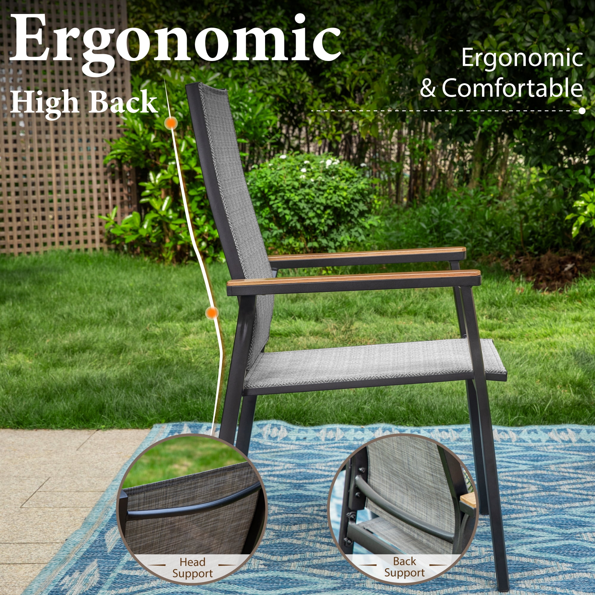 MF Studio 5-Piece Outdoor Patio Dining Set with 4 Aluminum Armchairs and 1 Dining Table with Wood-Grain Top,Black&Gray