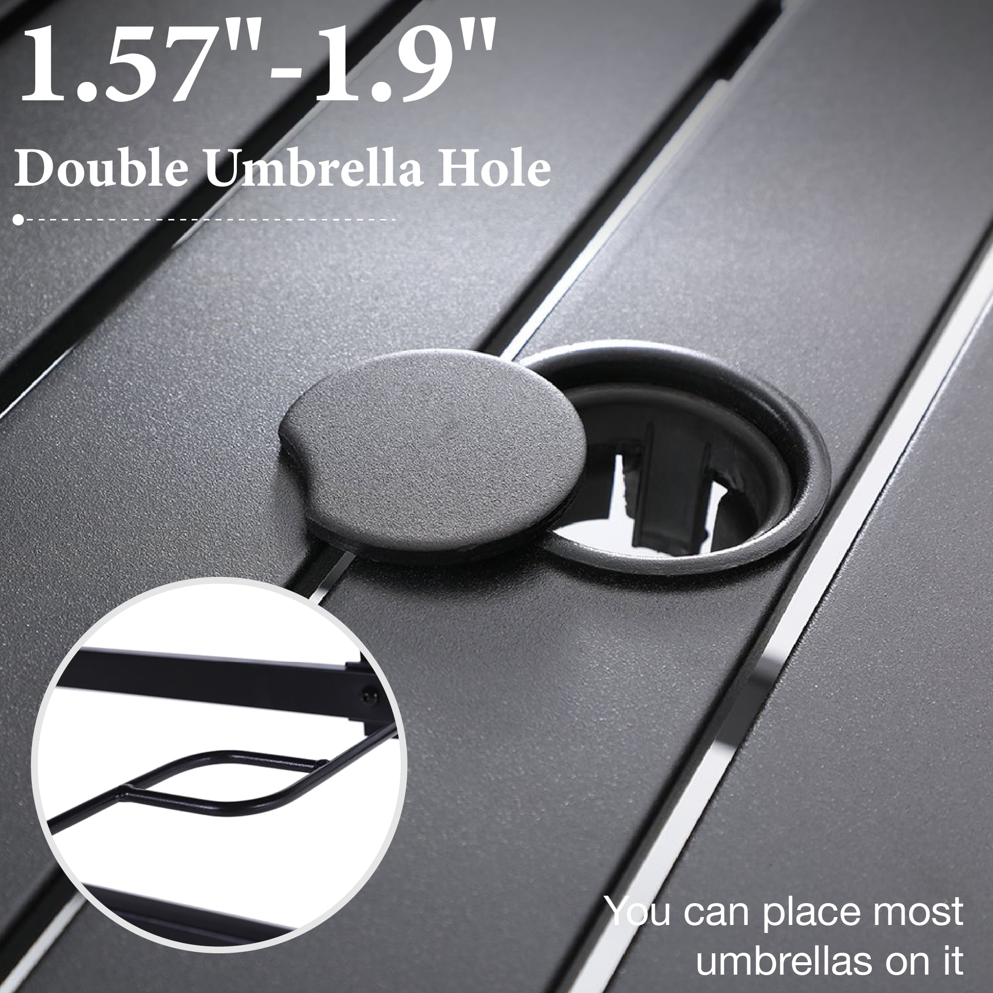 Premium Material: This patio dining set is made of high-quality steel frame with excellent E-coating finish and selective tightly woven PE rattan which offers supportive structure and stands up to outdoor elements for reliable long-lasting strength. Appealing Design: This armchair features clean lines, premium resin wicker back, exquisite powder-coated slatted shape and beige cushion that is perfect in shape and function which will certainly bring your outdoor decor to the next level. Energy & Comfort: This outdoor dining set provides seating for 4, perfect for family outdoor party & dinner. With the large dimension of 22.5″ W x 19.5″ D x 34.5″ H, this armchair gives plenty of support & comfort with seating capacity up to 300 lbs. Durable Fabric: The cushion seat is made of high-density foam and waterproof polyester fabric which is removable for easy cleaning and recovering. Patio Umbrella: This 9 ft umbrella consists of 8 reinforced ribs&1.5″ diameter pole that offers a strong frame and made of durable 180 G polyester fabric, it provides with up to 99% UV protection. Easily open the umbrella by swiveling the crank handle and press the auto-tilt button on the pole for a perfect shade direction. Occasions: This rattan set goes well with various home styles, perfect for your family/friends gathering, party, dinner, conversation and other activities. This 6-piece patio set comes with 4 boxes ( 2 for 4 chairs, 1 for the table & 1 for the umbrella) and might arrive separately. If any questions, please contact with our service team, service@alphamarts. com Cleaning & Maintenance Check stability regularly. Screws may loosen and need to be tightened. Keep the furniture clean and dry. Shake out the fabrics and wipe away excess water after a rain. We recommend you to store and cover your patio furniture in a coll dry place when not in use.