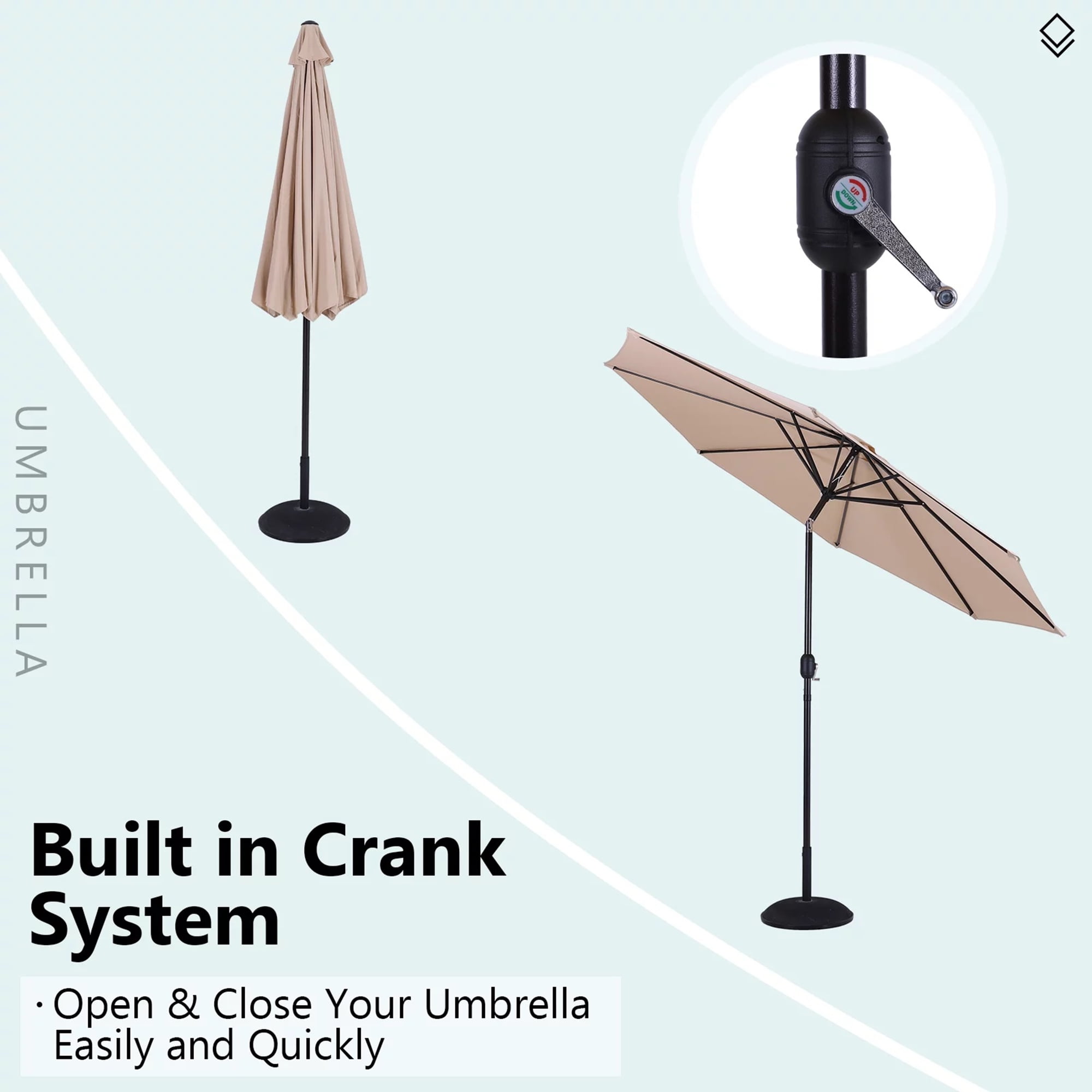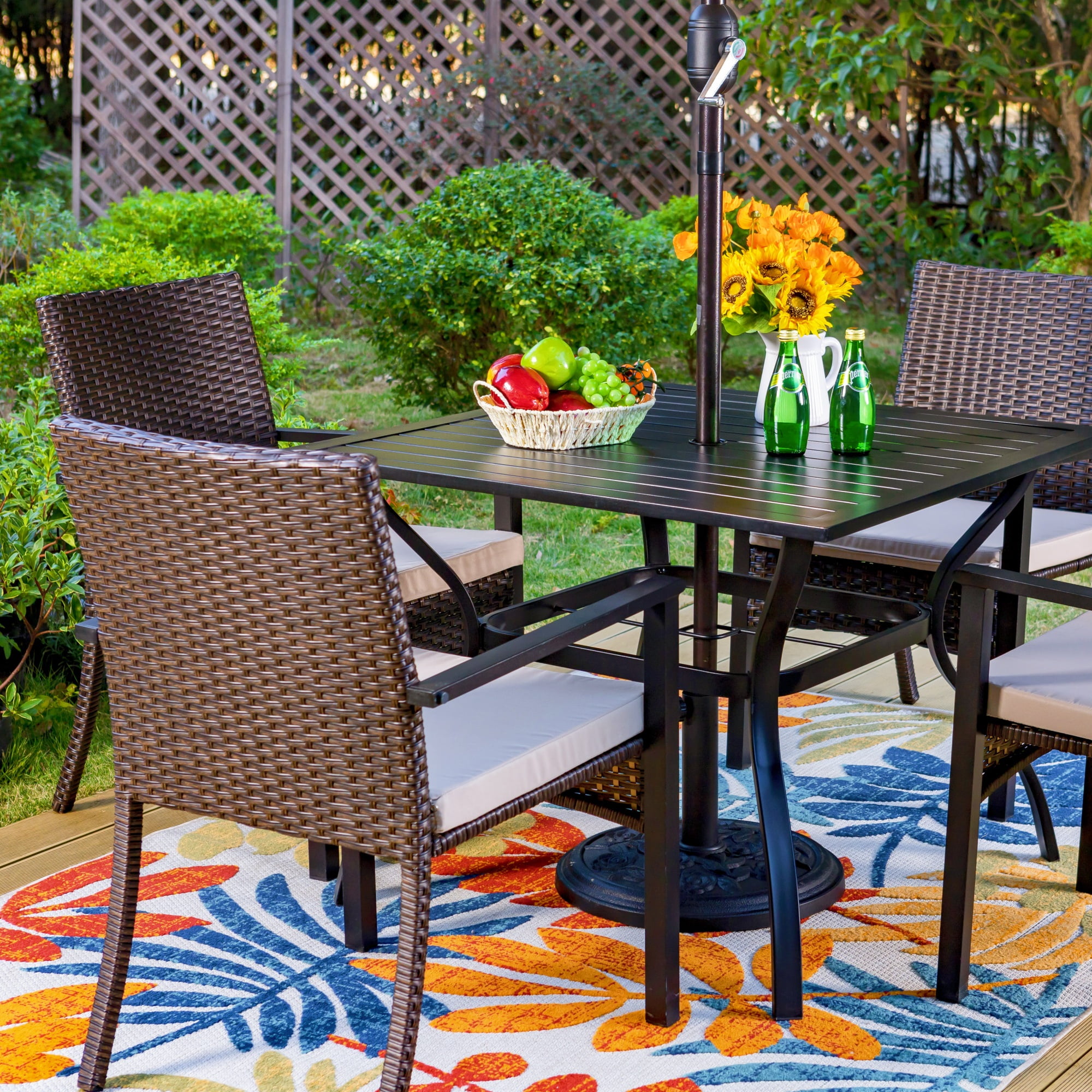 MF Studio 6-Piece Patio Furniture Set with Umbrella, Wicker Chairs & Square Table for Dinner, Party & Conversation, Brown & Beige