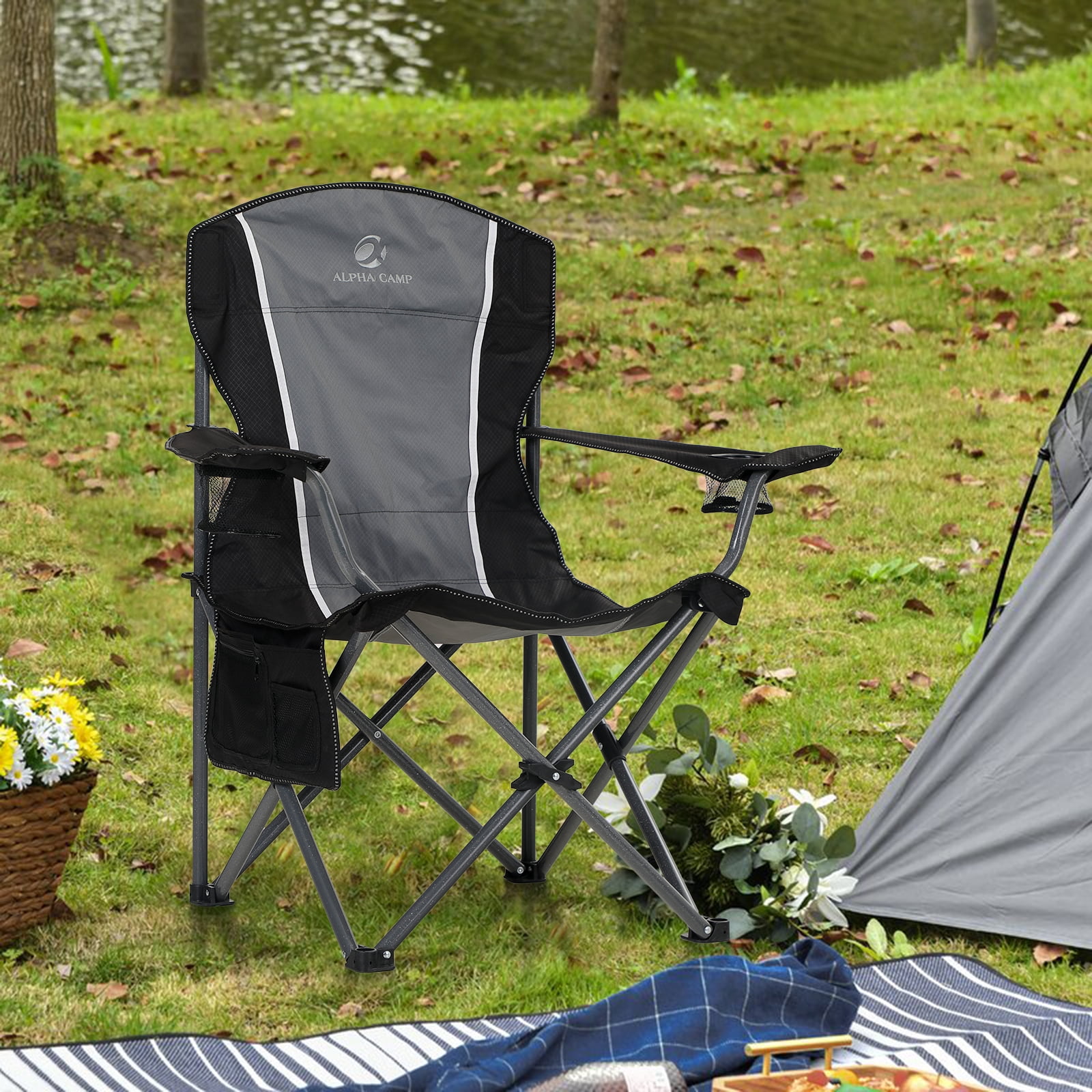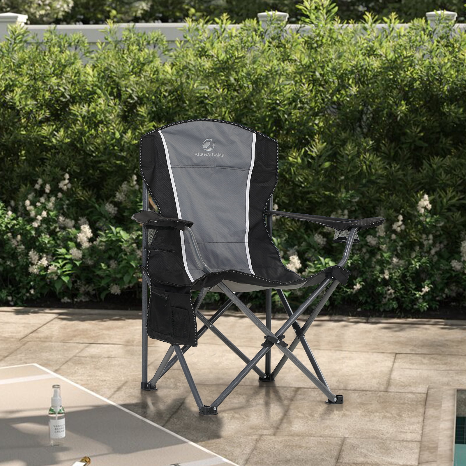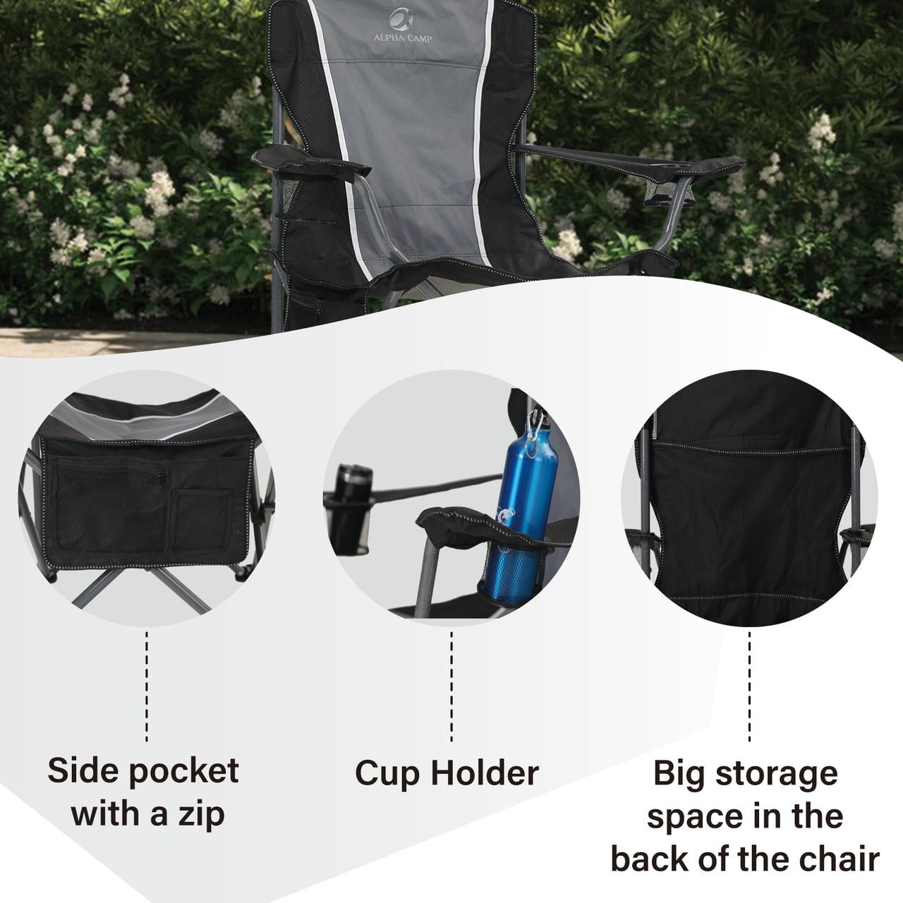 Enjoy the ultimate comfort experience in the MF Studio Oversized Folding Camping Chair. This camping chair features a heavy-duty steel frame with durable 600D Padded Oxford fabric, which allows this chair to support up to 350 lbs. To meet your patio needs, this chair comes with two cup holders, big size pocket in the chair of the back, a side/back stash pocket, and a side storage pocket with a zip hold cell phone, notebook, and maps. Padded seat, back, armrest, and oversize frame to ensure the comfort of this chair. The MF Studio Oversized Padded Camping Chair is the perfect chair for any camping trip, concert, sporting event or just to have at home on your patio!