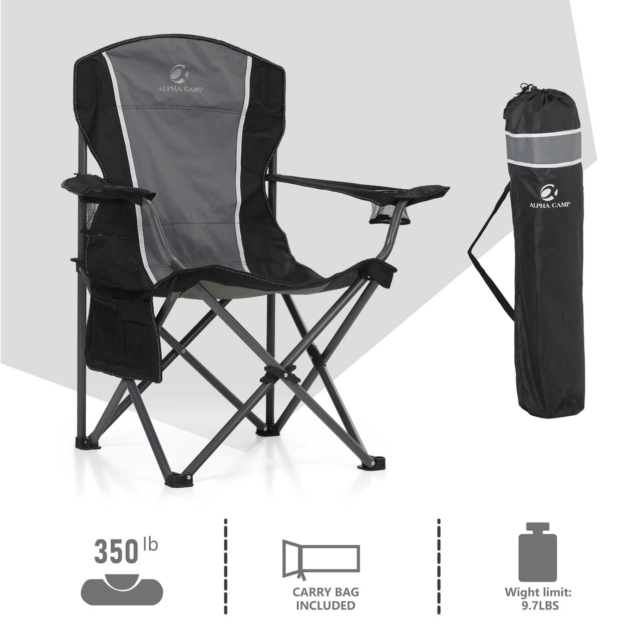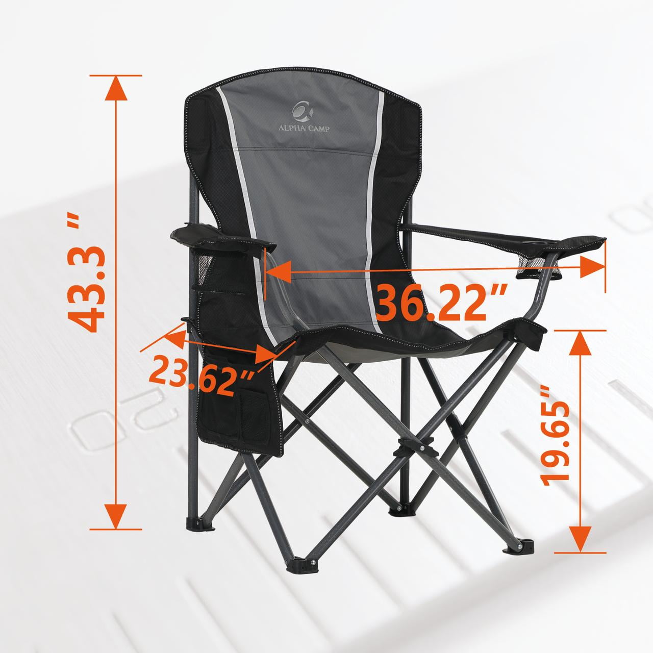 MF Studio Camping Chair, Black: Large Size: 37″ x 22″ x 40.1″, with bigger size feels more comfortable All the materials are treated for weather resistance. Durable oxford fabric with coating assure water and stain resistance Extra-large storage spaces: Large pocket in the back of the chair Non-Slipmat on the foot Two built-in mesh cup-holders to keep all your favorite drinks nearby No assembly required, easy to fold and open up in seconds, portable with a carry bag for easy carriage and storage. Perfect chair for a variety of outdoor activities like camping, tailgating, or watching sporting events Material: Thick oxford cloth Fabric: Oxford Weight: 9.7LBS Package Includes: 1 x Big boy XL chair; 1 x Carry bag