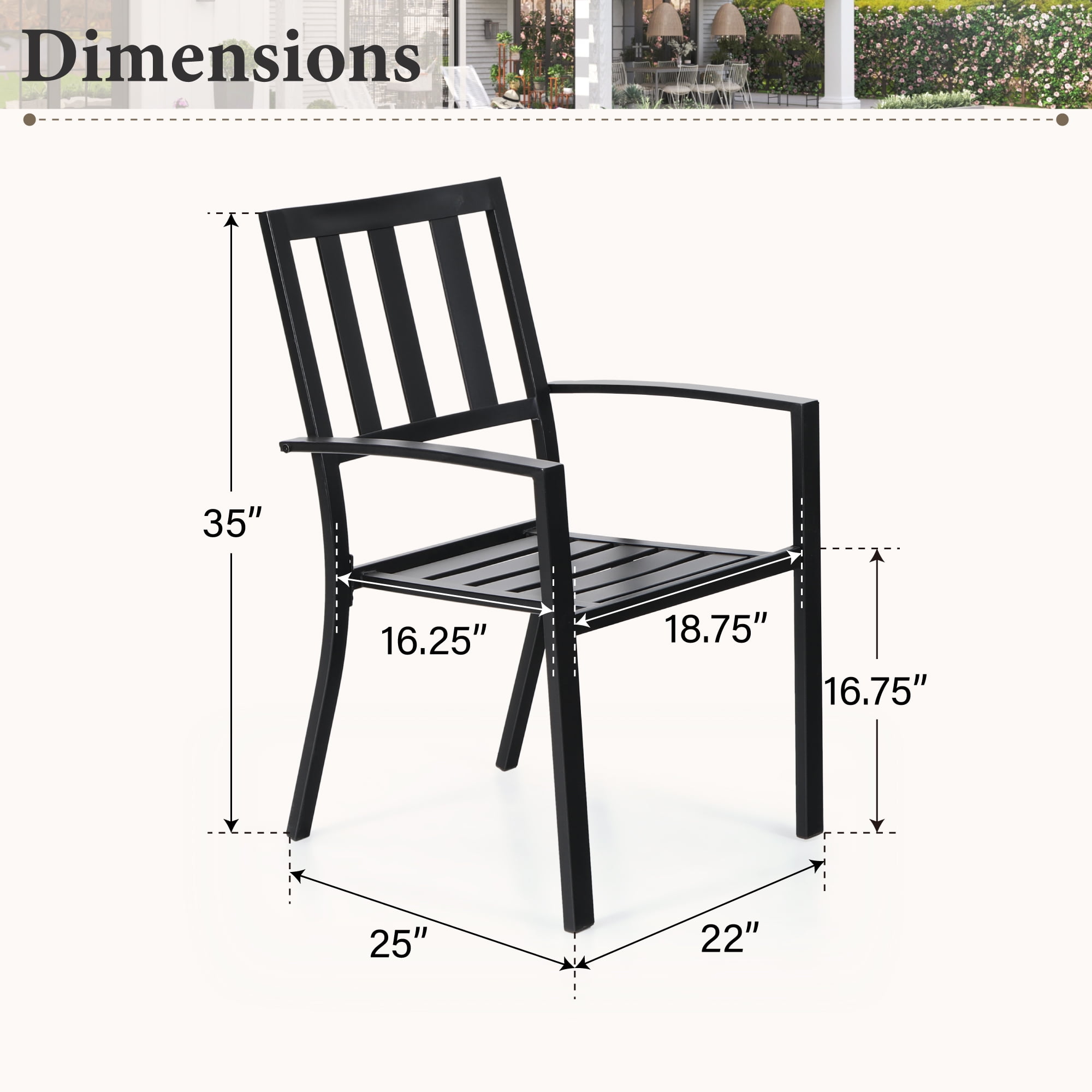 Features: Patio Dining Table Overall Dimension: L22 * W25 * H35 Inches. Suitable for most dining table and our MF Studio dining table. Sturdy power-coated steel frame: The sturdy frame can resist all weather and is waterproof. The weight capacity of our dining chairs can be up to 300 lbs and you can feel safety that seating on our dining chairs. Elegant chair back design: Our MF Studio patio dining chair design is simple and elegant. You can feel assured to seat on our dining chairs. 1-Year Warranty: We are confident about our dining chairs and if you have any question about our products or assembly, please contact with our professional service team: [email protected]. Notes: If missing or delay, please dial our free service line, 877-606-2818. We recommend you to store and cover your patio furniture in a coll dry place when not in used.