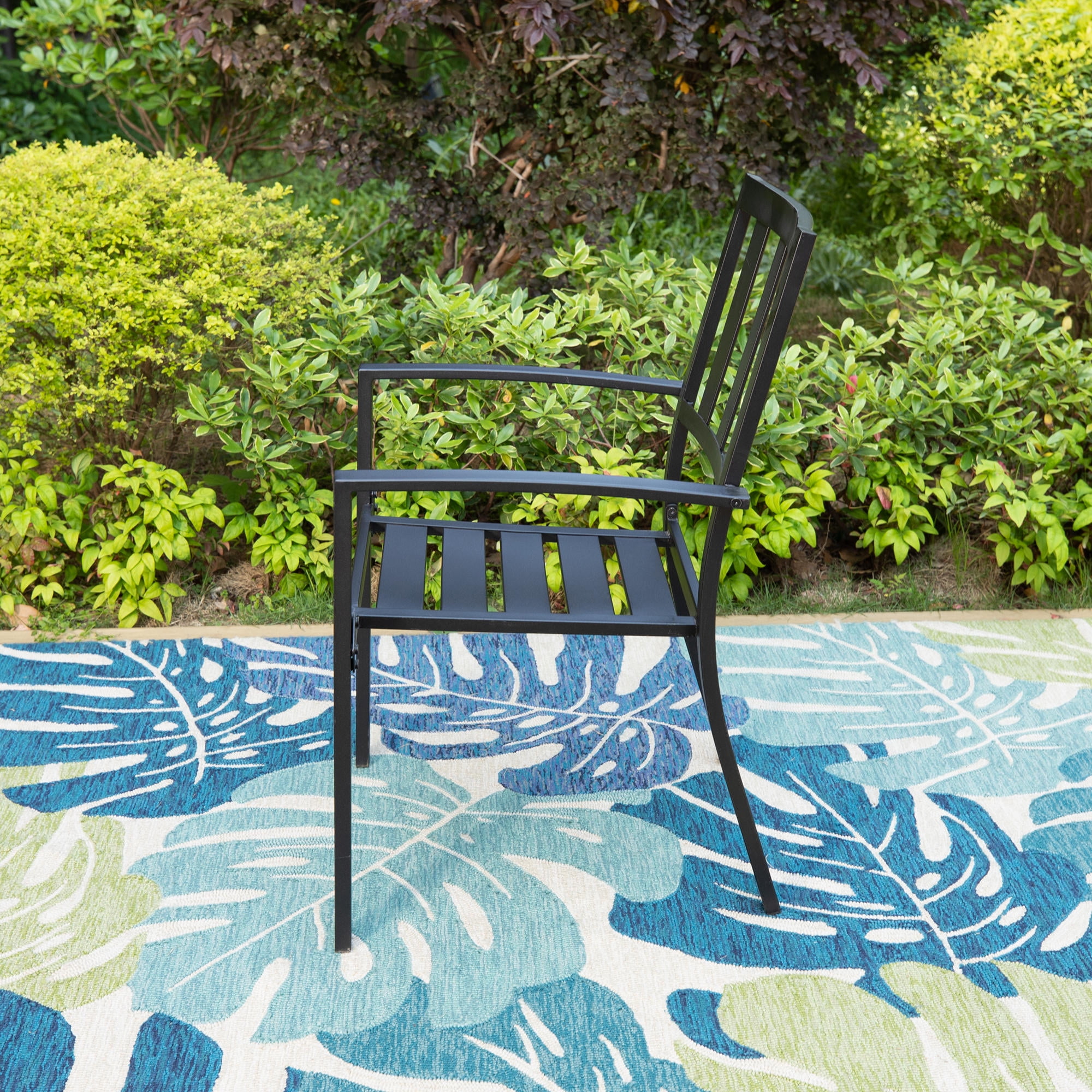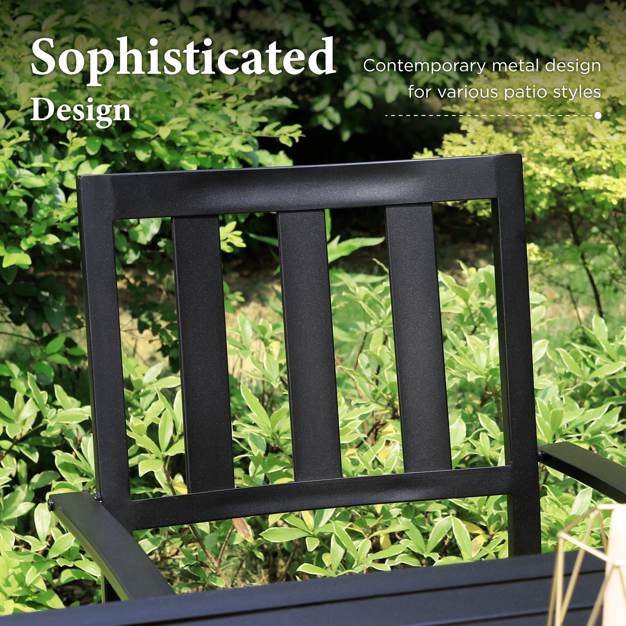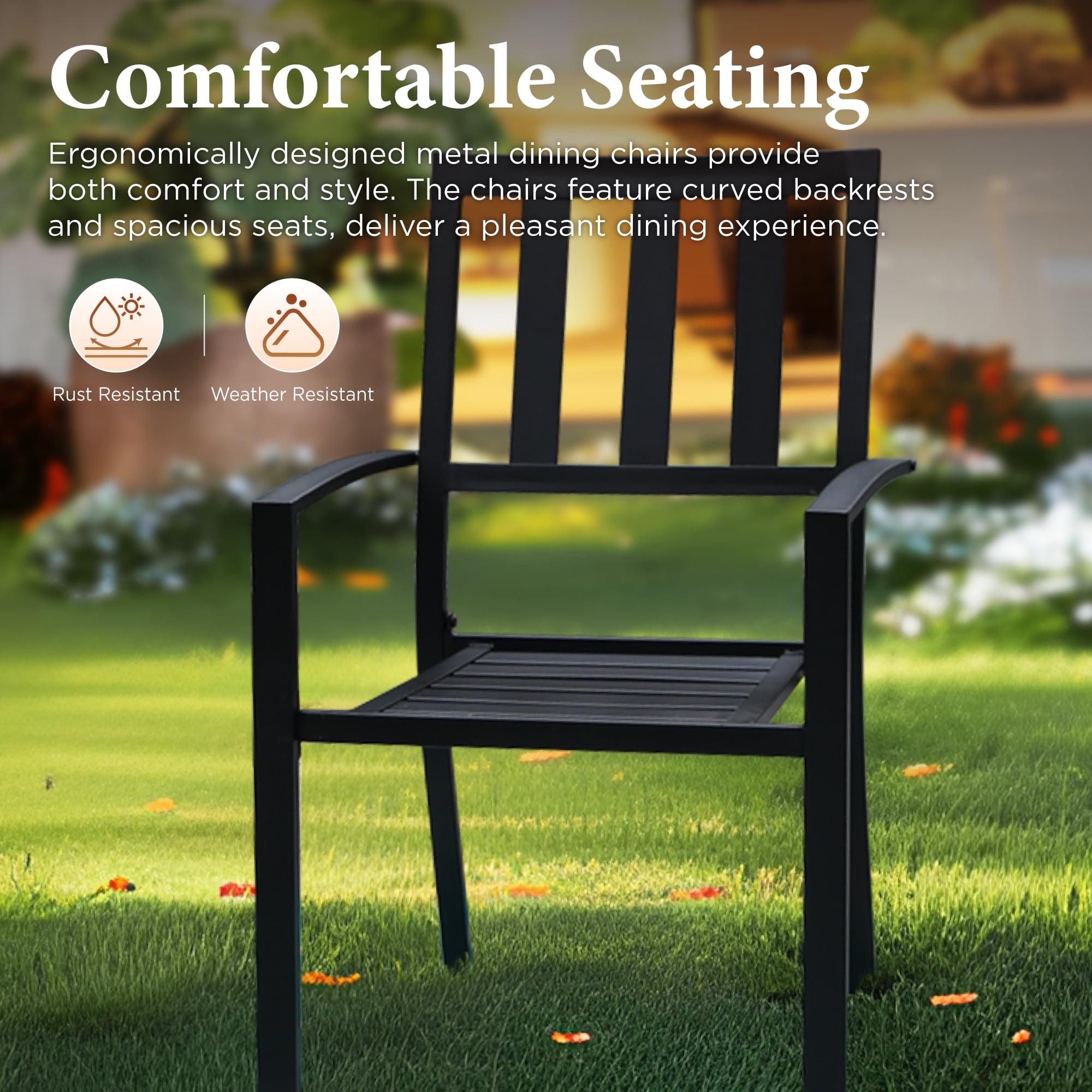 MF Studio Outdoor Dining Chairs Metal Stackable Arm Chairs Set of 2 Suitable for Garden, Patio and Dining Room, Black
