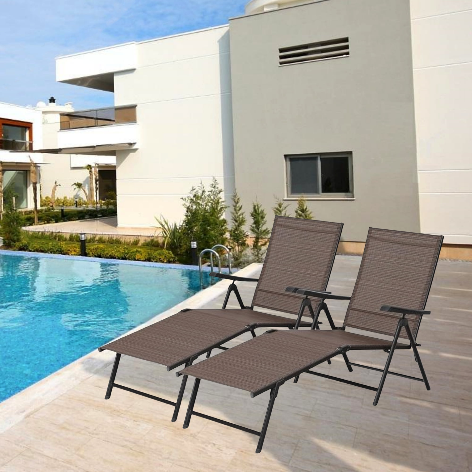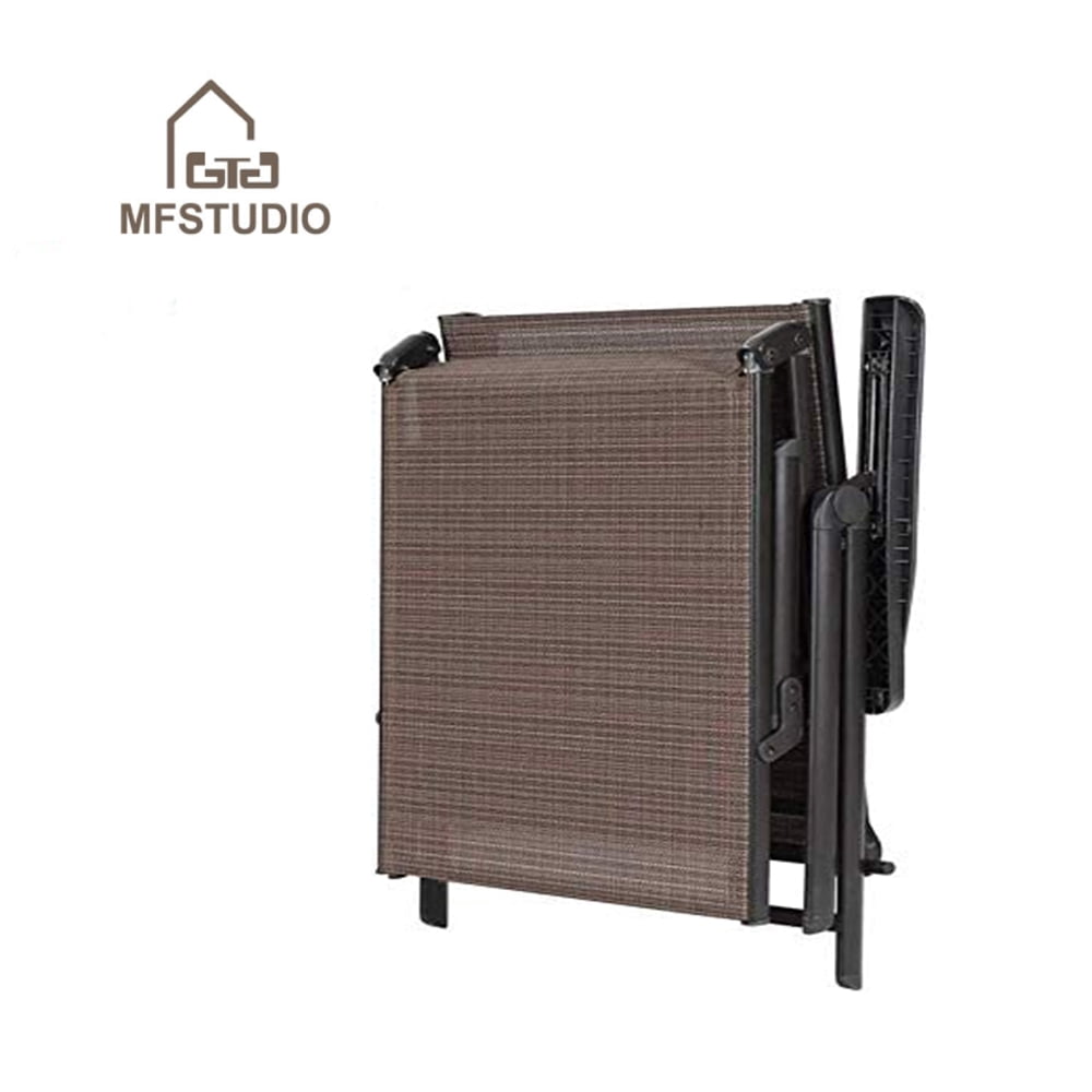 MF Studio Outdoor Patio Lounge Chaise Set of 2, Outdoor Beach Chairs with Armrests & Adjustable Backrest, Steel Recliner, Brown & Black