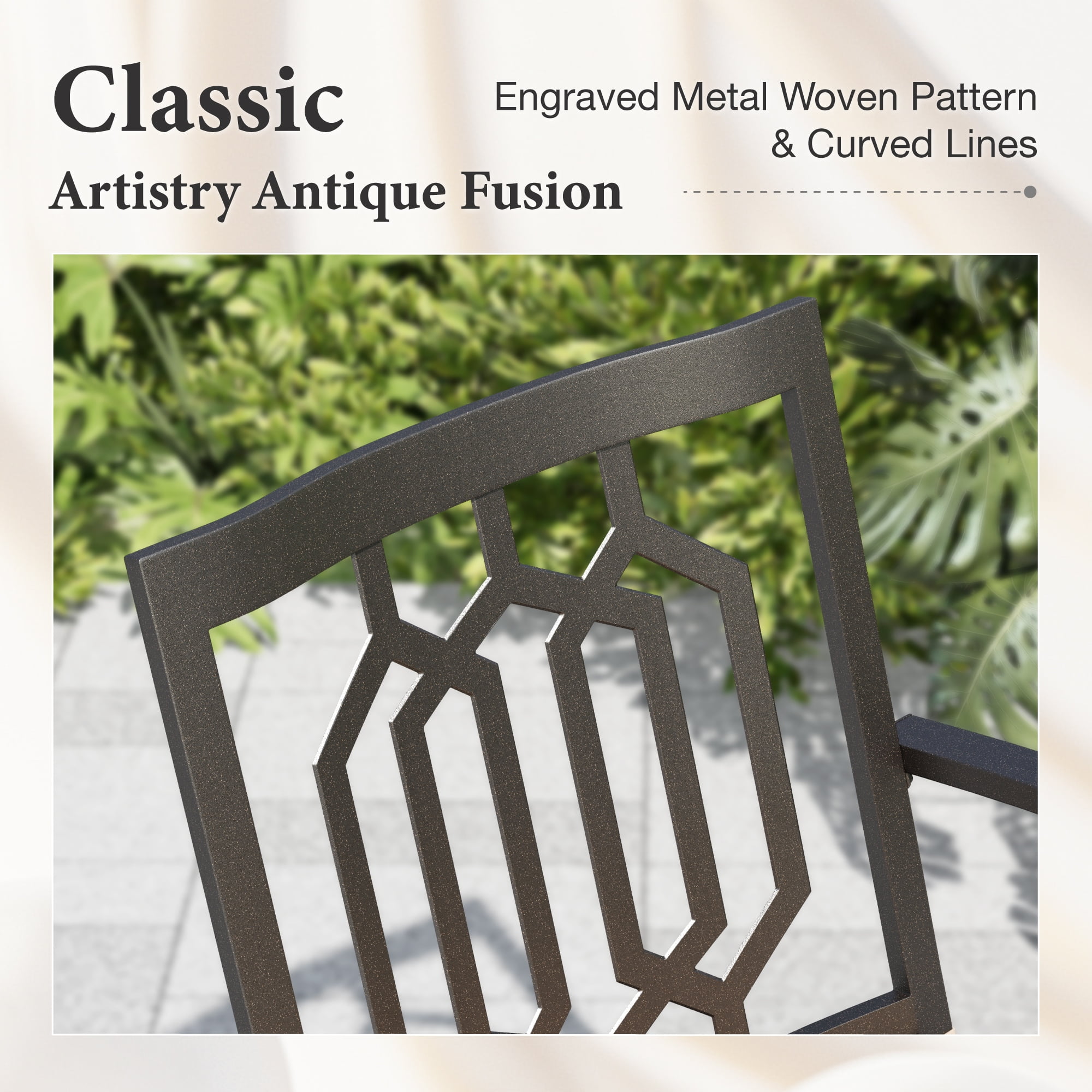 Features Premium Material: This patio dining chair is made of high-quality steel frame with excellent E-coating finish which offers supportive structure and stands up to outdoor elements for reliable long-lasting strength. Appealing Shape: This modern armchair features a clean-lined design of geometric patterned backrest and slatted frame with beautiful powder coated finish that is perfect in shape and function which decorates your garden, porch, deck or backyard greatly. Energy&Comfort: With large dimension of D 25.2″ x W 22.8″ x H 35″ and ergonomically curved backrest&armrest, this chair gives plenty of support and comfort with seating capacity up to 300 lbs. Functional Design: The single chair is 11.9 lbs only which can be easily moved and stacked up when not in use for better saving space. More Options: Search MF Studio and you will find more patio dining furniture for your choice. Be the designer yourself and DIY your own house set. 1-Year Warranty: If you have any questions about our products or assembly, please feel free to contact with our professional service team, [email protected]. Cleaning & Maintenance Check stability regularly. Screws may loosen and need to be tightened. We recommend you to store and cover your patio furniture in a coll dry place when not in use.