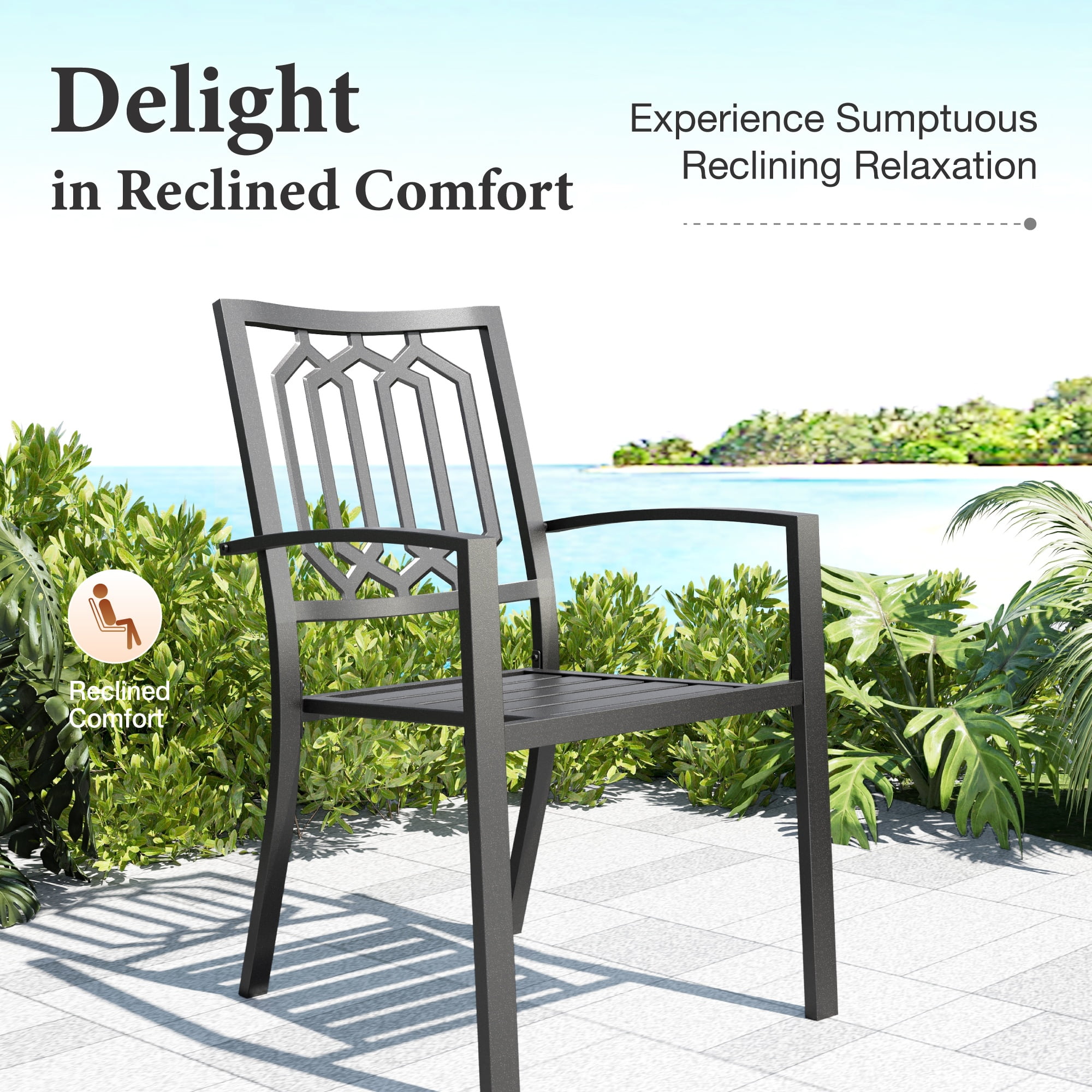 MF Studio Set of 2 Outdoor Patio Dining Stackable Chairs,All-Weather Steel Frame, Geometric Back, Black