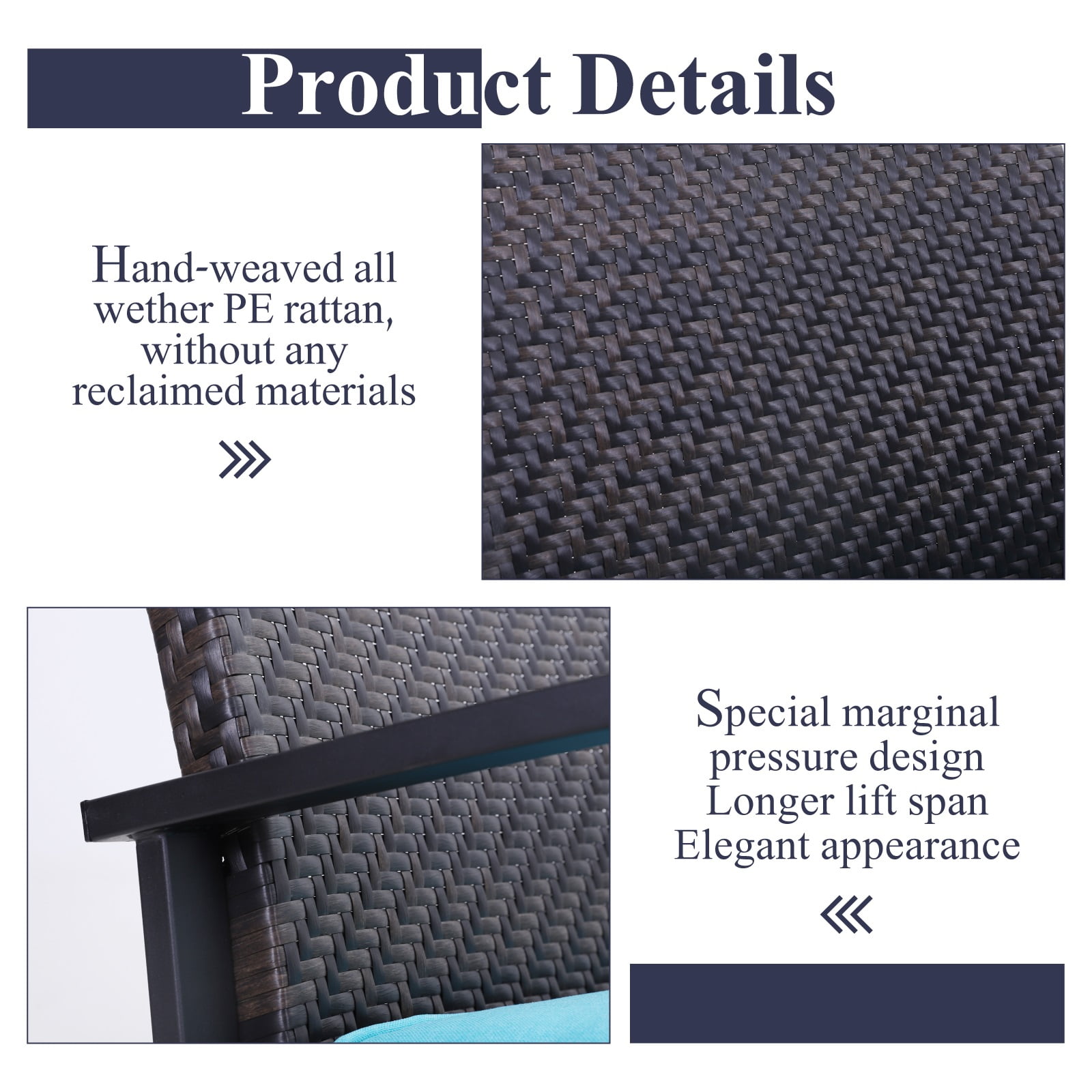 Rattan conversation set includes 2 chairs Steel frame wrapped with all weather PE wicker, stable and durable Wide armrest and backrest provide a relaxing zone High back design with 5″ thickness padded high density foamprovide a deep setting experience Heavy duty foot provide good support Removal covers with zipper for easy cleaning. Ideal for your patio, balcony, poolside, courtyard or any other outdoor spaces
