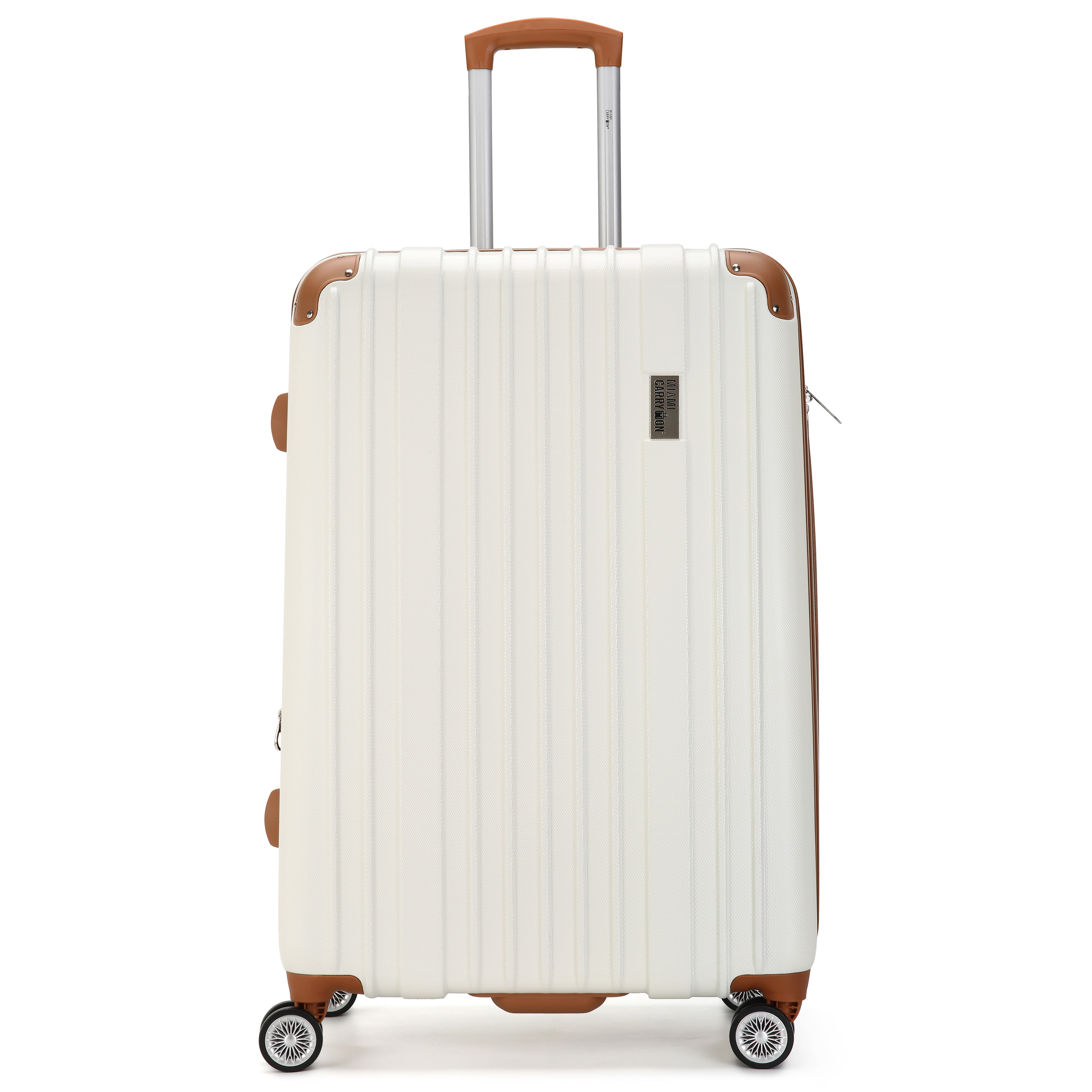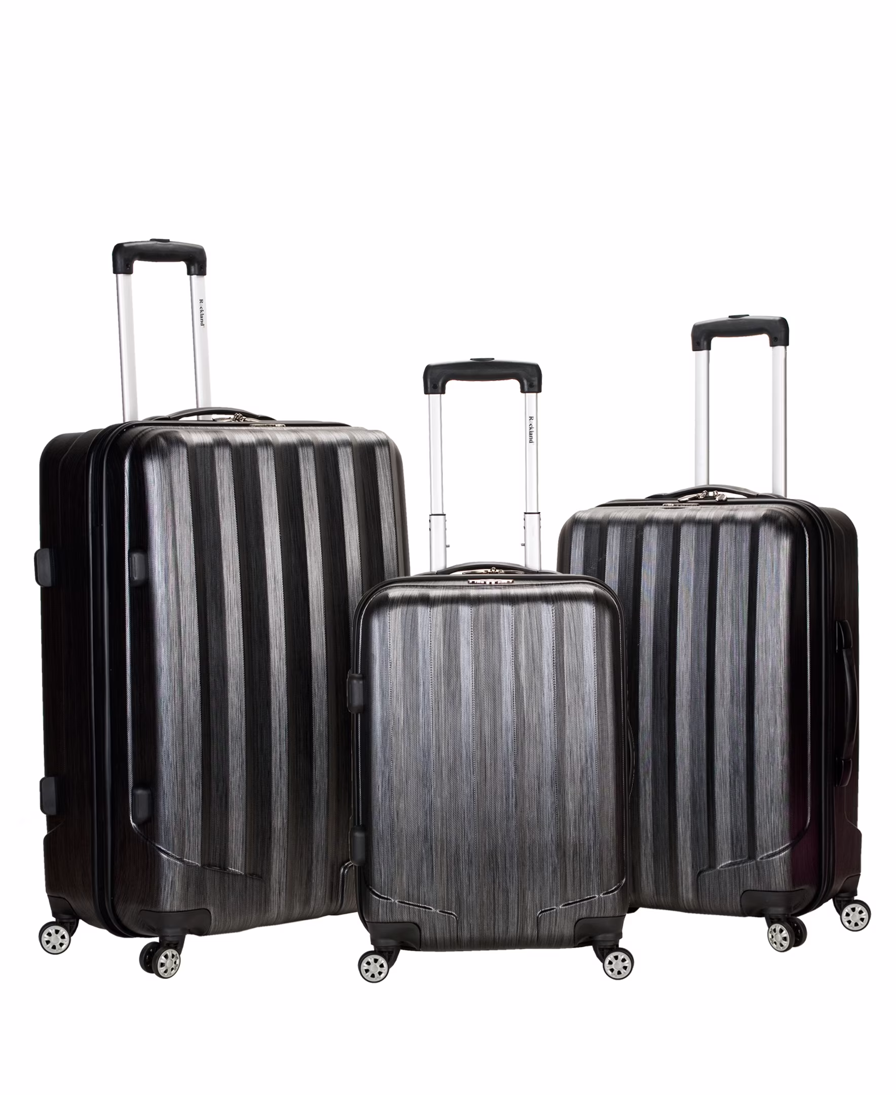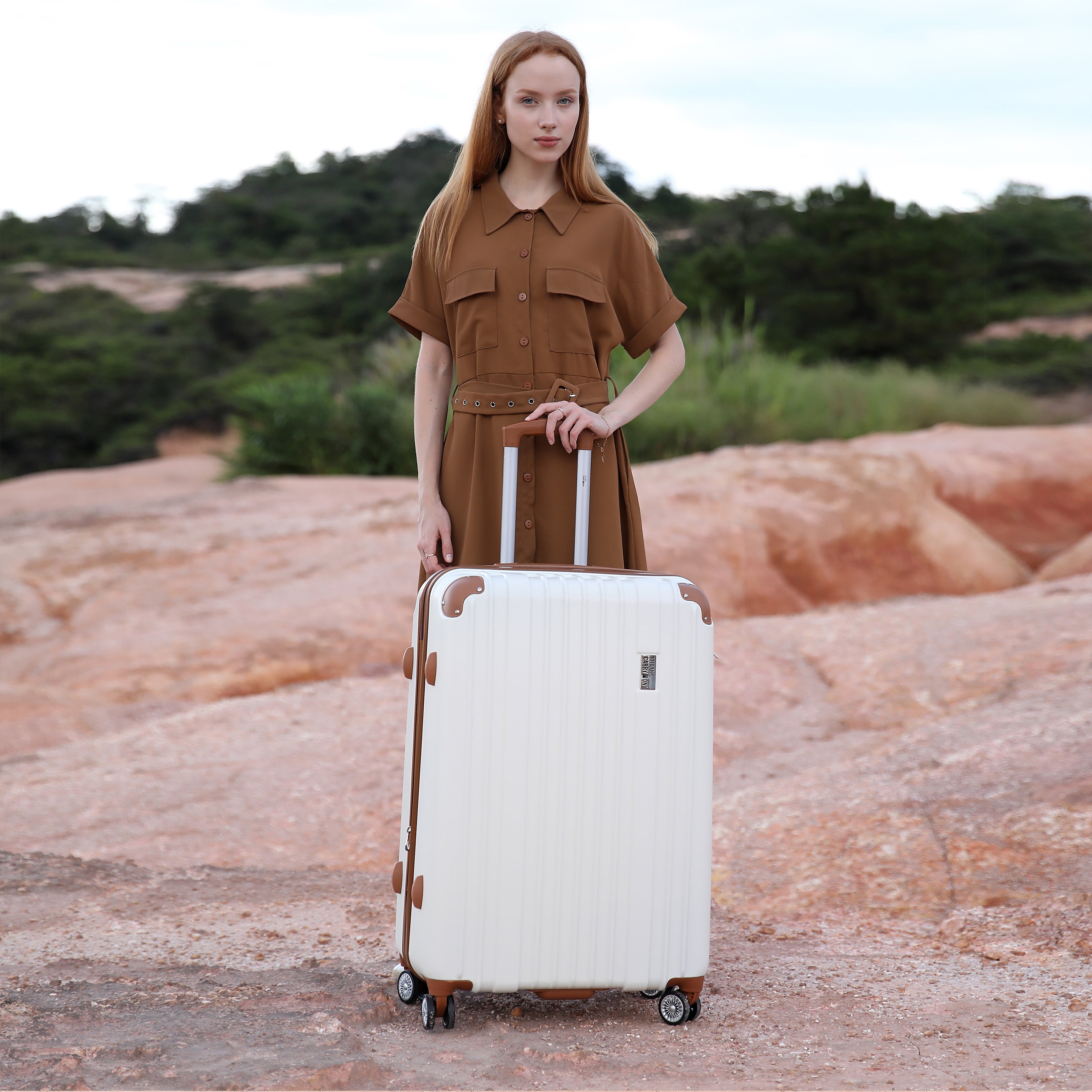 The Collins collection Add a trendy touch to your travel with this retro-chic, hard spinner luggage. Constructed with textured ABS, reinforced corner guards, rubber molded handles, and a fully lined and expandable interior which makes this luggage a functional and stylish option. Luggage features: Made from thick ABS with a micro-diamond texture. Molded body with reinforced corner guards. Eight spinner wheels that roll smooth, quiet and handles heavyweights. The luggage is expandable for more packing capacity. Sturdy, and comfortable, multi-level trolley 10-year limited manufacturer warranty. Interior features: Separate compartments Zipper mesh pocket Compression straps Interior dimensions: Small 20″ x 9″ x 14″ Medium 24″ x 11″ x 17″ Large 28″ x 13″ x 20” Overall Dimensions (Includes wheels and handles): Small 22″ x 9″ x 14″ – 6.2 Lbs. Medium 27″ x 11″ x 18″ – 7.8 Lbs. Large 31″ x 13″ x 21″ – 9.7 Lbs.