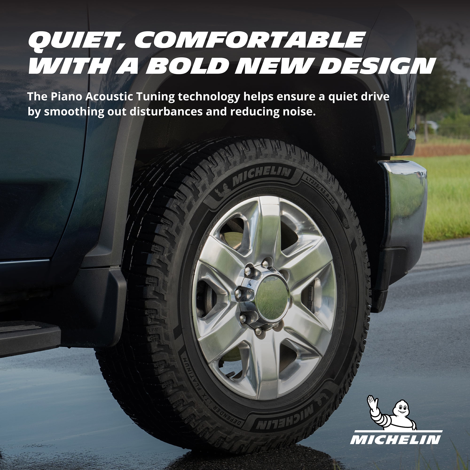 Michelin Defender LTX Platinum Tire The Michelin Defender LTX Platinum represents a completely new class of tire developed specifically for luxury heavy-duty pickup trucks. It delivers exceptional tread life along with the cutting edge aesthetics. The Michelin Defender LTX Platinum offers Long Lasting Luxury, Designed to Outlast. Long Lasting Luxury, Designed to Outlast. When tested for treadwear on a diesel pickup truck, the Michelin Defender LTX Platinum tire lasted twice as long as the Defender LTX M/S. This tire is Luxurious and designed to outlast. Quiet, Comfortable, with a Bold New Design. We gave the Michelin Defender LTX Platinum a bold new tread pattern with full-ring velour sidewall, to complement your truck’s look while keeping a smooth quiet ride throughout the life of the tires. The Michelin Defender LTX Platinum comes with a 70,000 Miles Manufacturer’s Treadwear Limited Warranty. These Michelin tires carry a limited warranty in addition to the standard materials and workmanship warranty for treadwear or mileage. Standard Limited Warranty. All Michelin tires have a Standard Manufacturer’s Limited Warranty, which covers defects in workmanship and materials for the life of the original usable tread, or for 6 years from date of purchase, whichever occurs first.