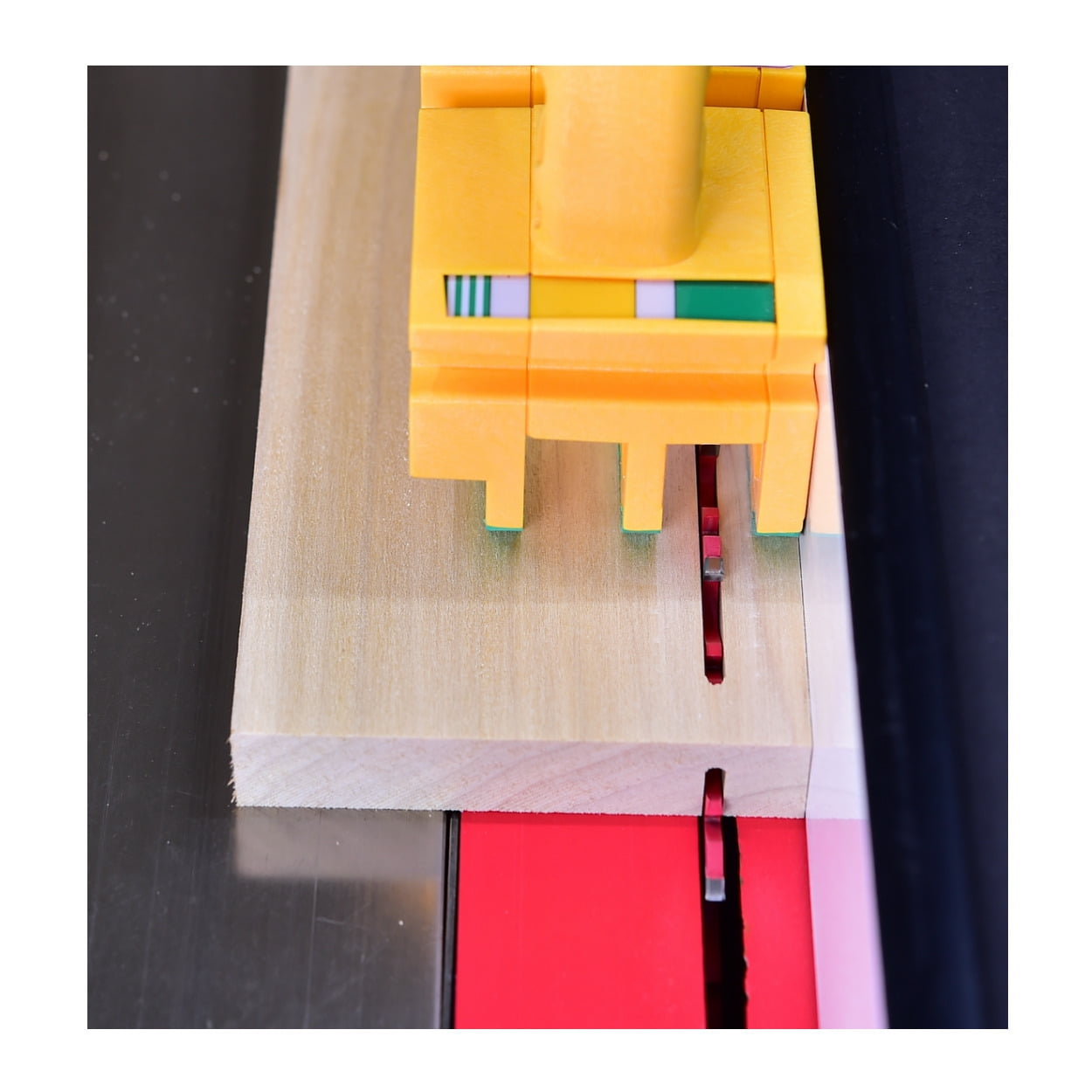 Cut small parts safely and accurately with powerfully gripping precision legs. The leg’s minimum cutting width of just 5/16 inch is perfect for making precise, thin cuts. With no barehand feeding and keeping the material tight along the fence will prevent kickback and provide superior protection.