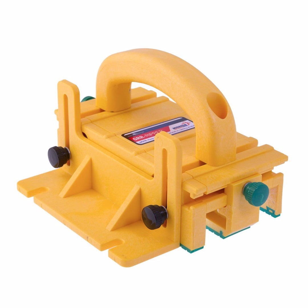 A Must-Have For Any Tables Saw GRR-RIPPER gives you essential precision, safety and control. Protect hands and prevents kickback with the #1 table saw push block, Eliminate the need for flimsy push sticks and cut with surgical precision. Powerful grip and full adjust ability gives you unmatched control on the table saw, router table, jointer, and band saw. Work smarter. The GRR-RIPPER provides three directions of force giving you superior precision, control and safety. Downward: Virtually eliminates kickback Inward: Keeps stock firmly against fence Forward: Controls and feeds both sides of the stock for a cleaner cut .