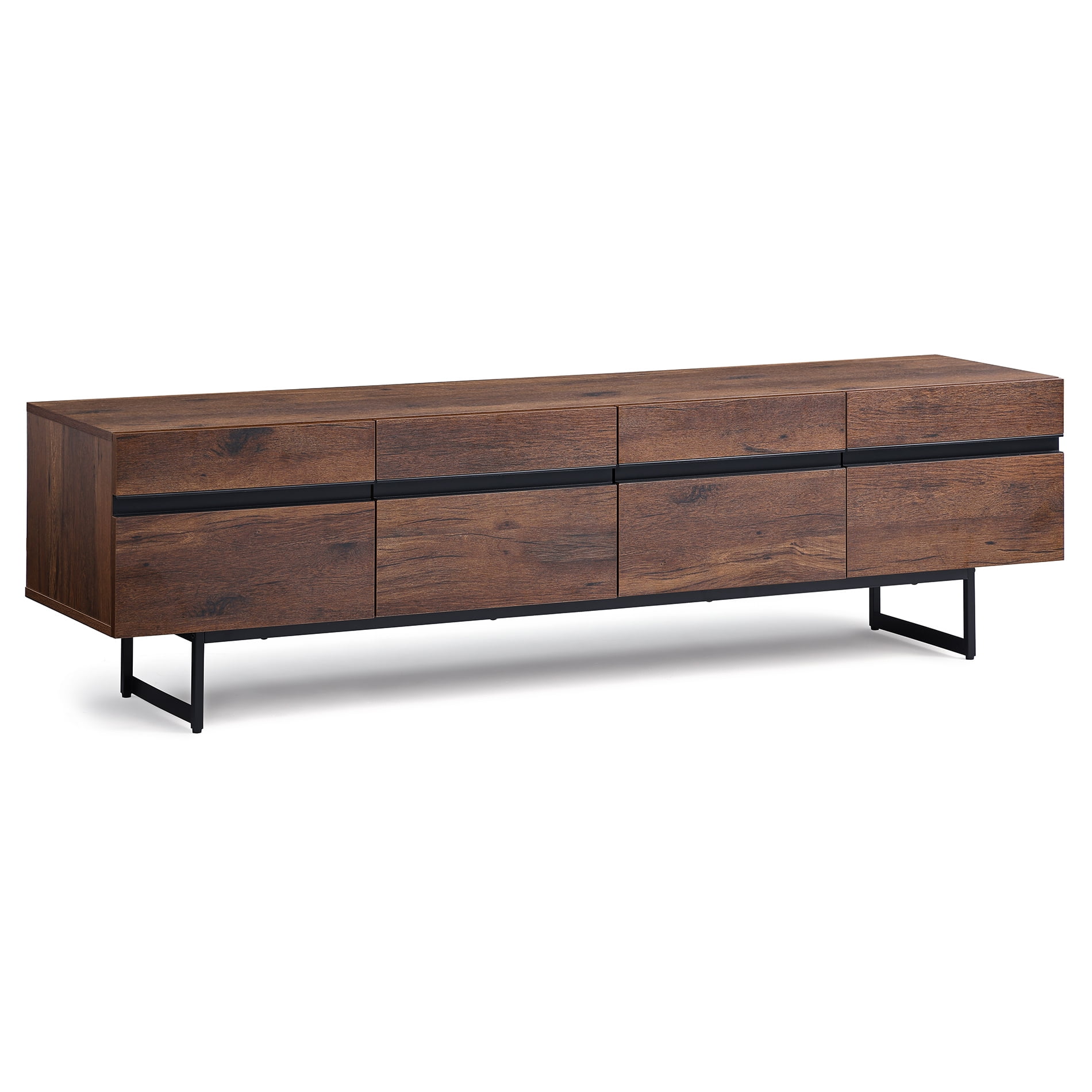 This TV stand boasts ample storage options and a clean-lined design fit for living rooms of all styles. It’s made from engineered wood and sits on a black metal base. The natural brown finish shows off the wood’s unique grain color variation as well as the exposed wood knots. With three storage compartments,shelves and cable management cutouts, this TV stand has everything you need to keep your entertainment essentials in one place — and organized. Overall the TV stand:20.1″ H x 70.9″ L x 16.3″ W .Weight limit of top board is 280 lbs. Versatile Entertainment Center:Can be matched with the use of series bookcases as the entertainment Center.So that the interior style unified Protective Foot Pad:The bottom of the TV stand is equipped with an non-slip mat to protect your floor from scratches,which is a must have because the quality is undeniable. certainly to make a great addition to your home. Easy to Assemble & Clean:The television stands include all necessary accessories and a graphical installation manual, very clear and easy enough to follow. And its smooth waterproof surface is easy to clean with a soft damp cloth to facilitate your cleaning work.